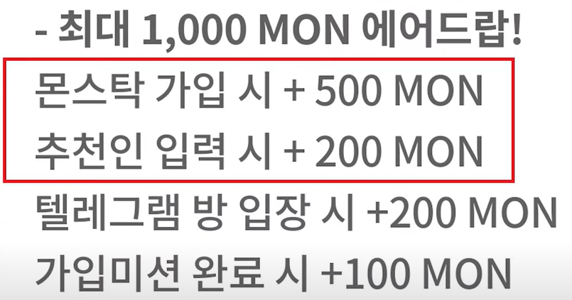 여기에 텔레그램 방 입장하여 계정 연동시, 200개의 몬스탁토큰을 추가로 지급받을 수 있습니다.
