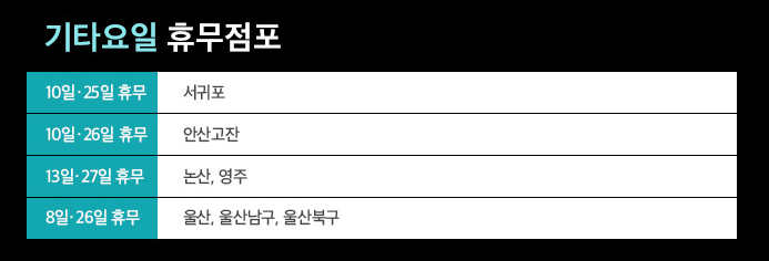 ※ 휴점 점포는 지자체의 상황에 따라 변동이 있을 수 있습니다.