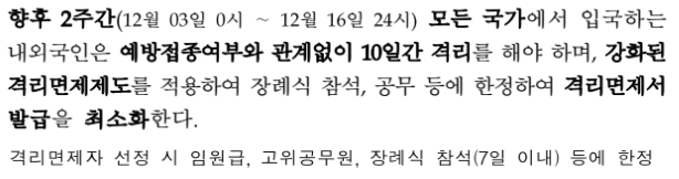 격리면제자 선정 시 임원급, 고위공무원, 장례식 참석 (7일 이내) 등에 한정