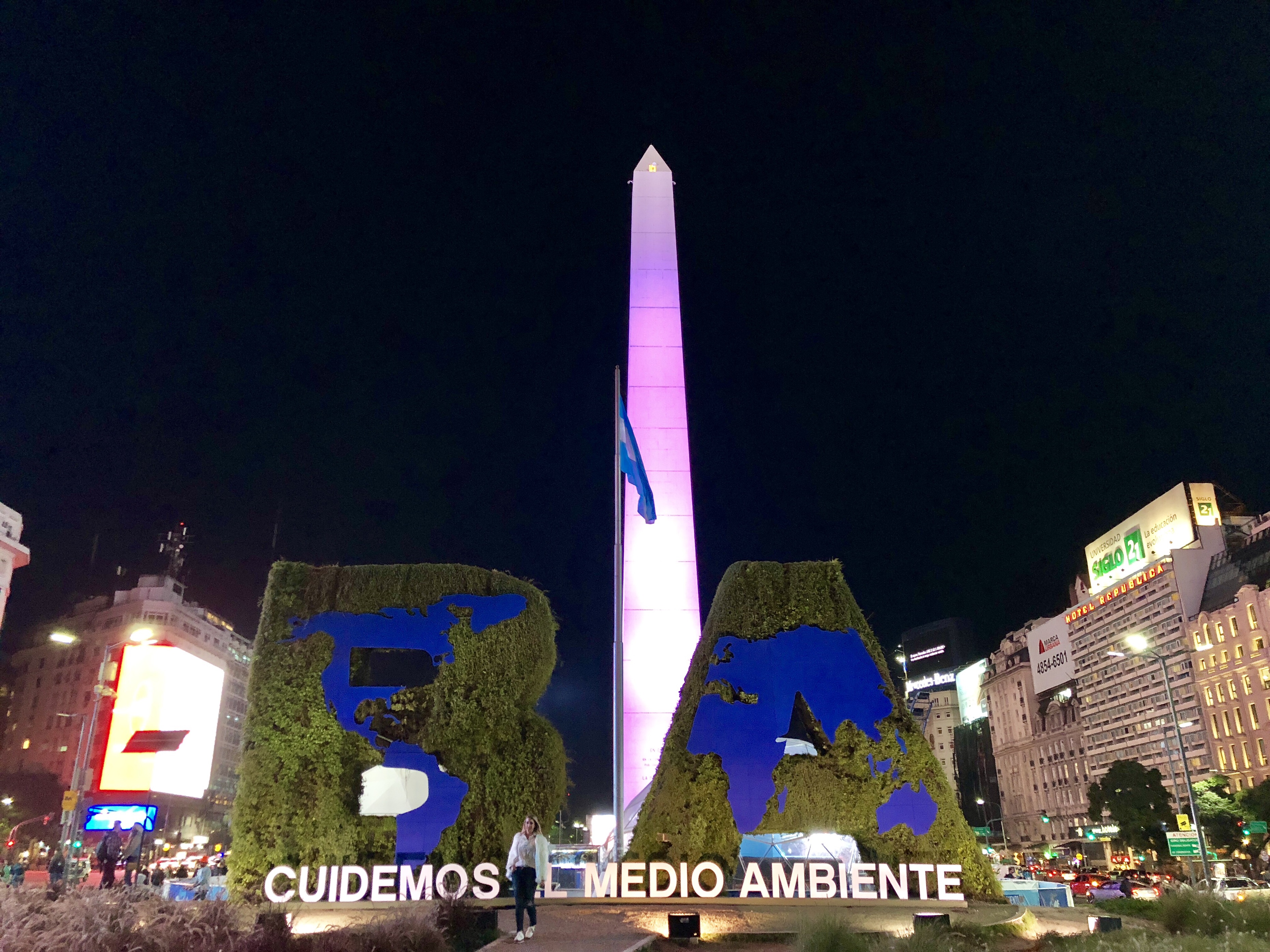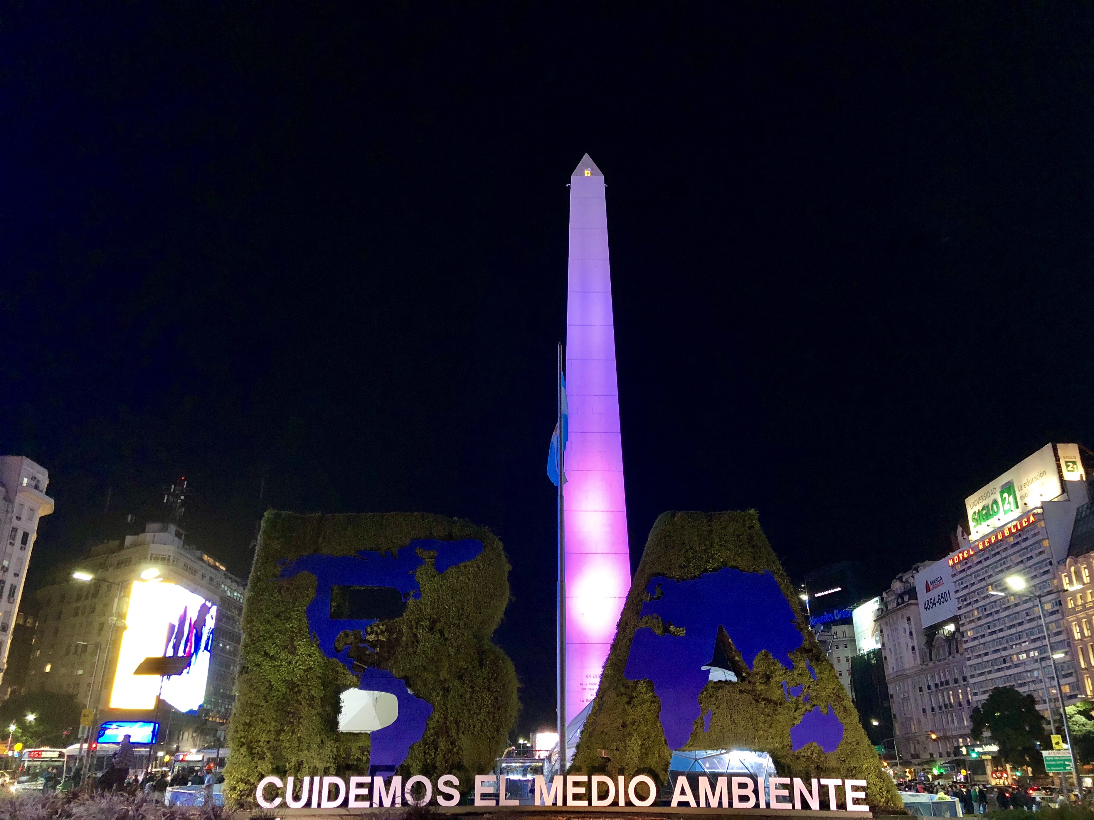 오벨리스크 앞에 새겨진 글자 Cuidemos el medio ambiente의 뜻을 번역기로 돌려보니