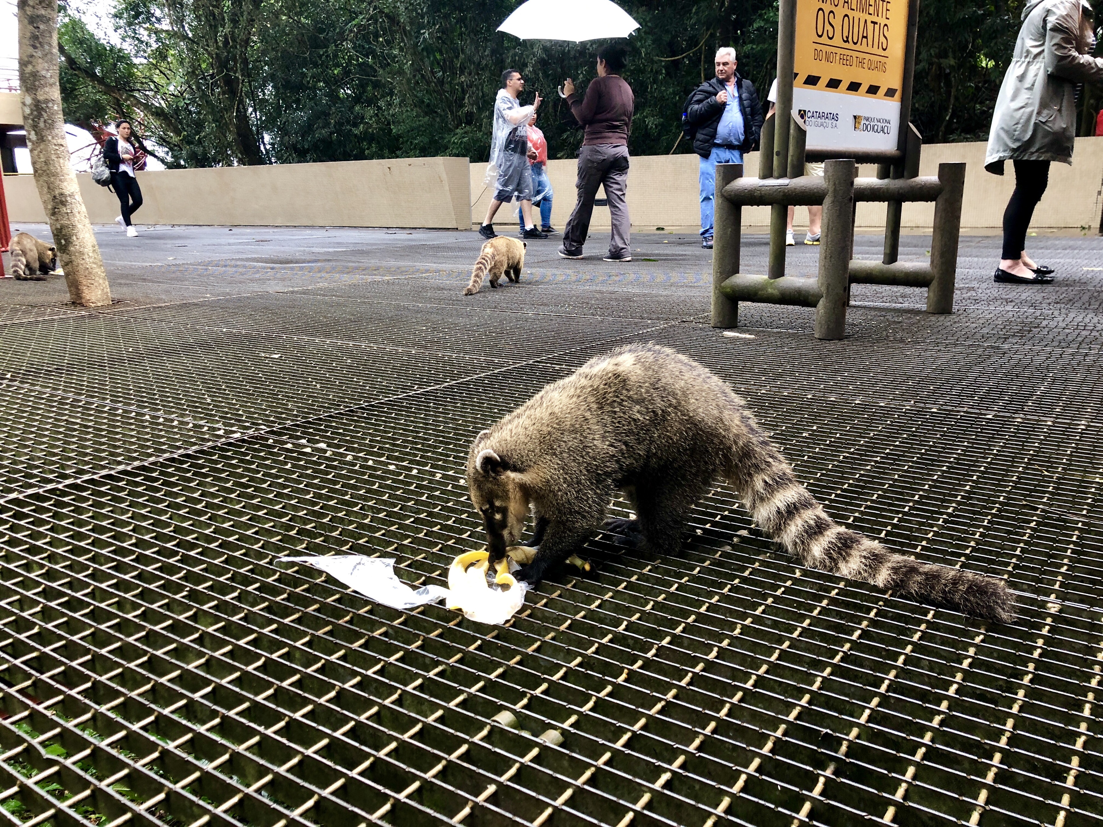 이곳에도 역시 너구리과의 동물 쿠아치 Quati 가 사람들에게 다가와 먹을 것을 내놓으라며