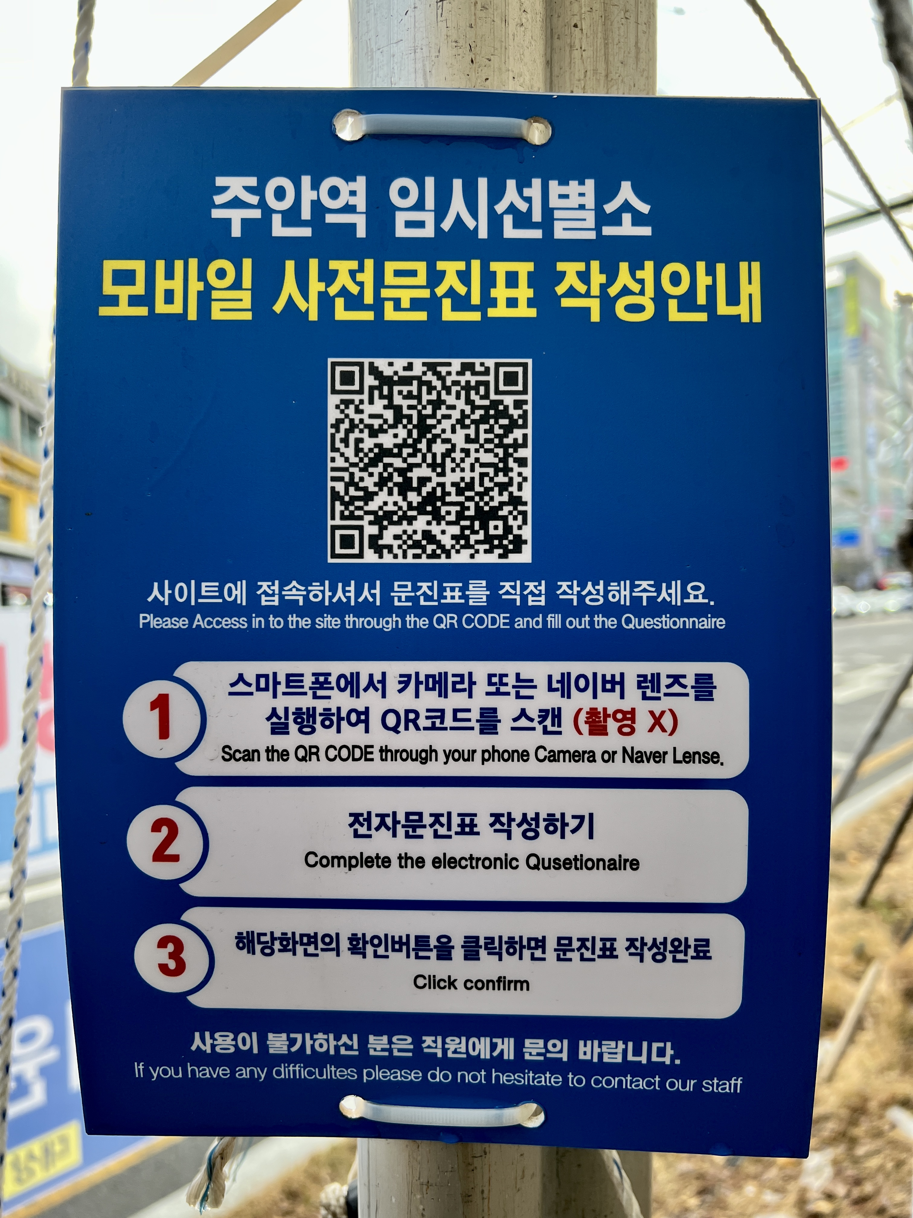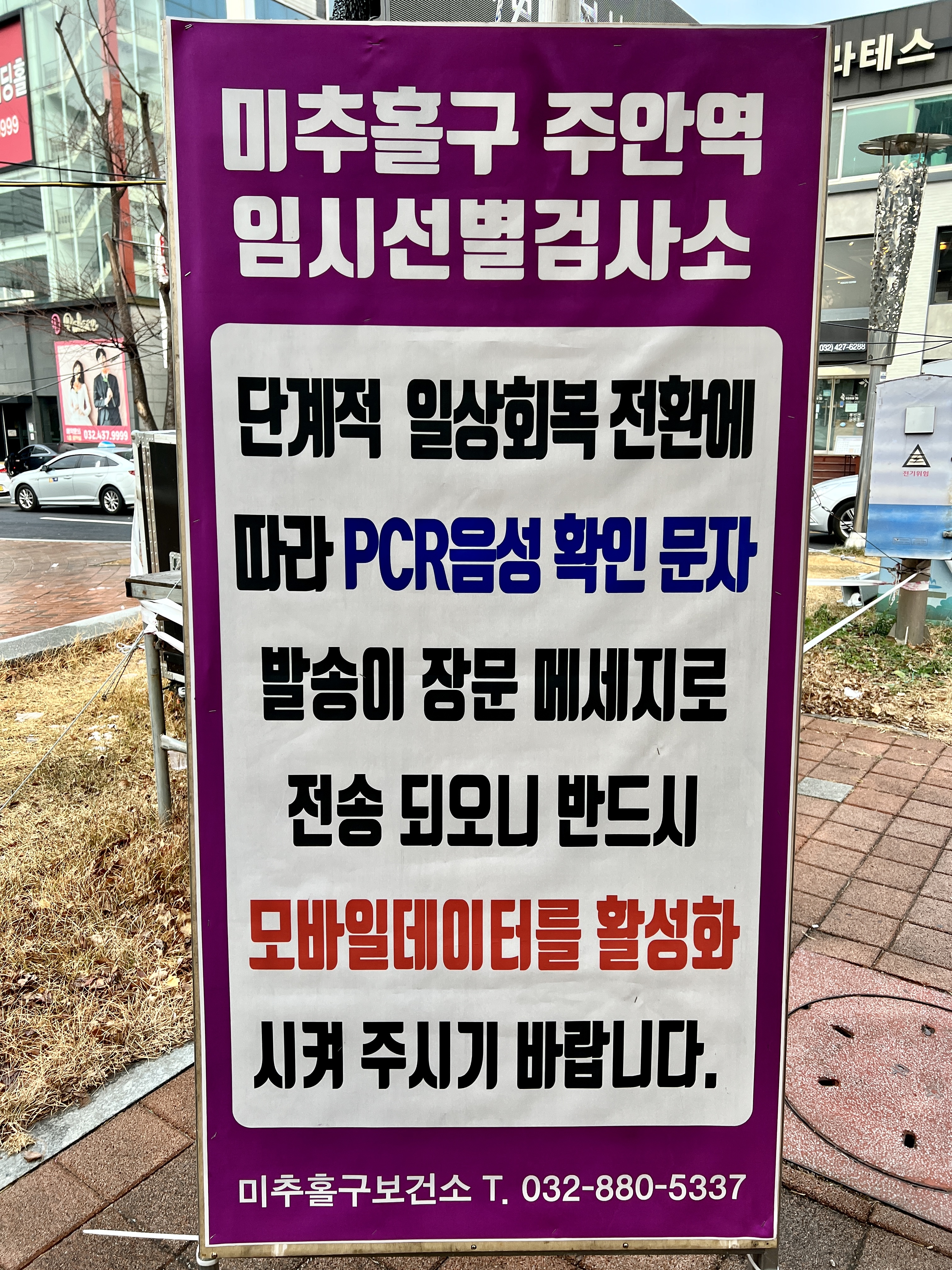 인천 미추홀구 주안역 임시선별검사소를 들려 재택근무를 하고 음성 결과가 뜰 때까지