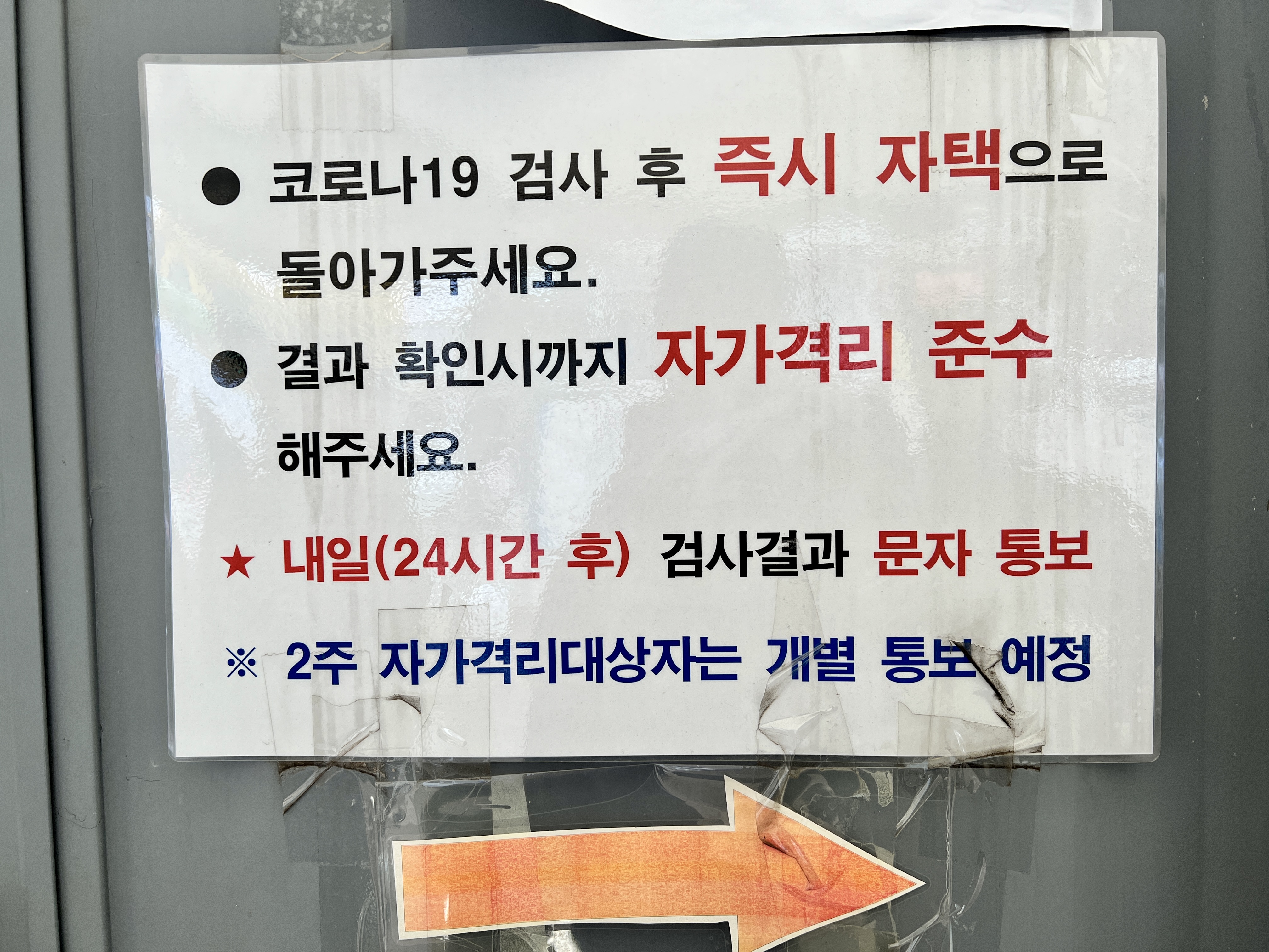 미추홀구 주안역 임시선별검사소에서 검사를 마치고 나오면 안내문이 있습니다.
