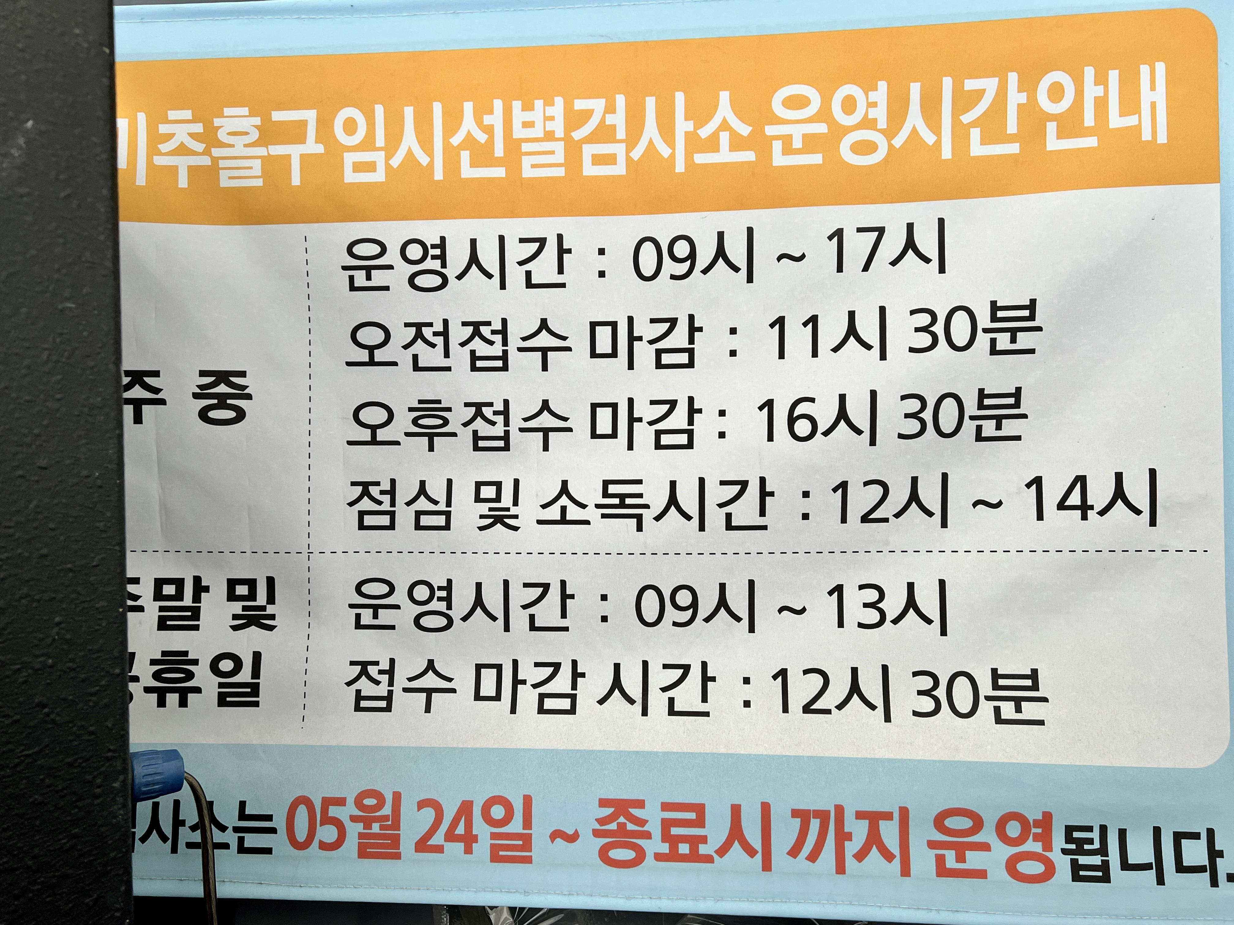 오늘은 미추홀구 주안역 임시선별검사소 위치 및 운영시간에 대해 포스팅 해보고자 합니다.
