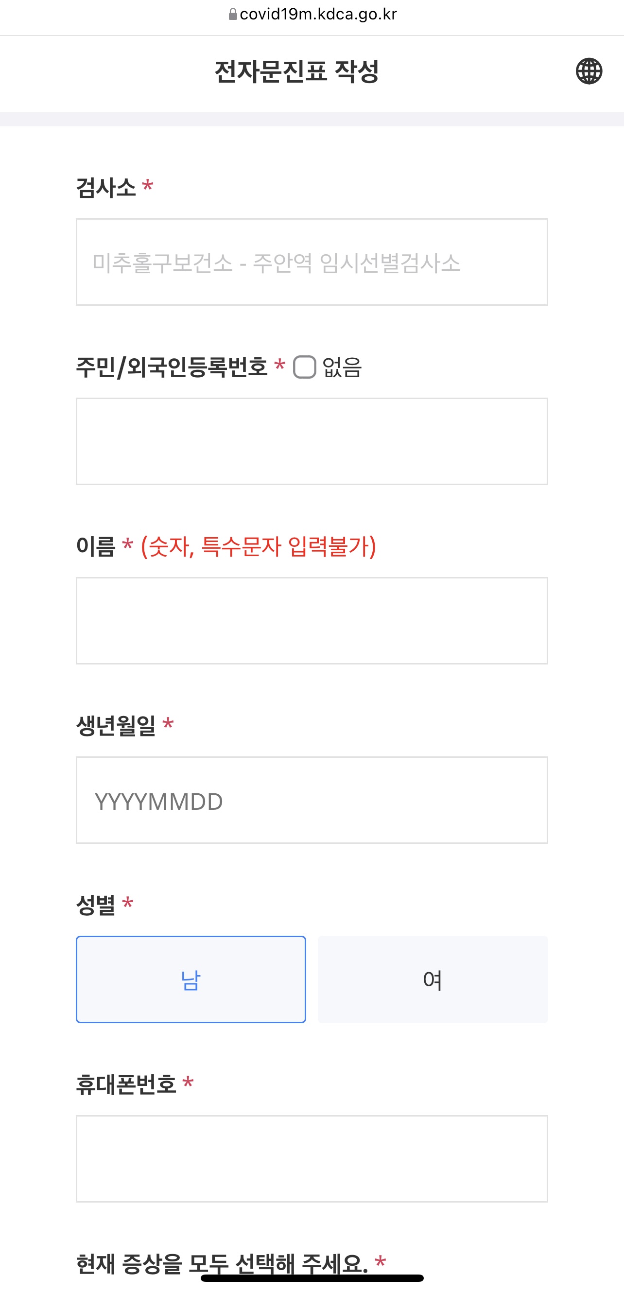 인천 미추홀구 주안역 임시선별검사소를 들려 재택근무를 하고 음성 결과가 뜰 때까지