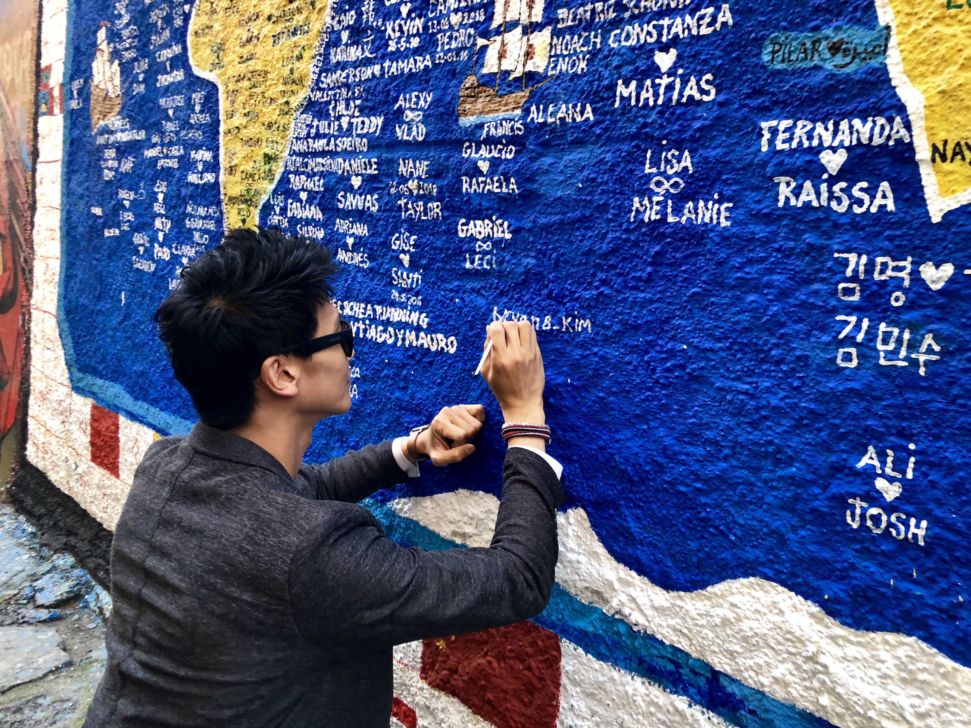 이 벽화의 파랑색 바다부분에 돈을내면 자신이 원하는 문구를 새겨주는데요!!