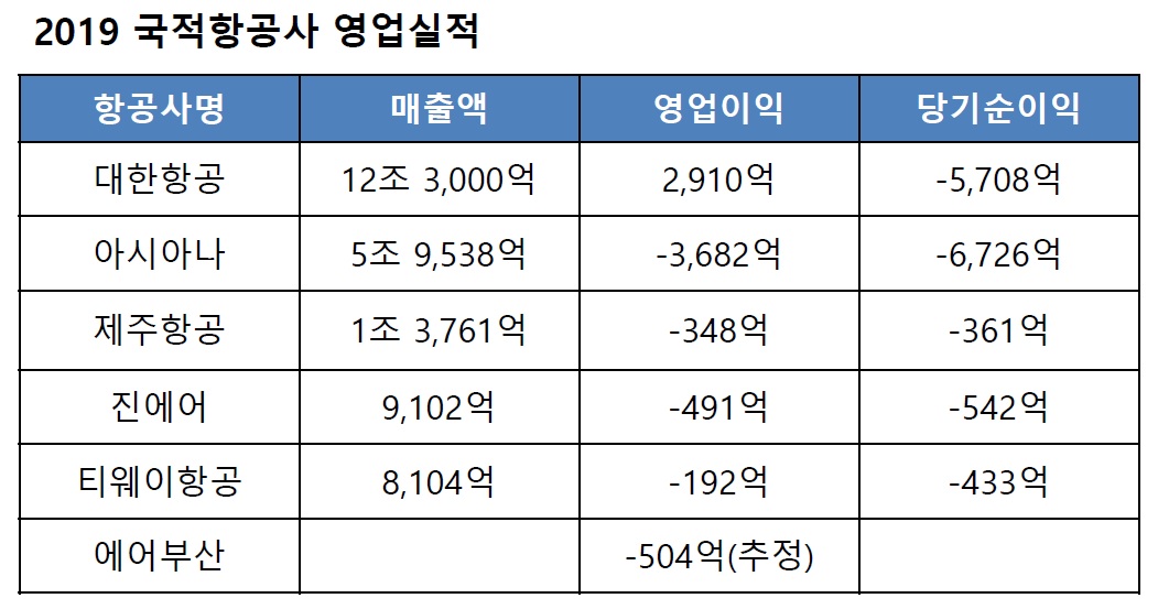 (비 상장사인 이스타항공, 에어서울 및 아직 실적 발표하지 않은 에어부산은 제외)
