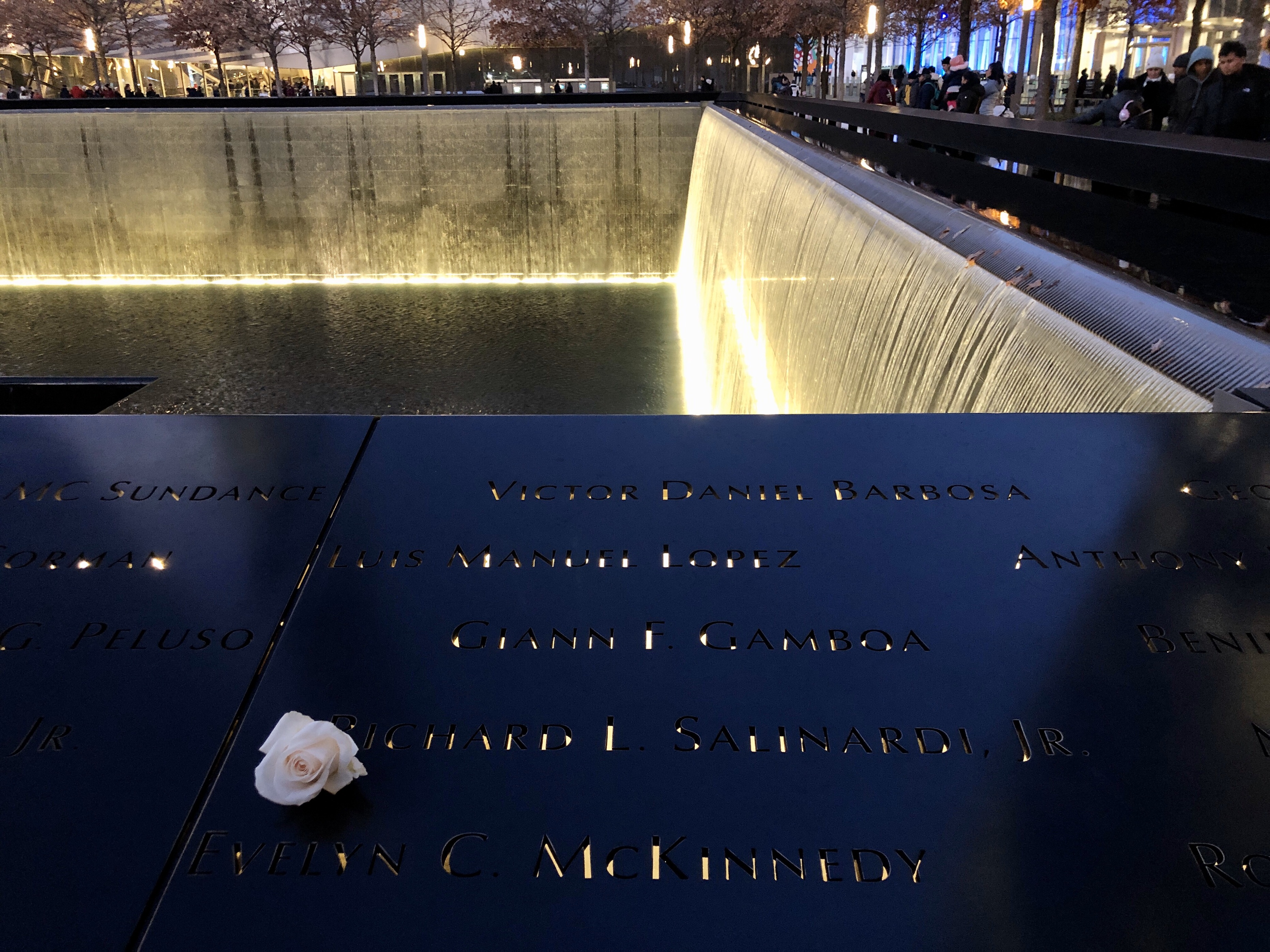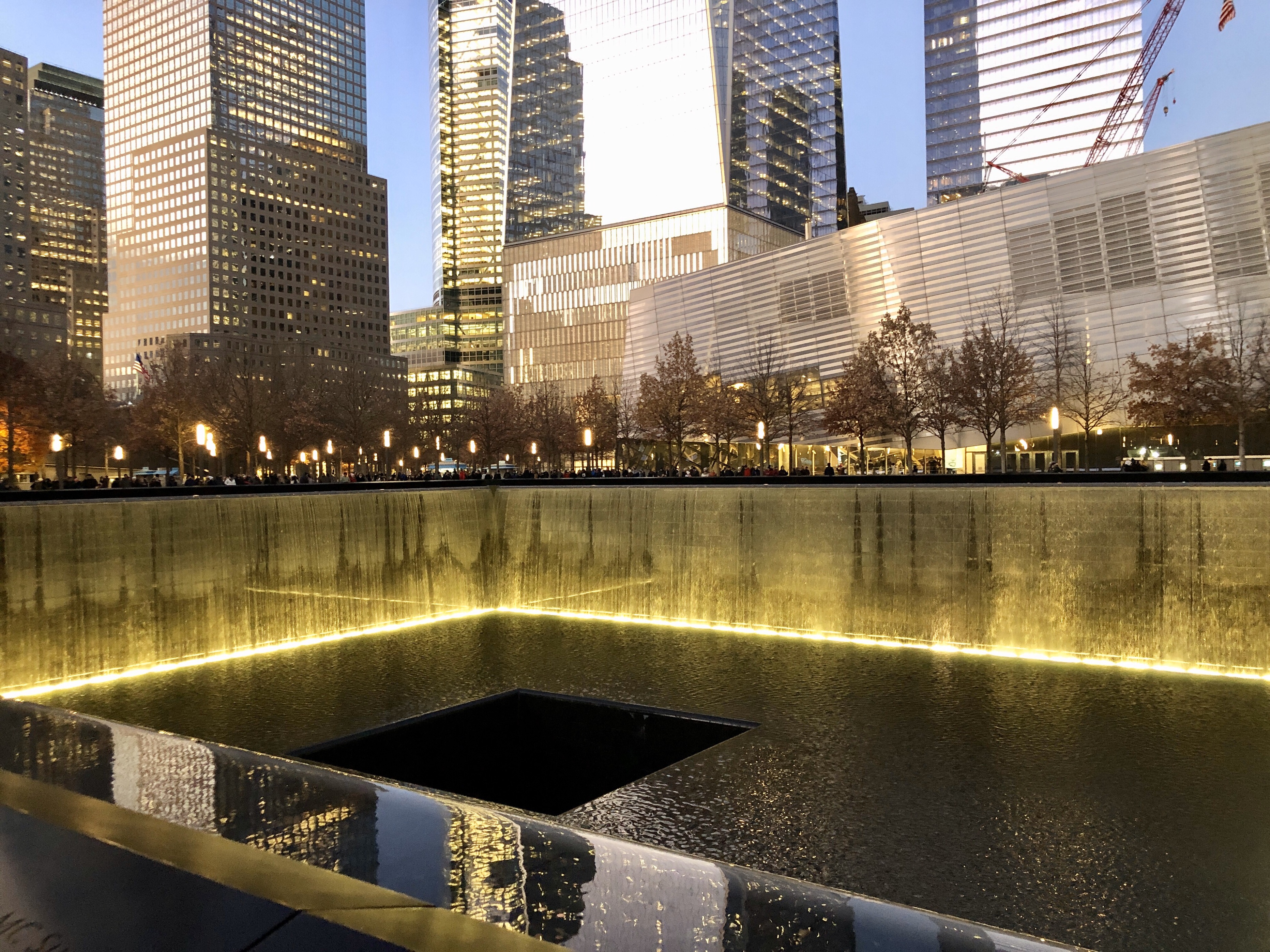 각각의 분수대는 정확히 쌍둥이 빌딩이 서있던 곳에 세워졌습니다.