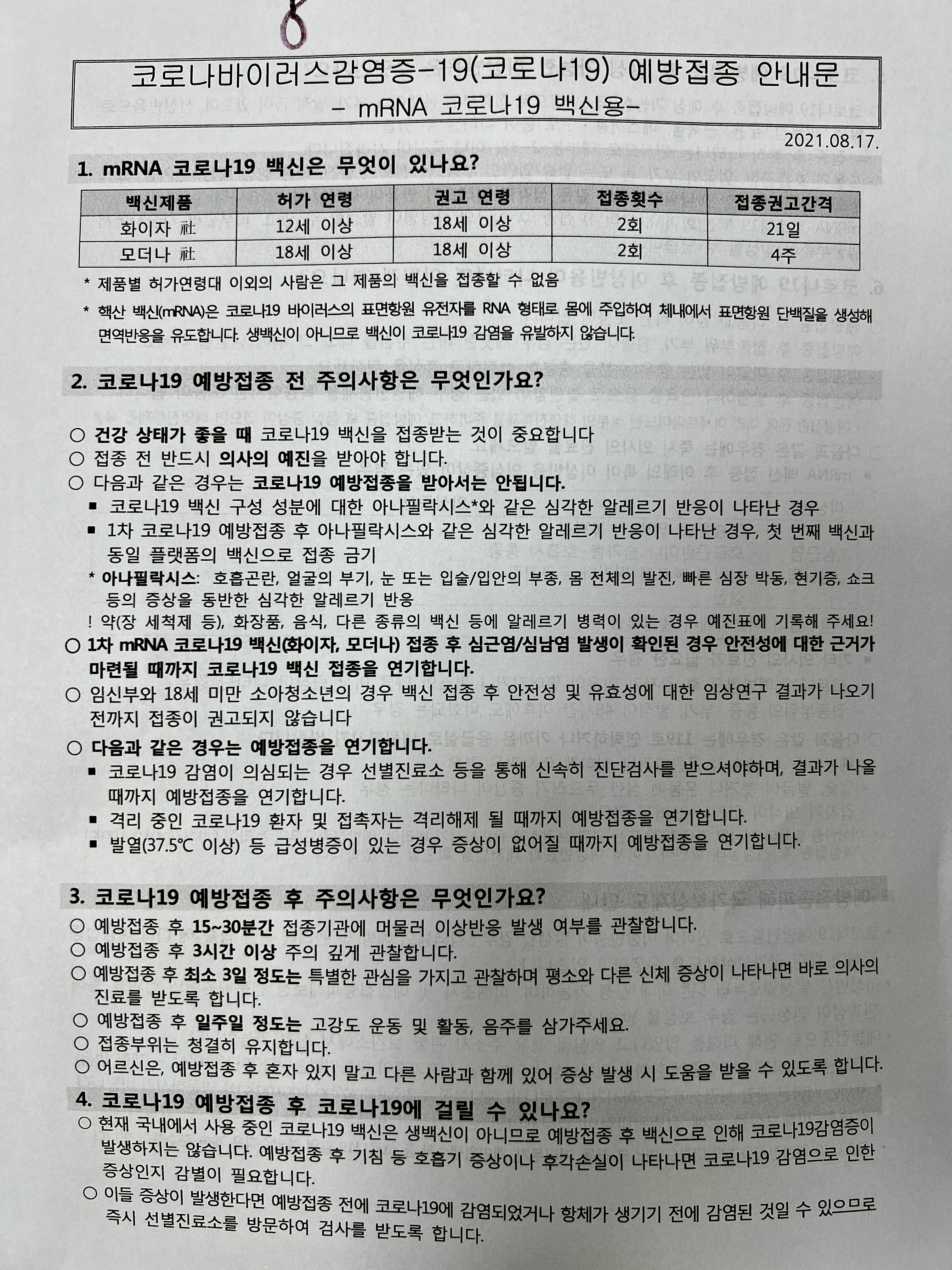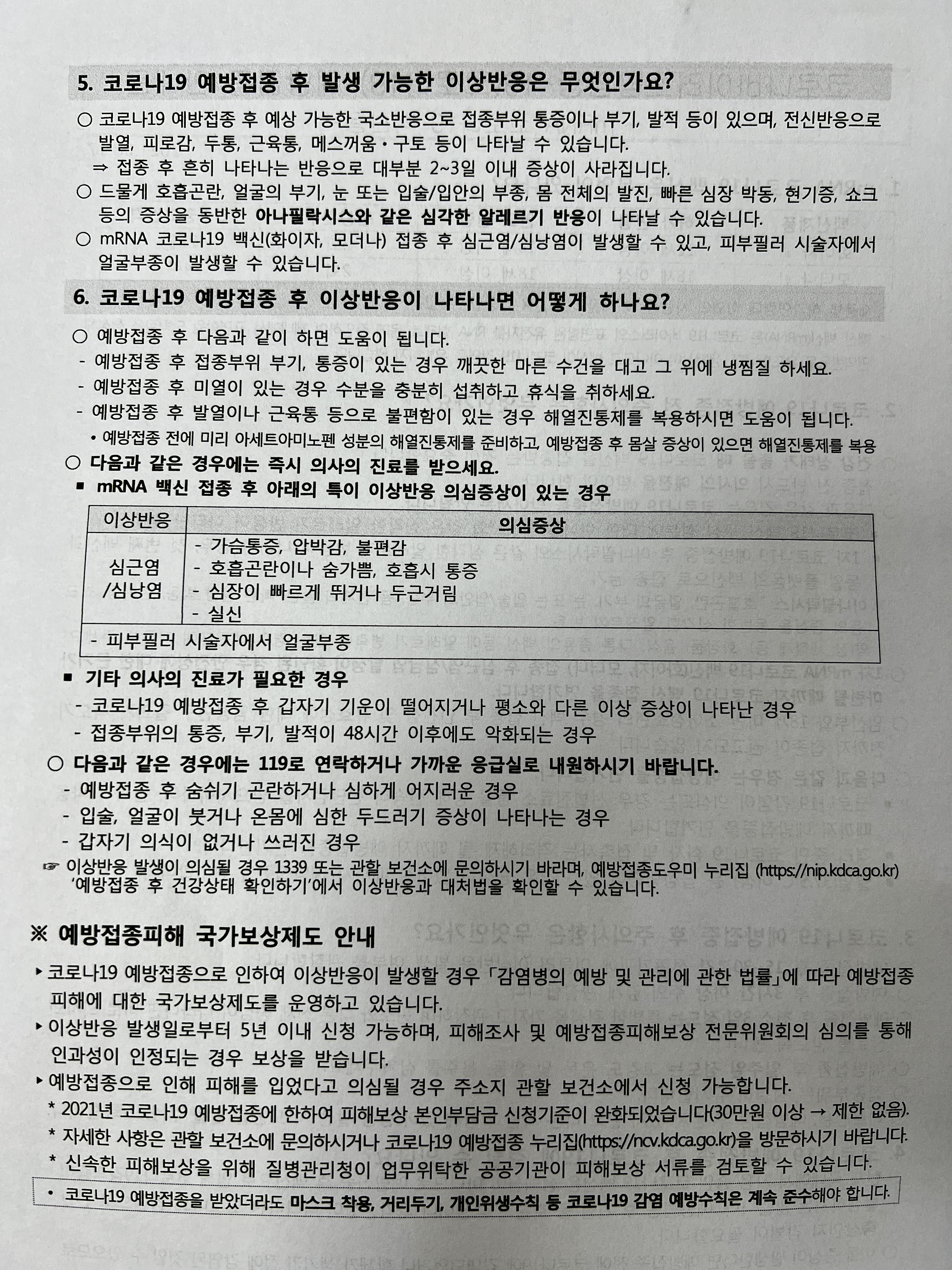 - 접종 후 최소 3시간 이상 안정을 취하시고, 내일까지는 무리하지 말아주세요.
