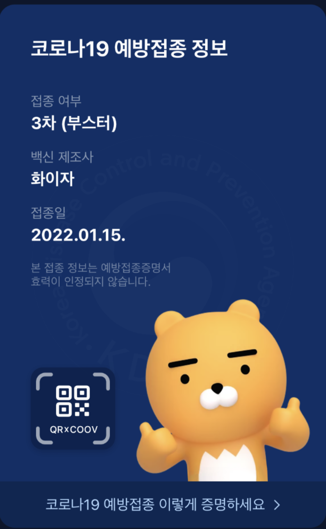 네이버와 카카오톡 QR 증명에는 바로 접종 증명 업데이트를 하니 3차 부스터샷까지