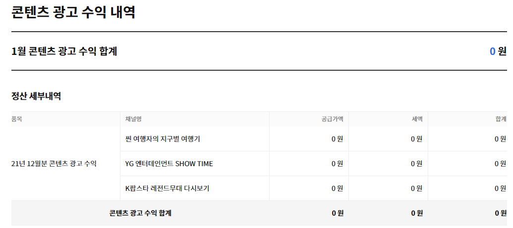 한편 콘텐츠 광고 수익은 0원이 나왔고 오로지 콘텐츠 큐레이션 수익만 발생하였네요!