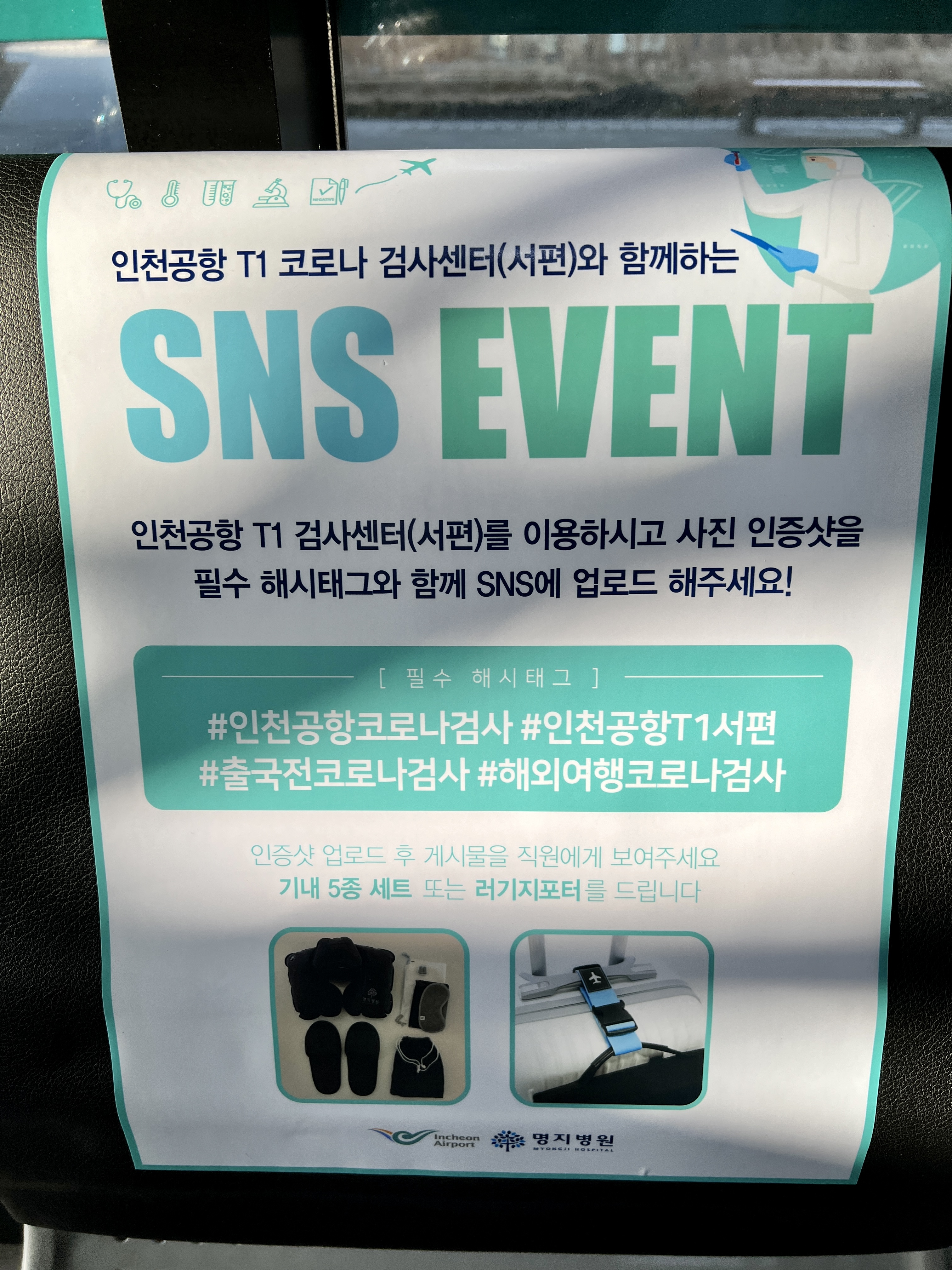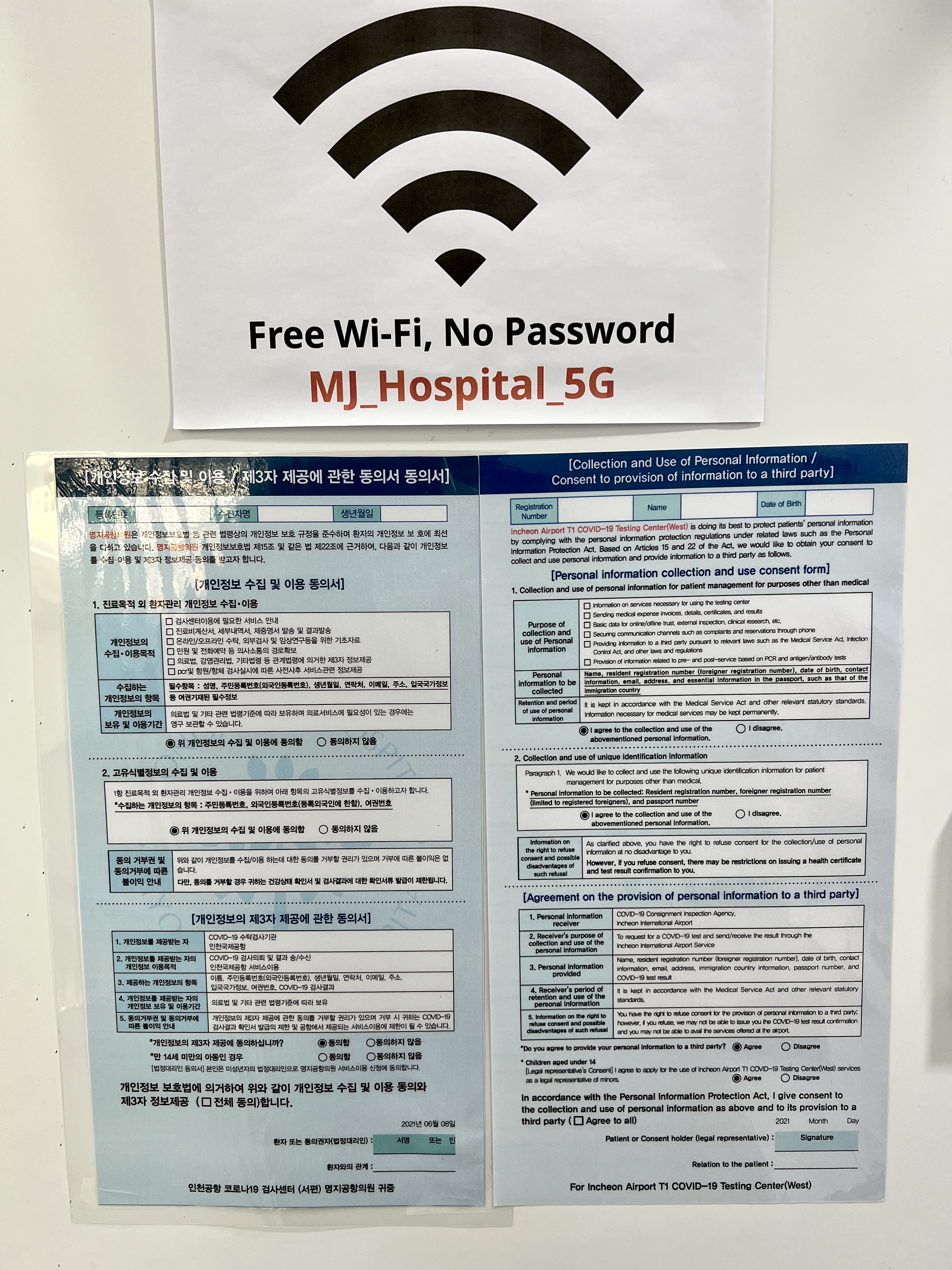 인천공항 T1 코로나 19 검사센터 (서편) 검사장에는 명지병원 무료 와이파이를 사용할 수 있네요!