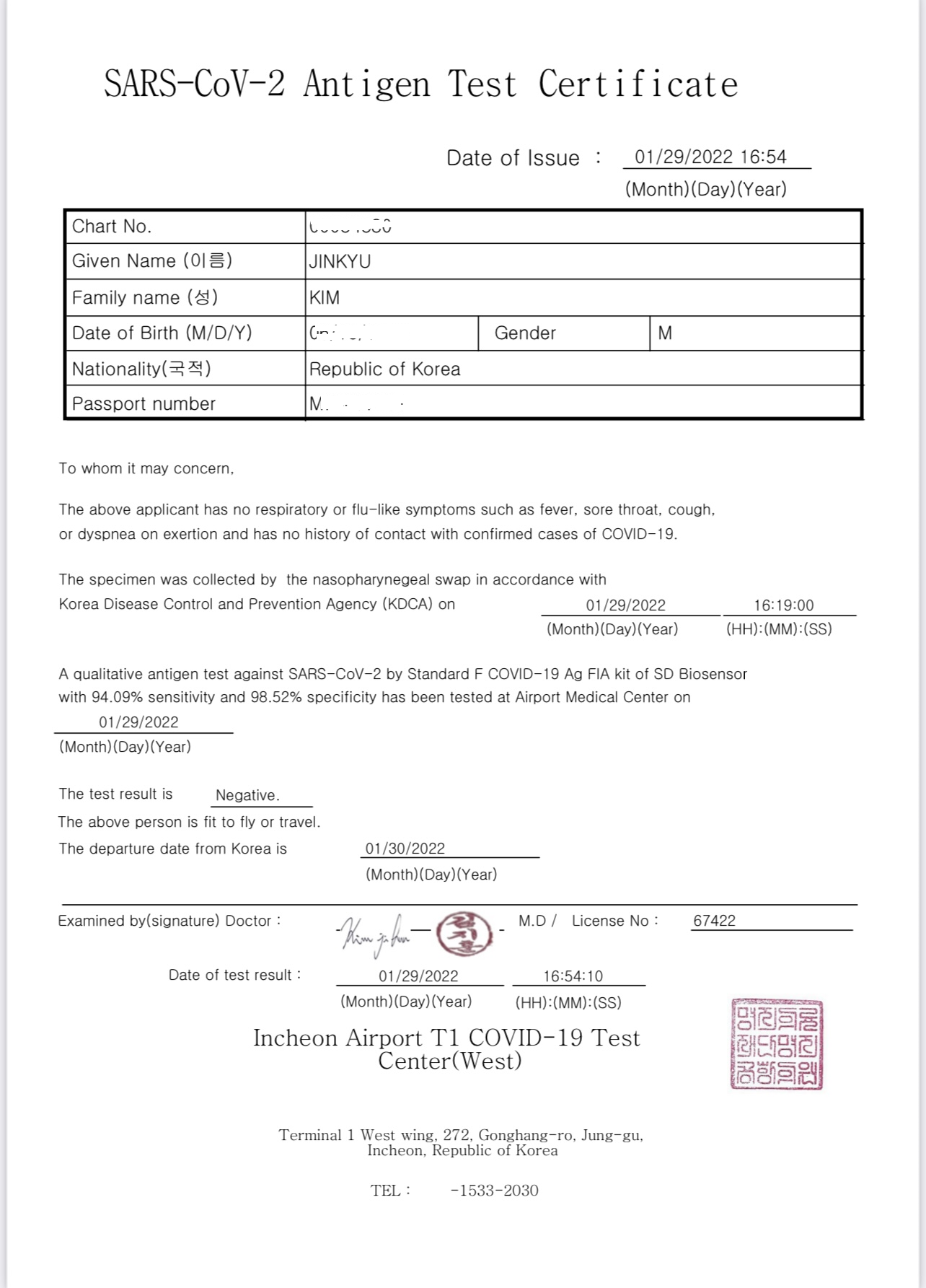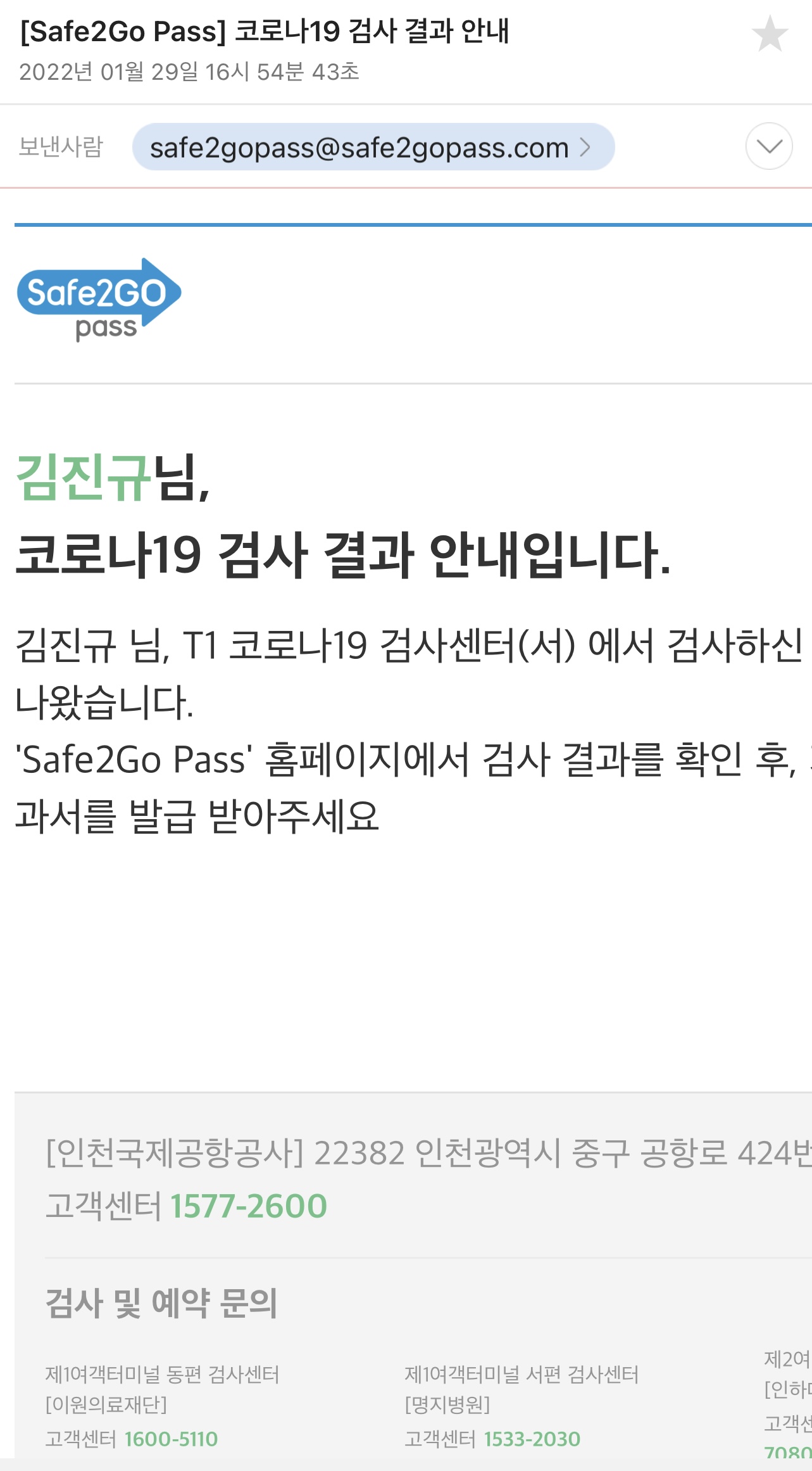 확실히 떠나기전 바로 공항에서 검사받으니 편하고 좋았습니다.
