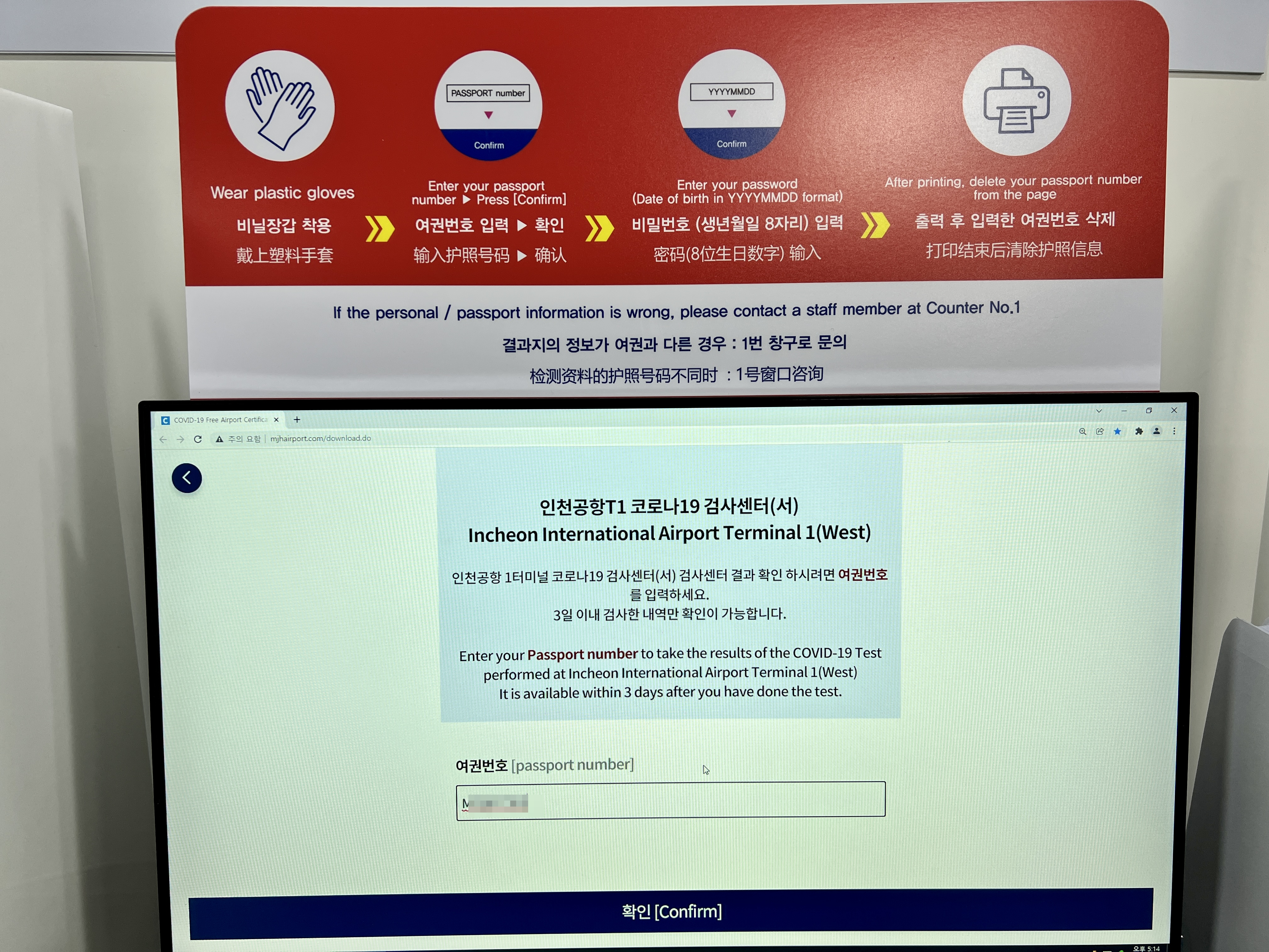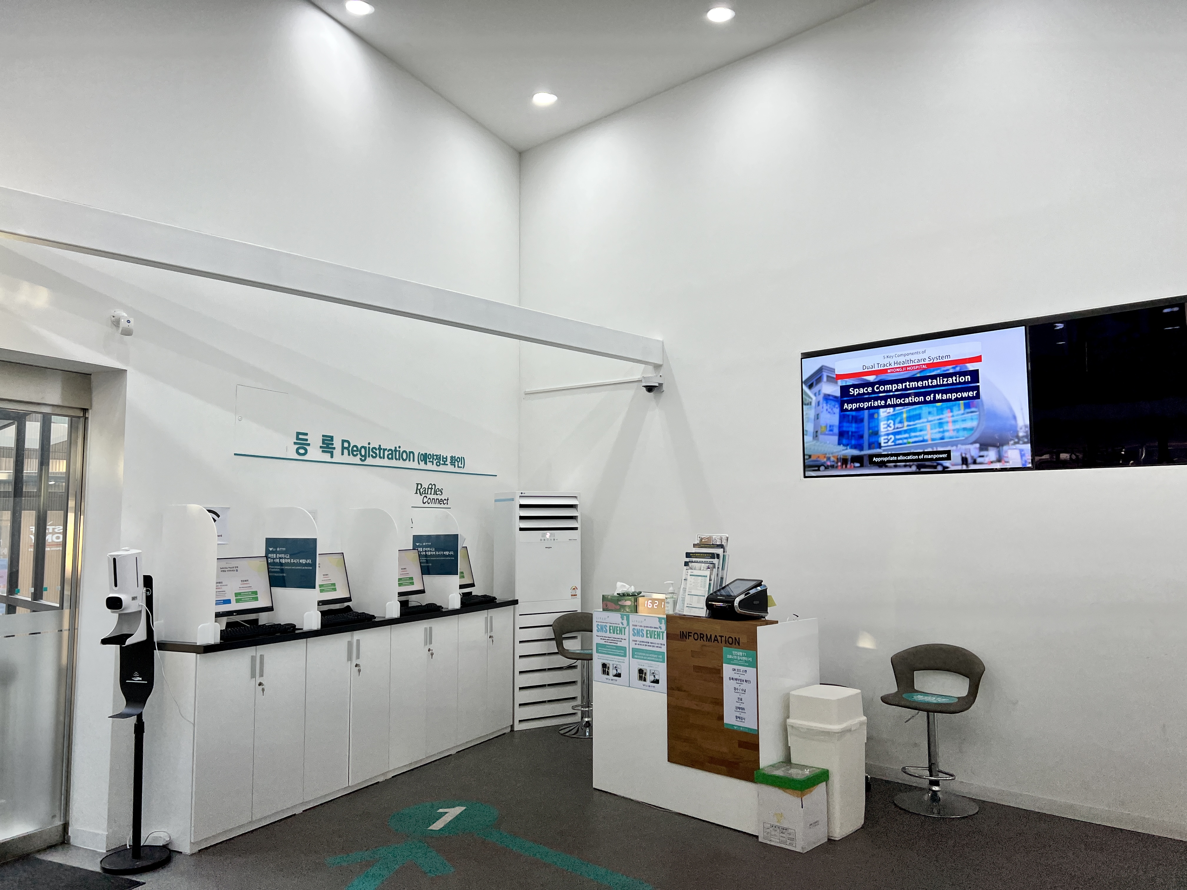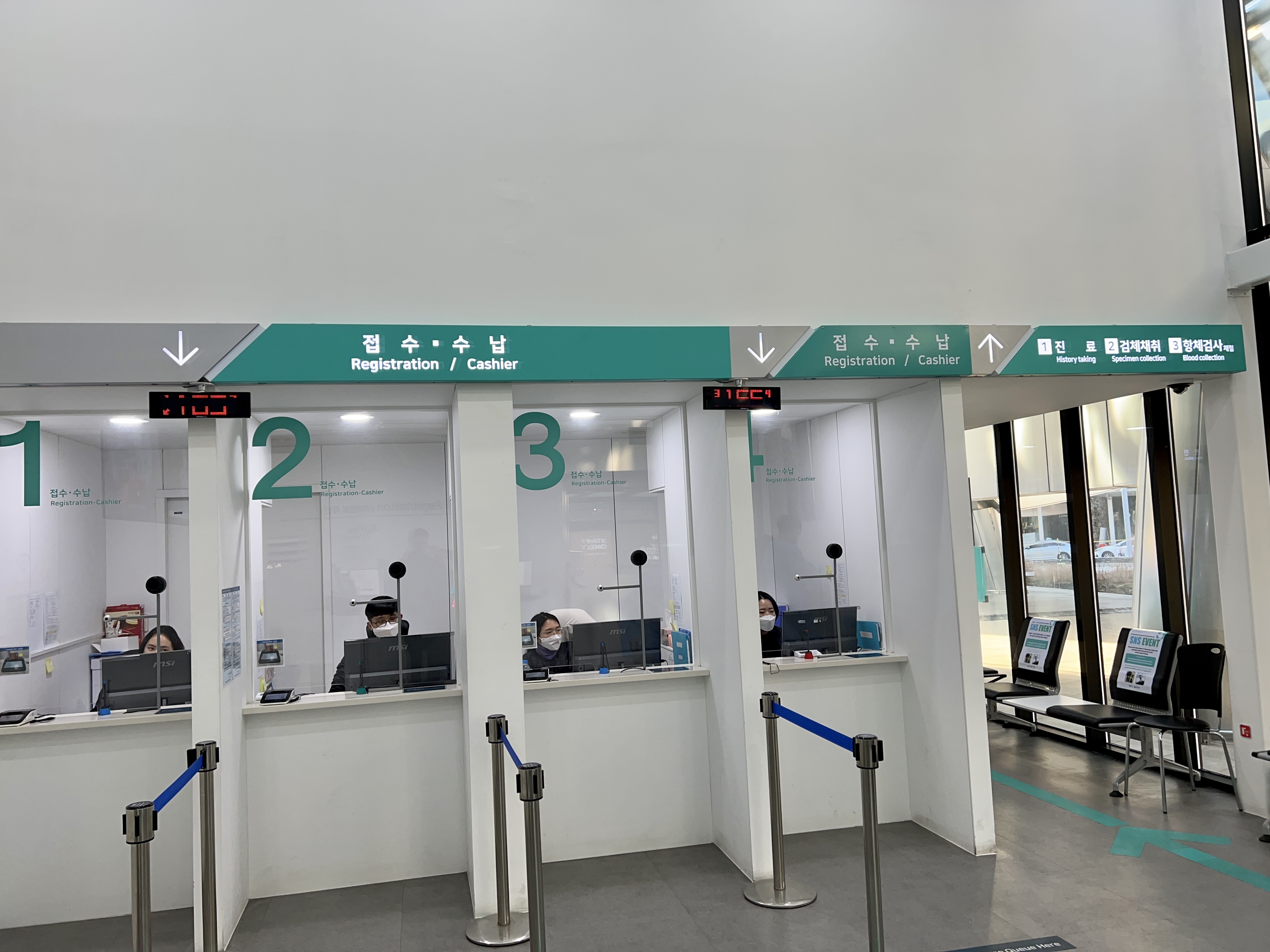 들어가면 손소독하고 체온측정부터 하고 컴퓨터를 통해 사전 예약한 내용 확인부터 하고