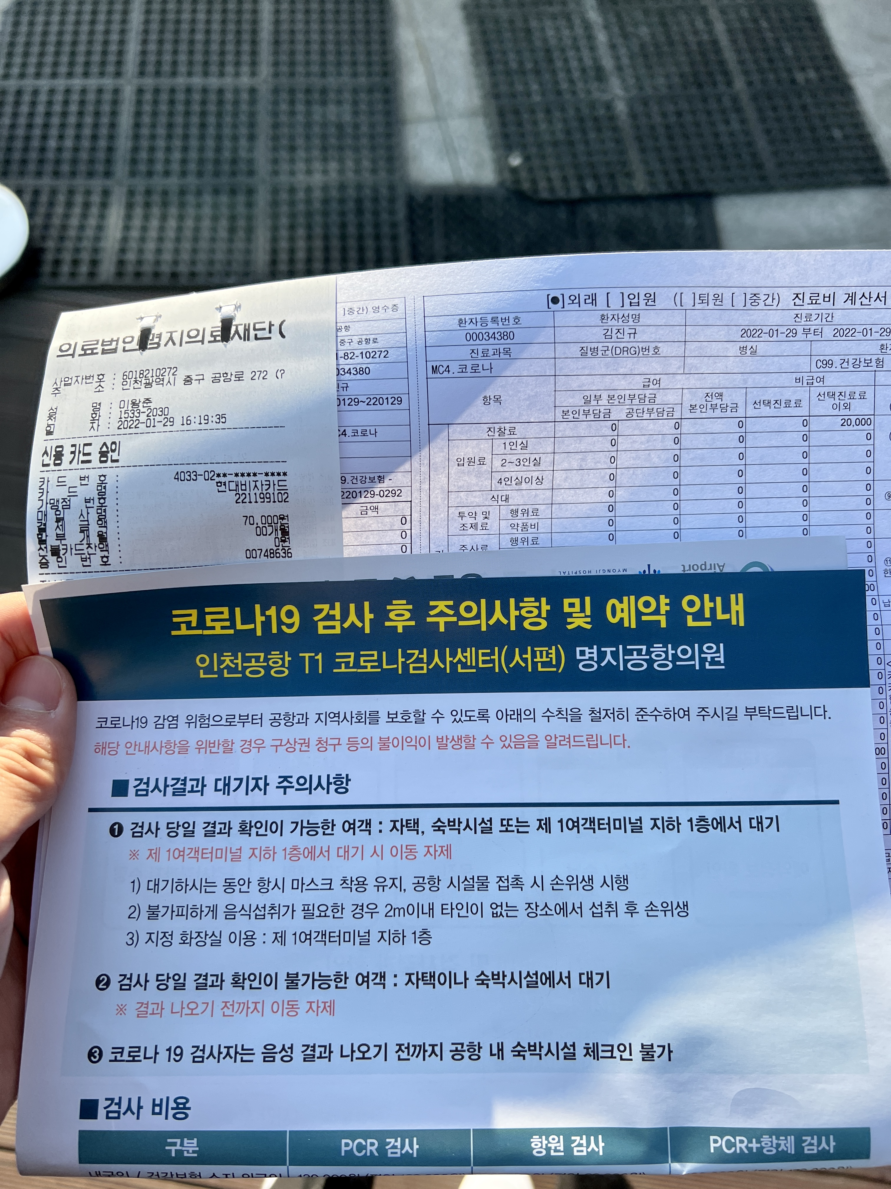 저는 항원 검사비 7만원을 카드로 결제하였고, 의사분과 만나서는 간단히 당일 컨디션 같은