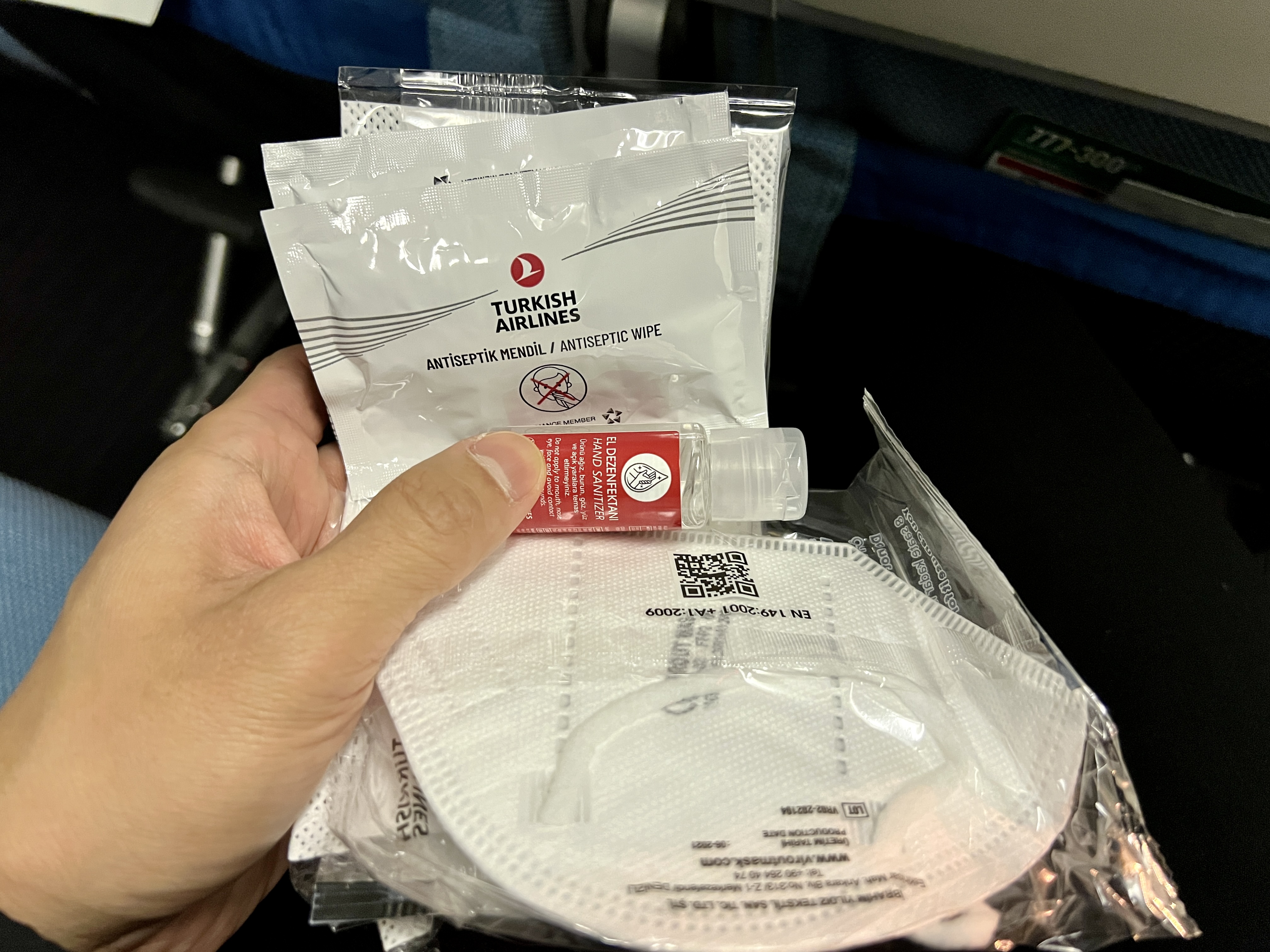 코로나 시대의 비행답게 입구에서 신문대신 방역 키트를 가져갈 수 있게 구비해 놨습니다.