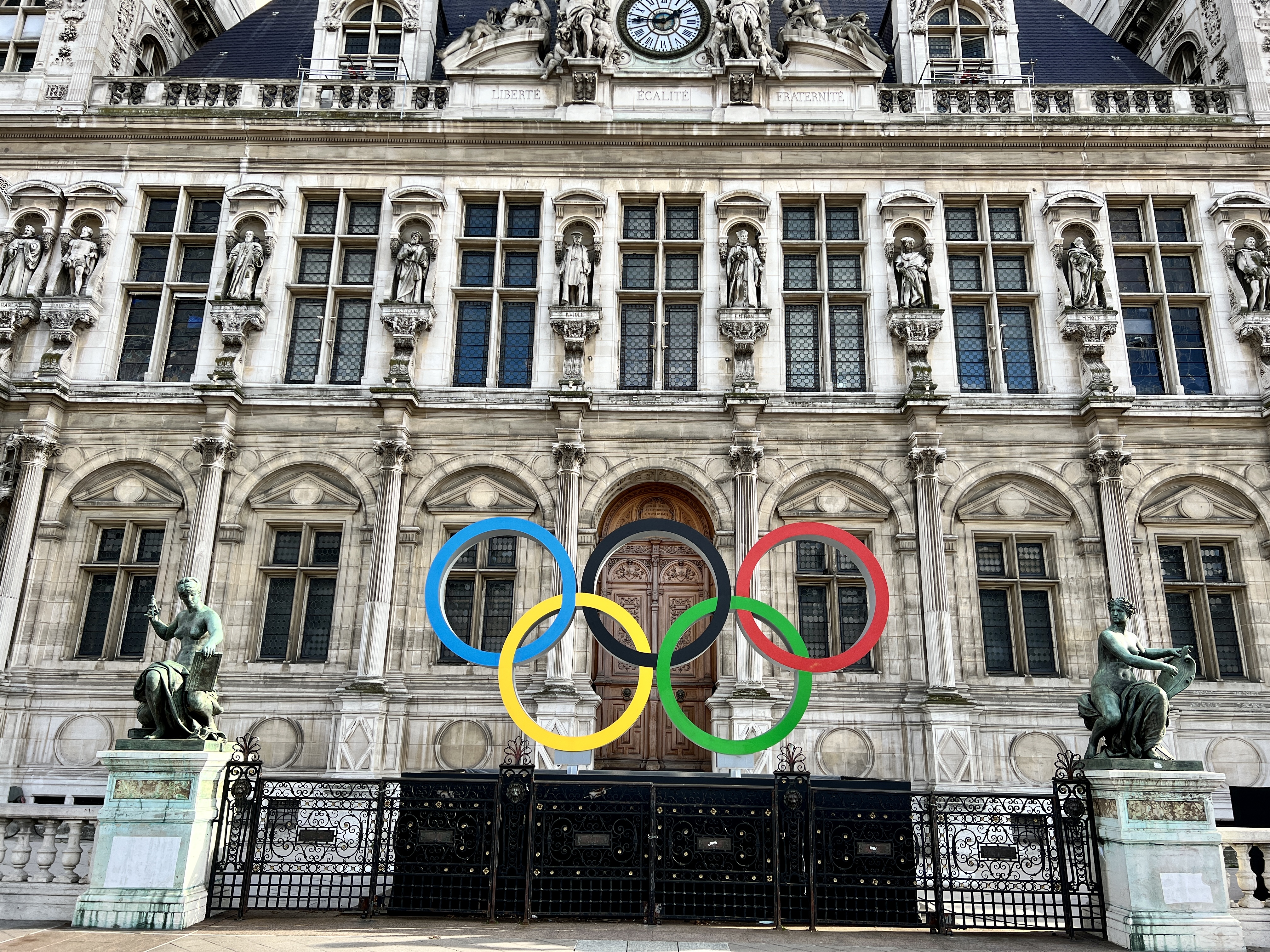 파리 시청사 앞에는 오륜기도 설치 되어 있어서, 2년 밖에 남지 않은 올림픽에 대한 기대감을