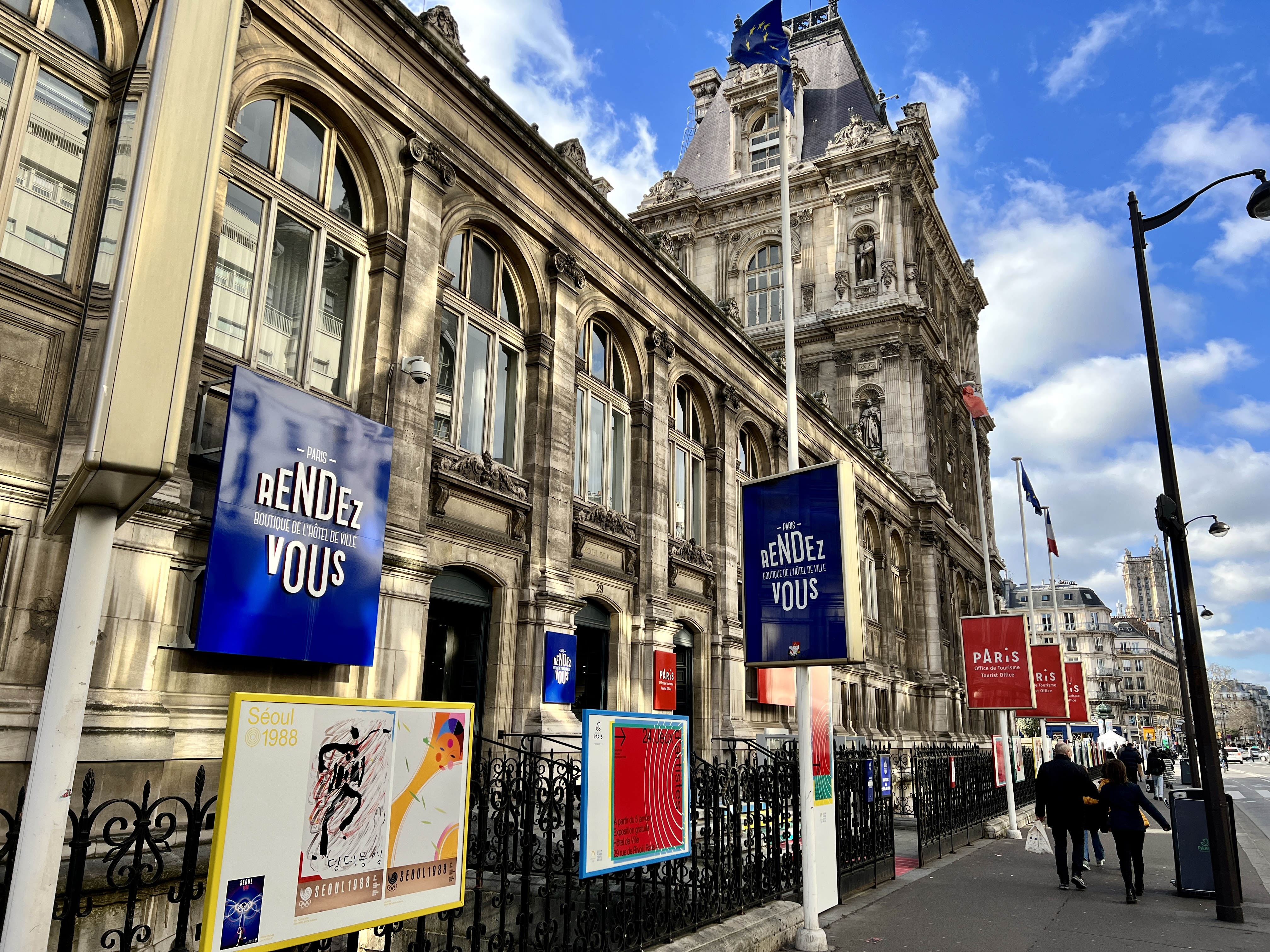 파리 시청사 앞에는 오륜기도 설치 되어 있어서, 2년 밖에 남지 않은 올림픽에 대한 기대감을