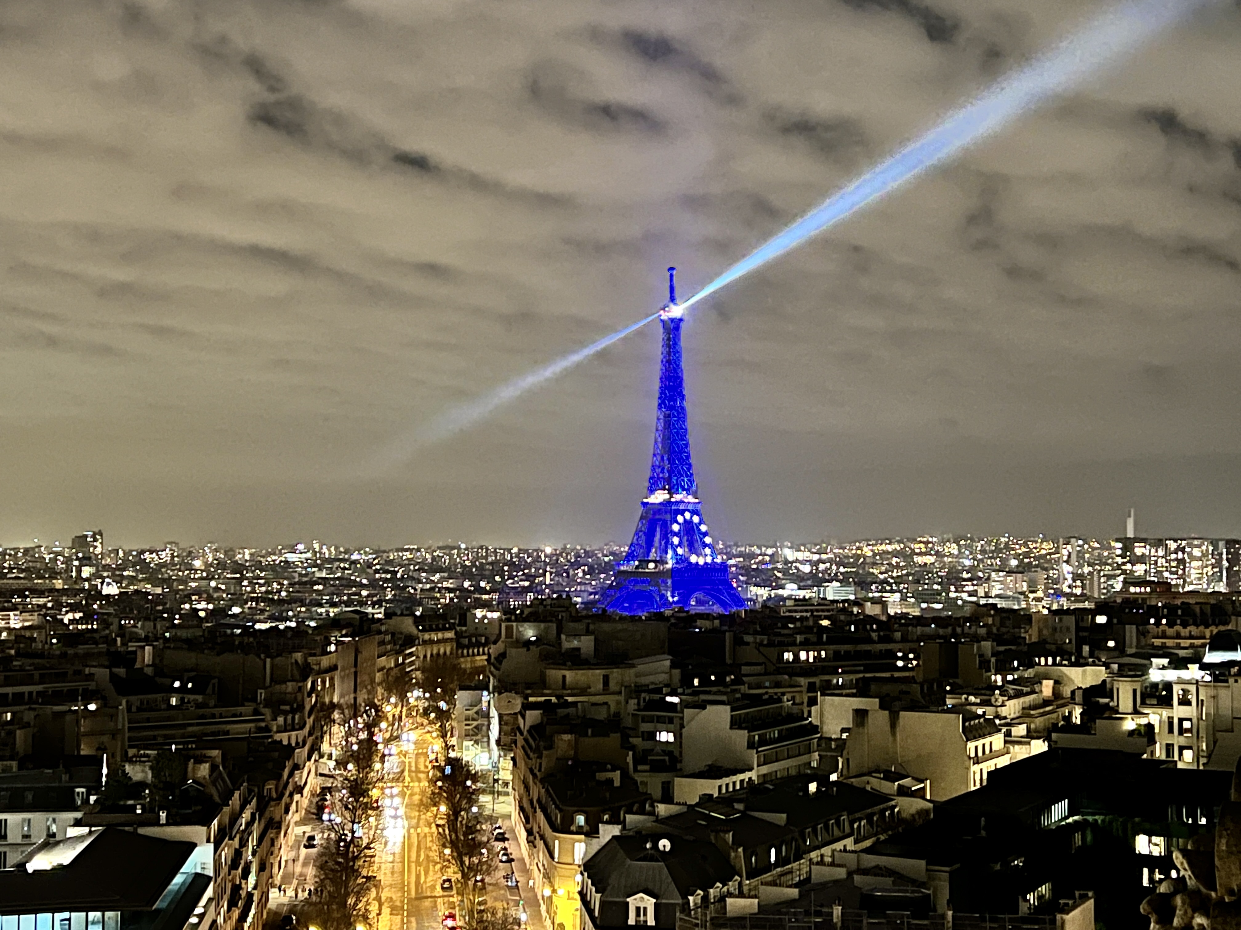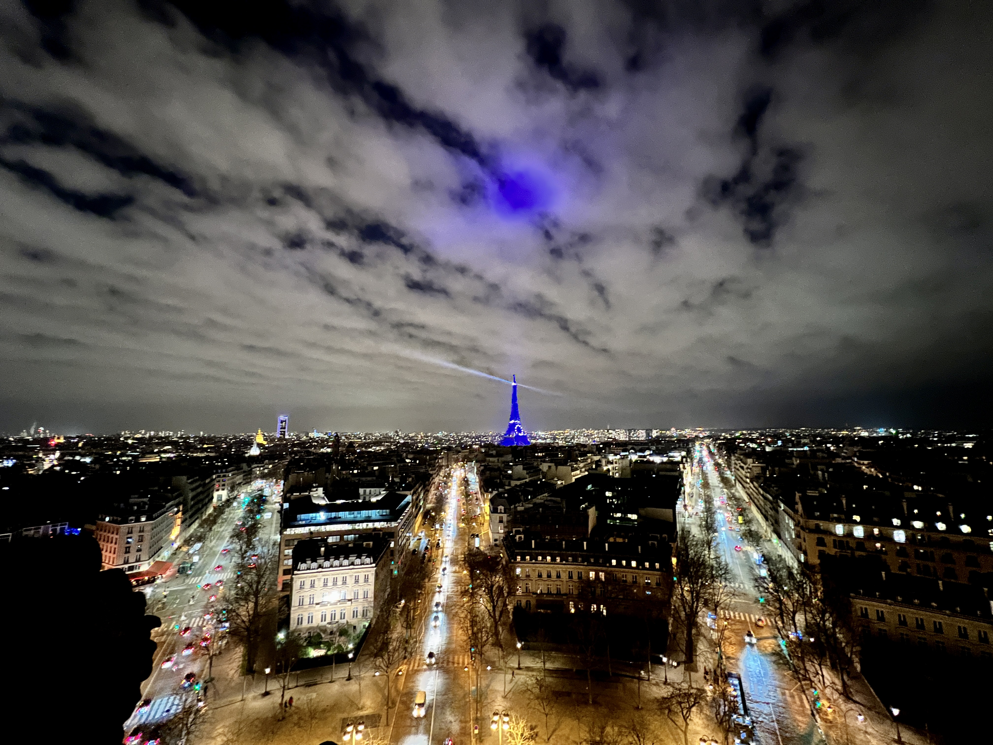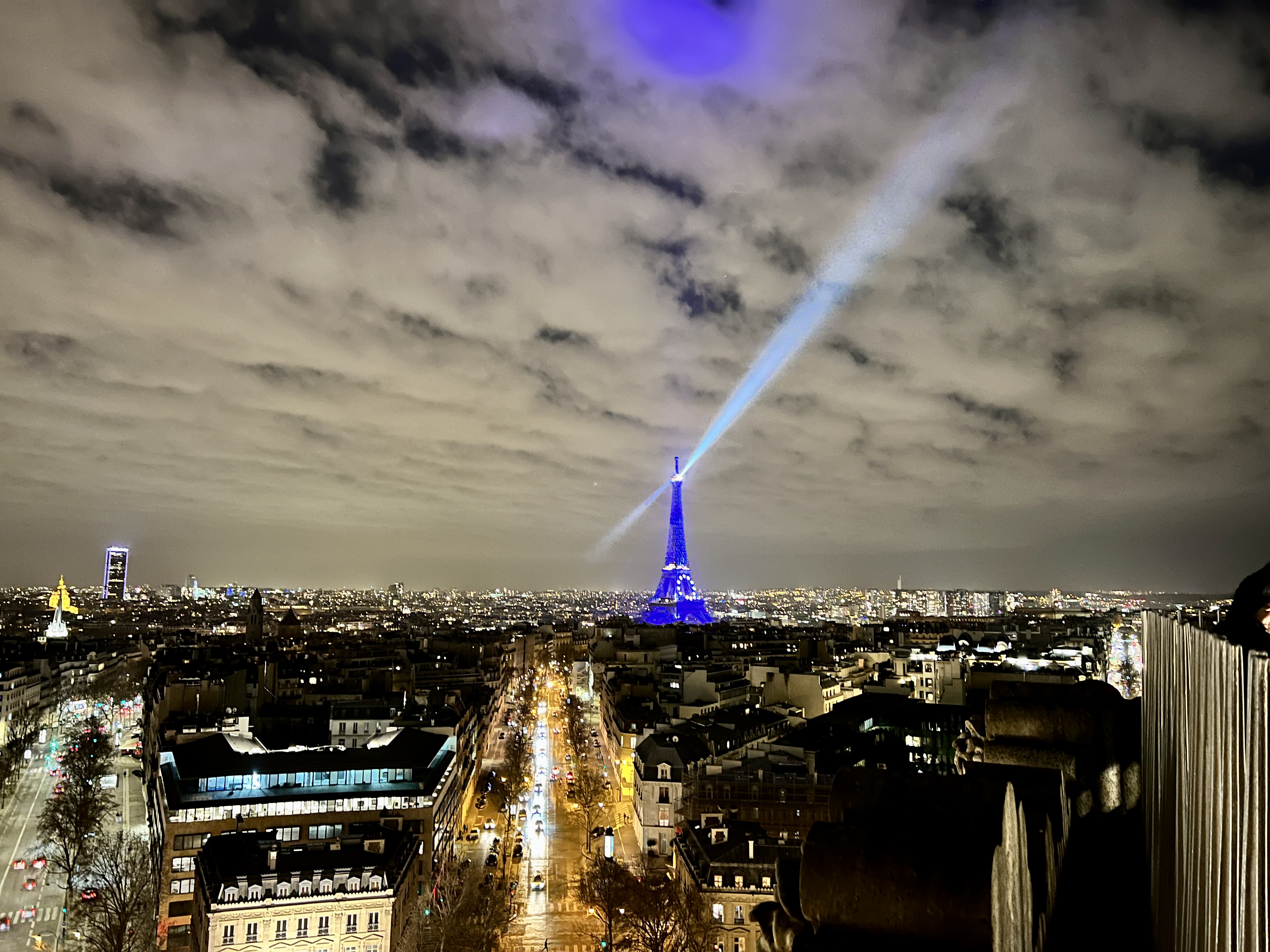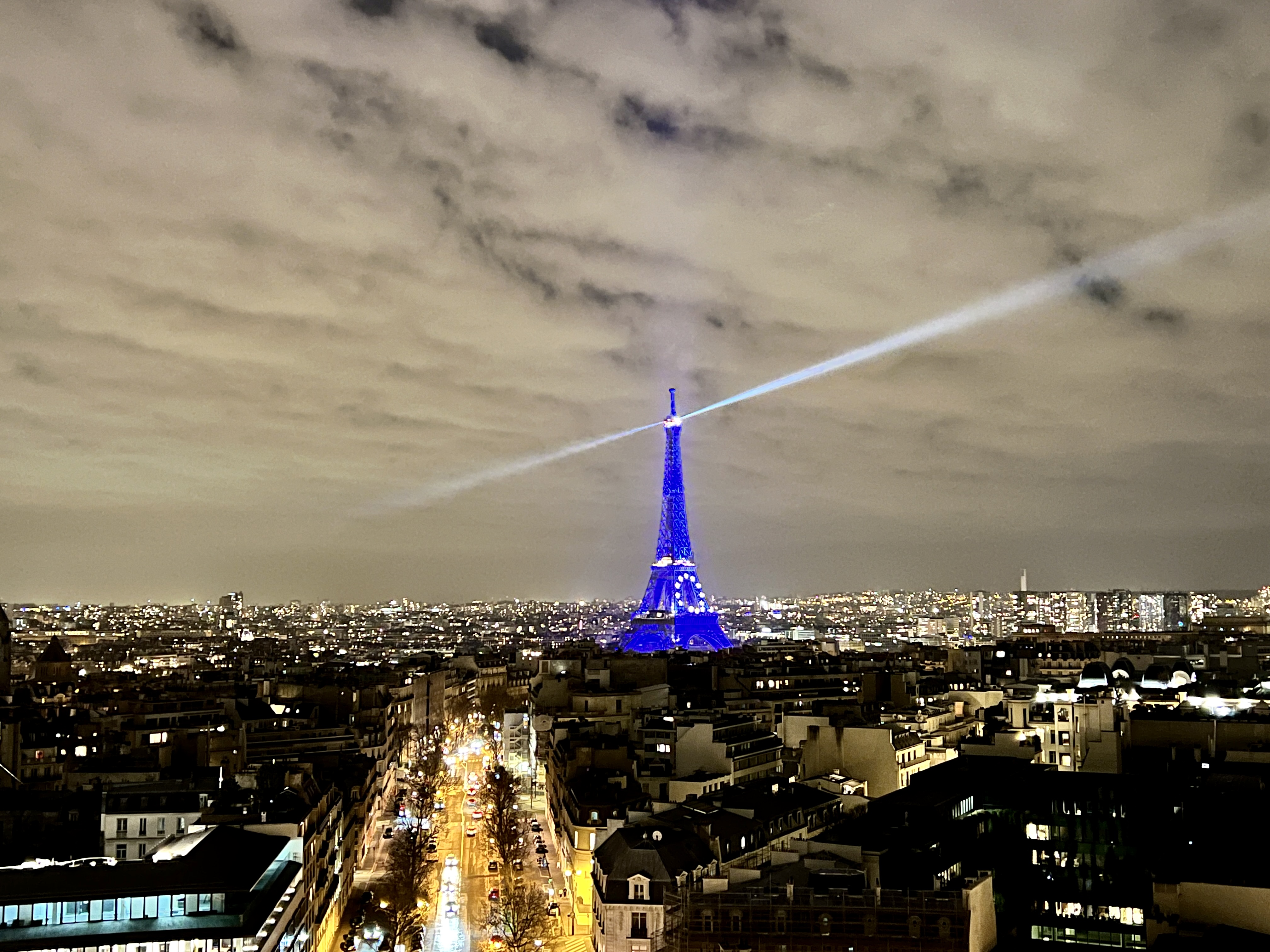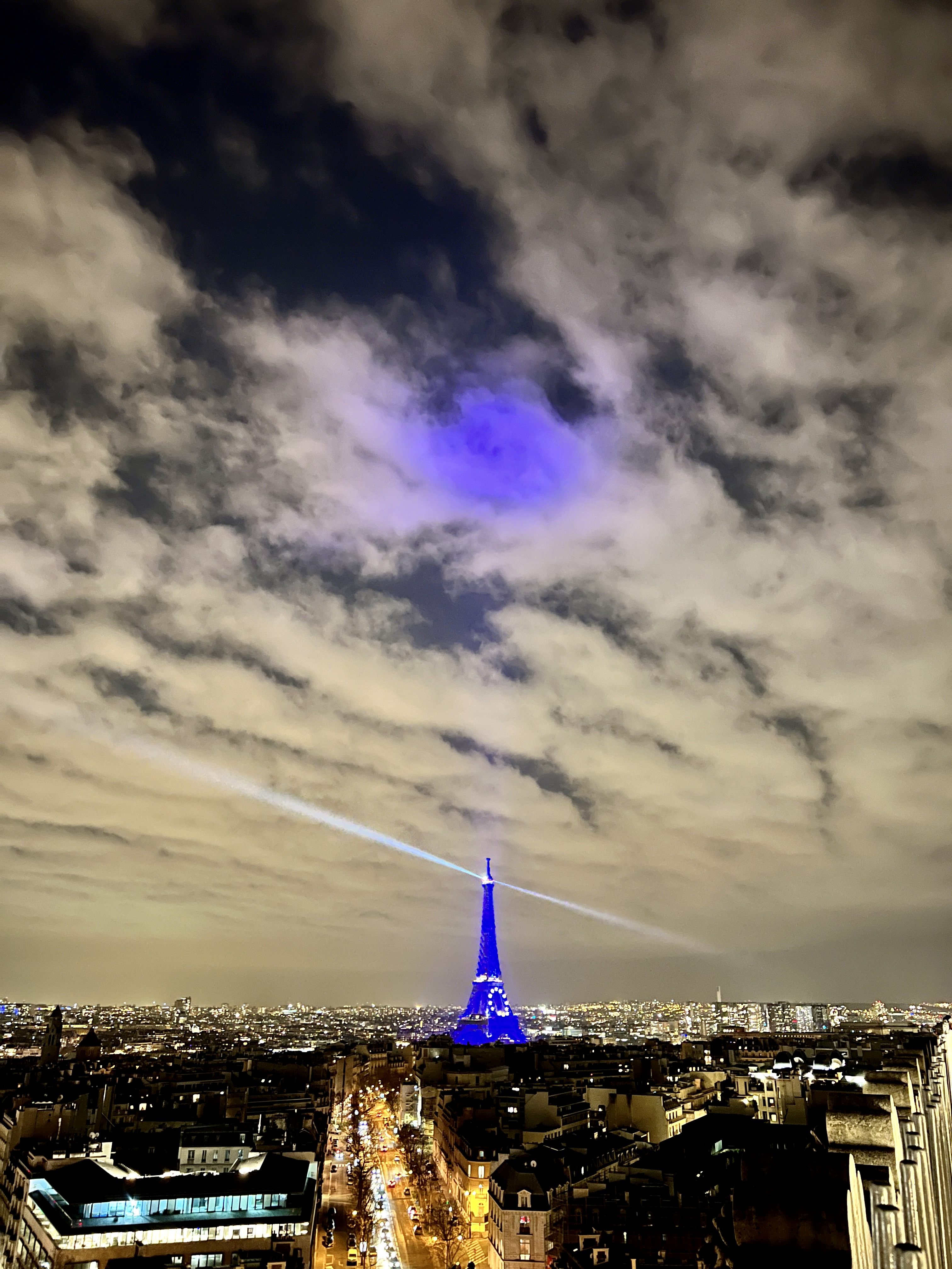 그리고 레이저가 돌아가는 푸른 빛 에펠탑은 개선문 위에서 보는 파리 야경의 정점입니다.