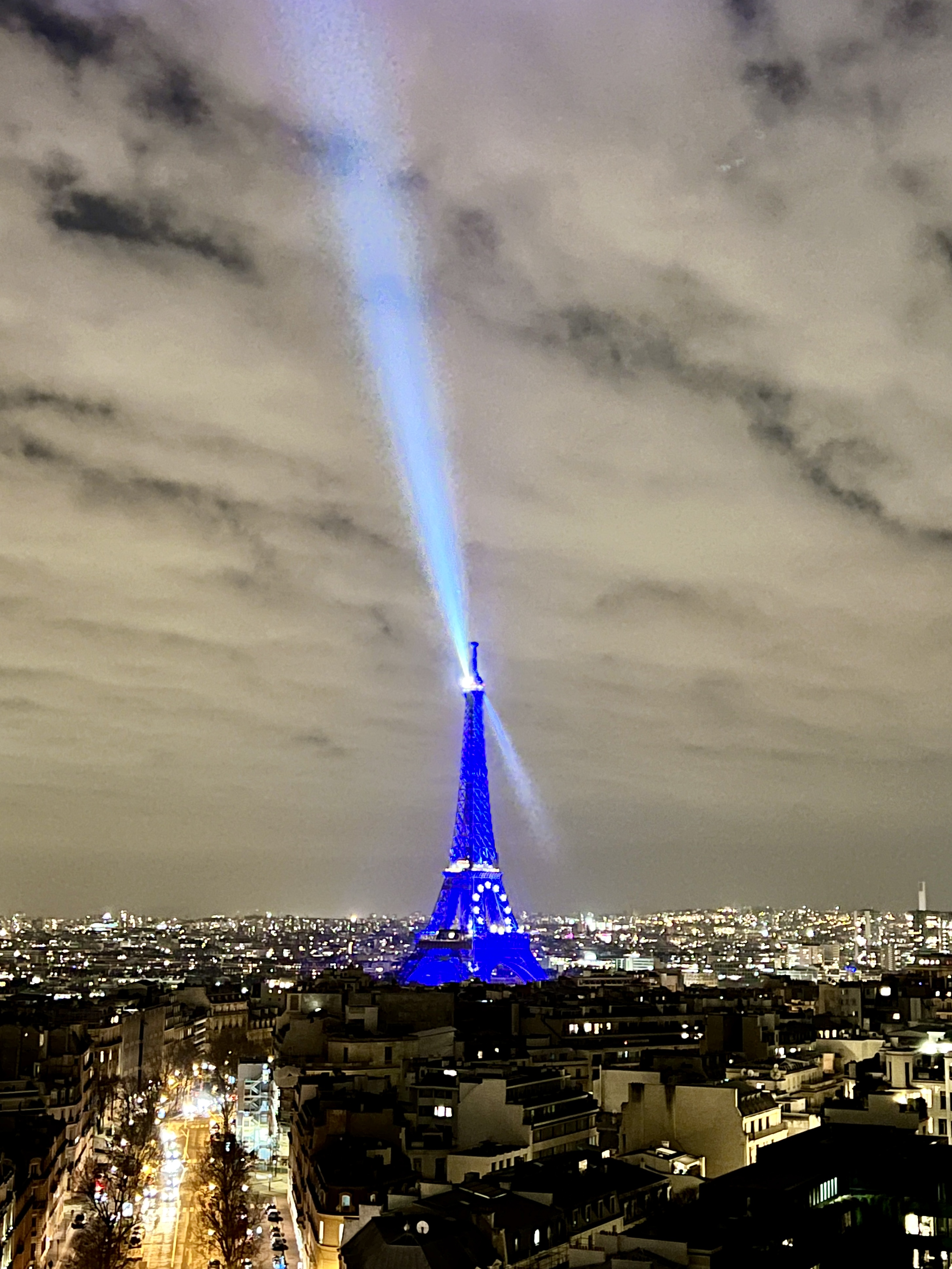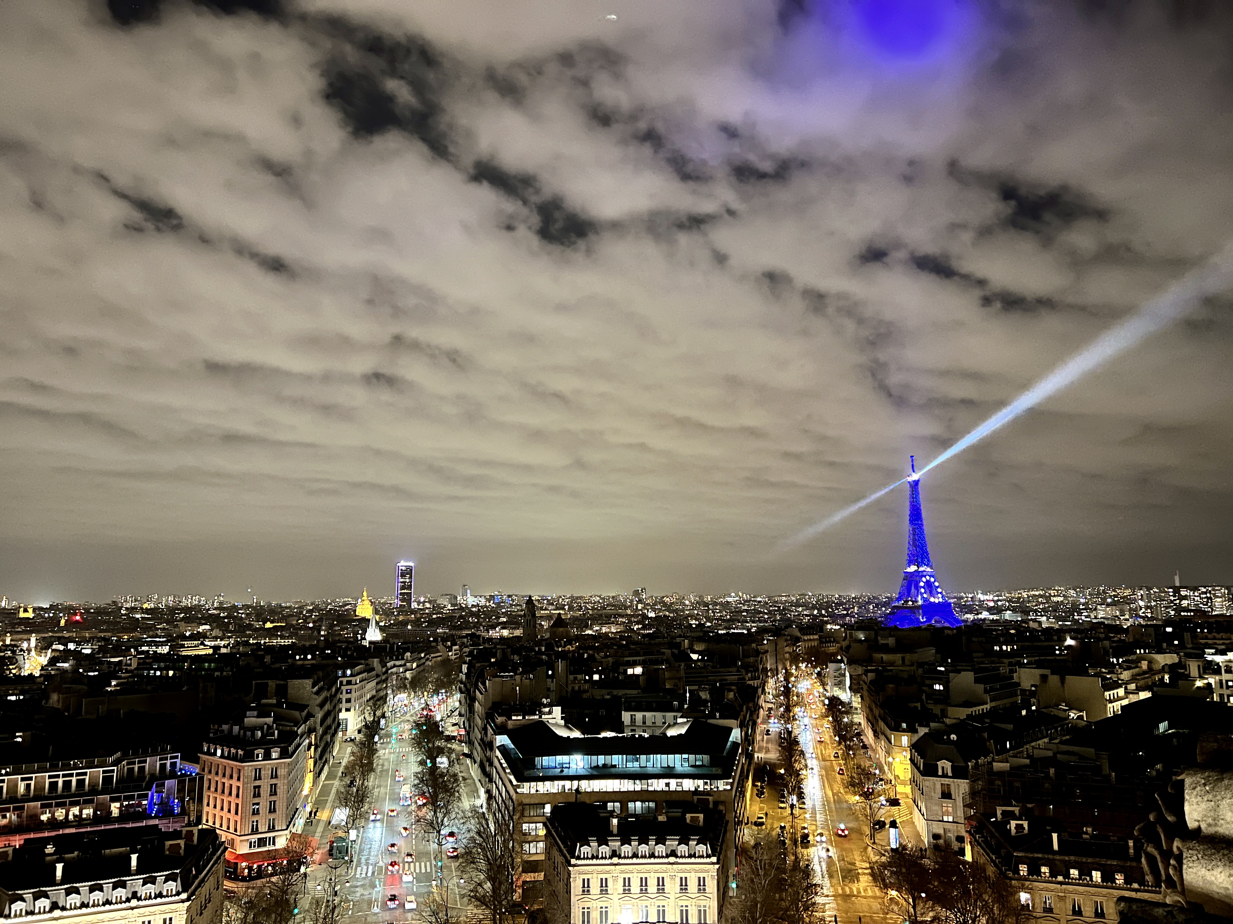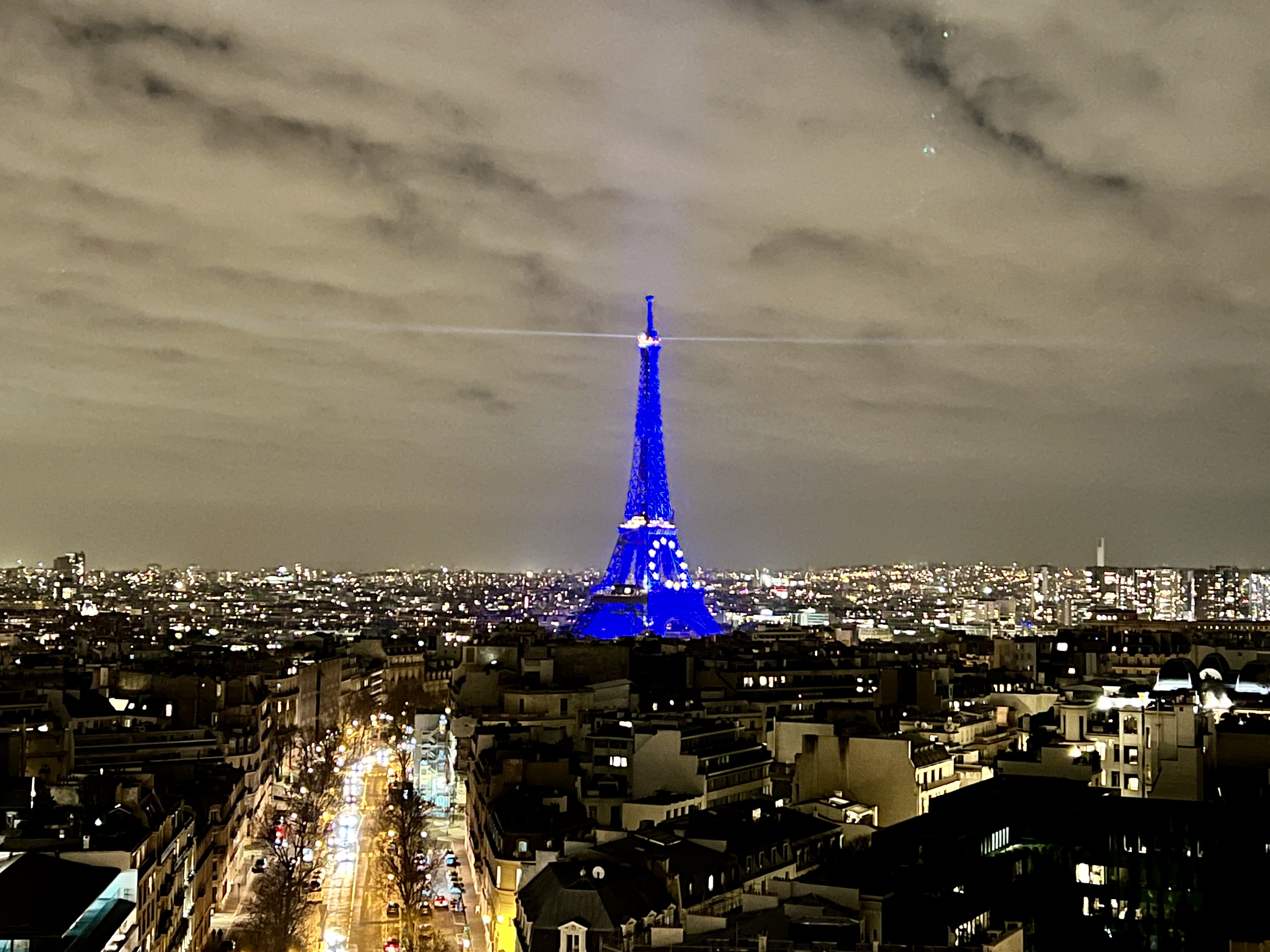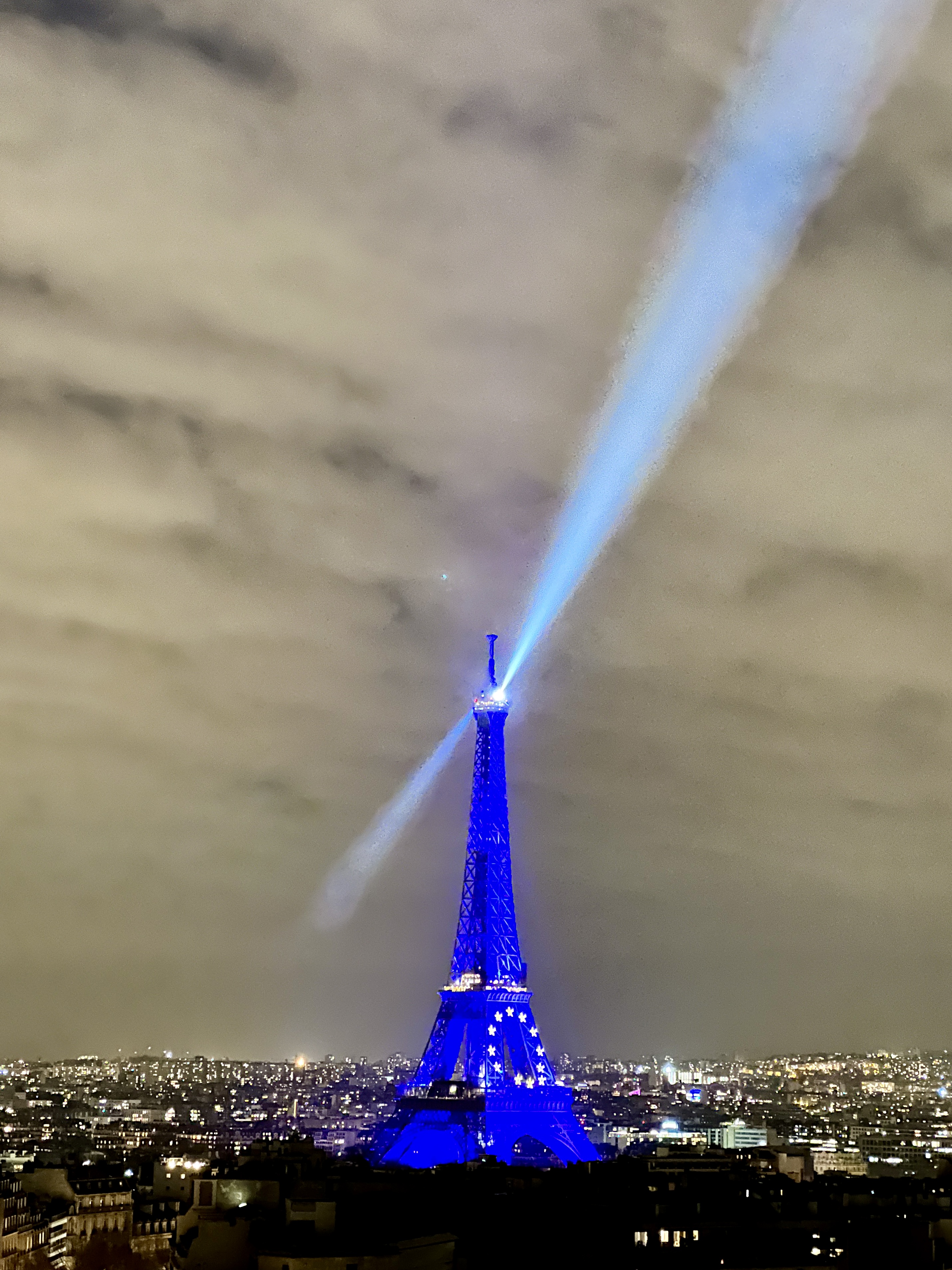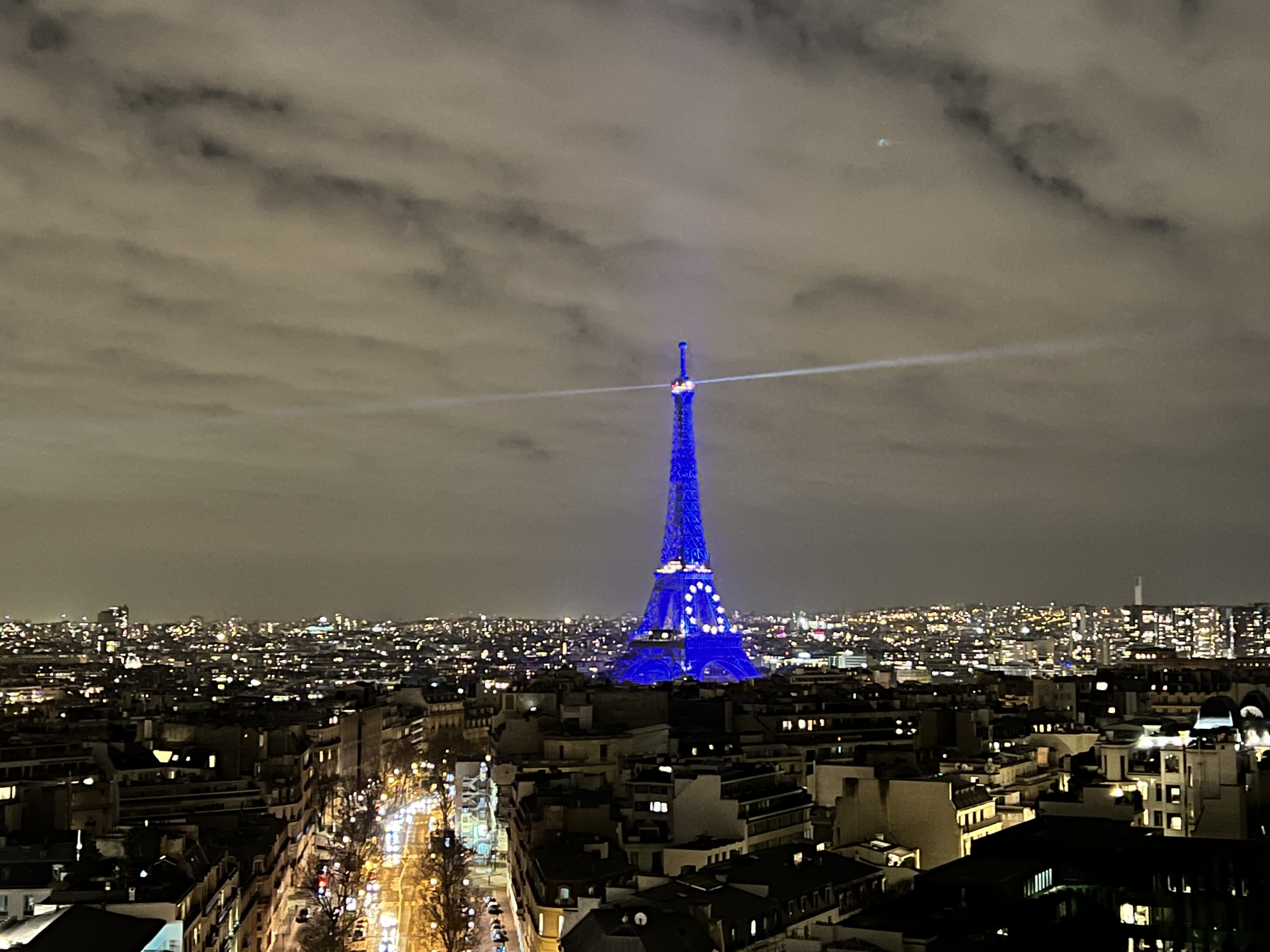 그리고 레이저가 돌아가는 푸른 빛 에펠탑은 개선문 위에서 보는 파리 야경의 정점입니다.