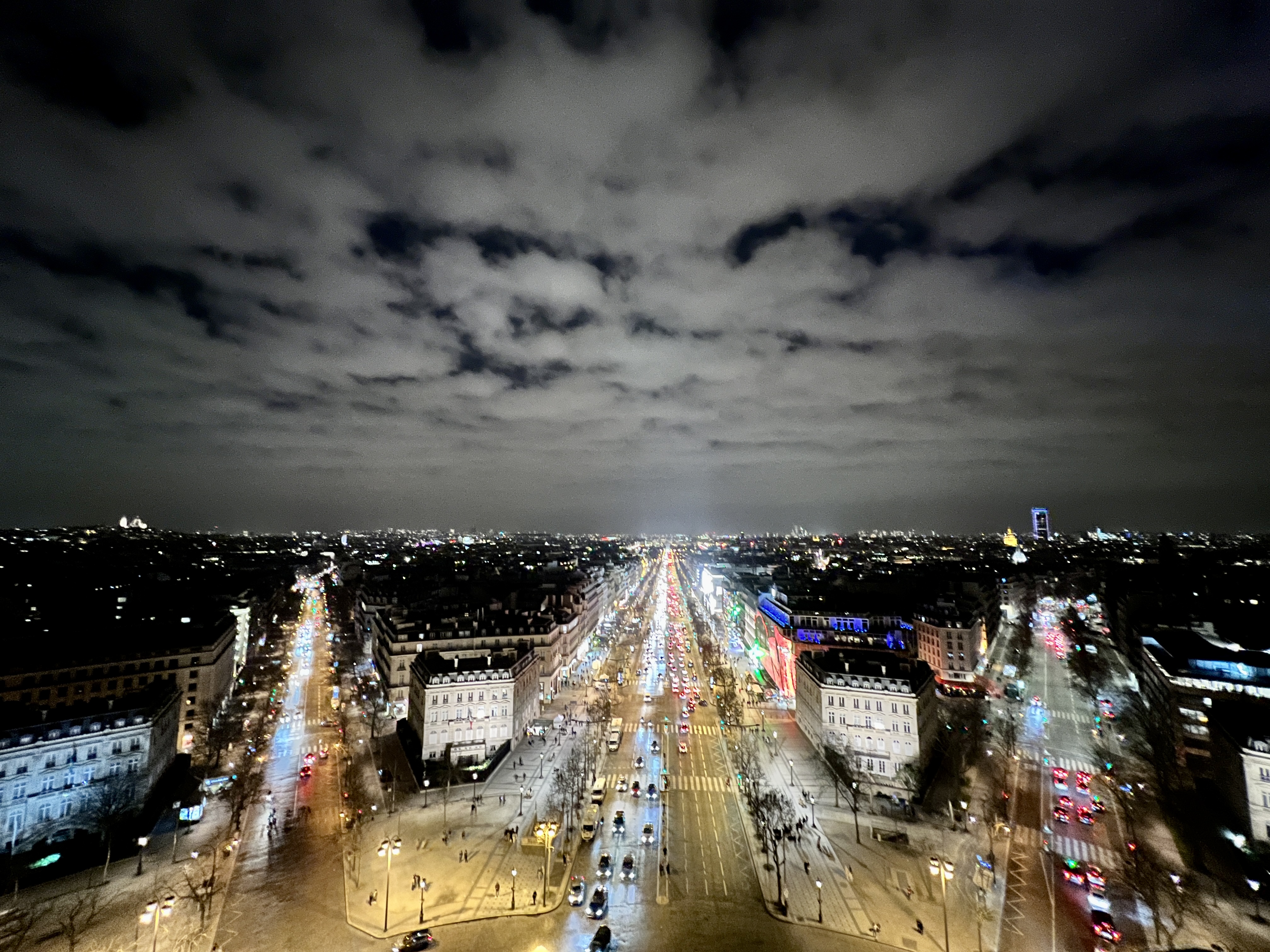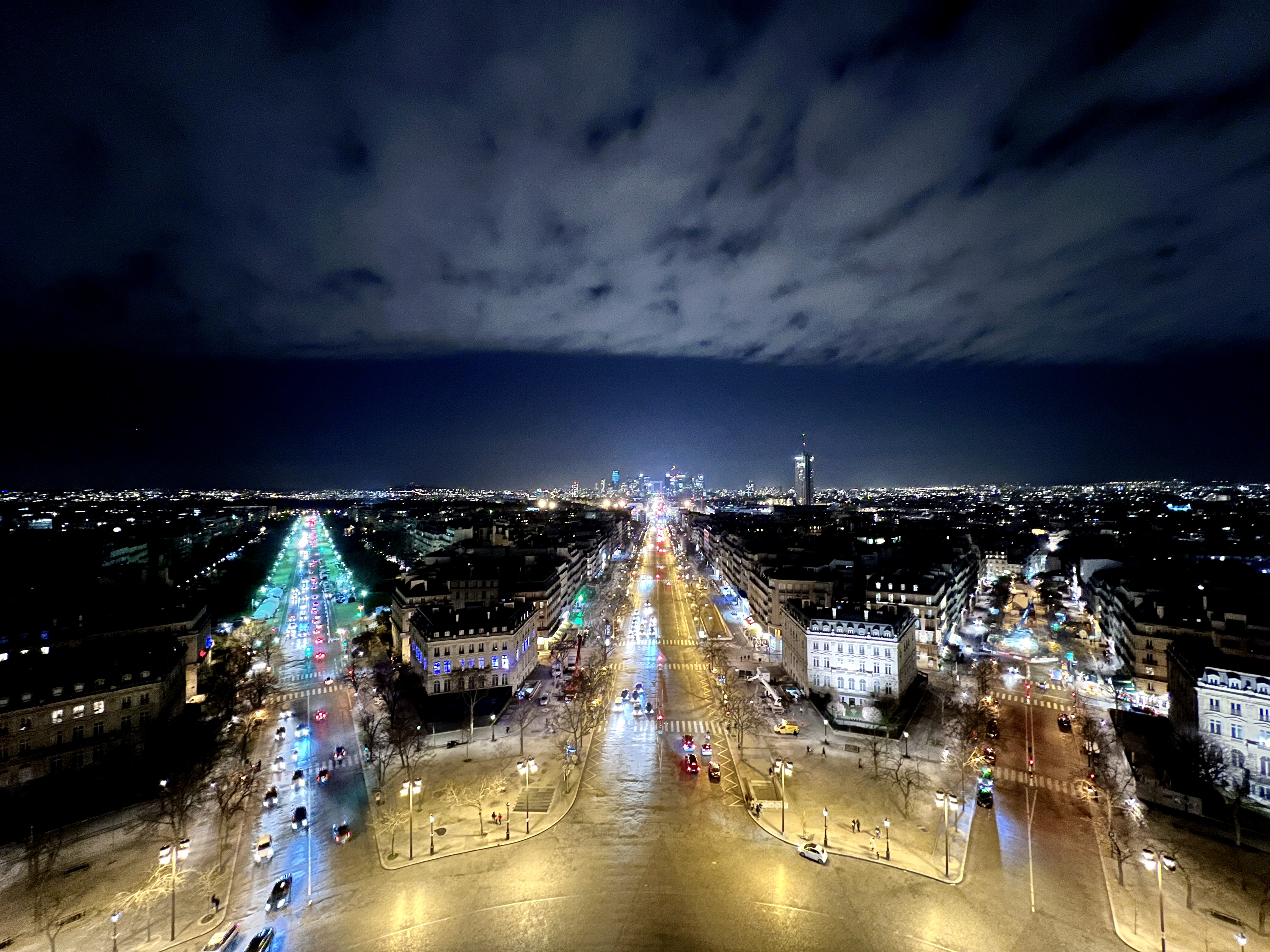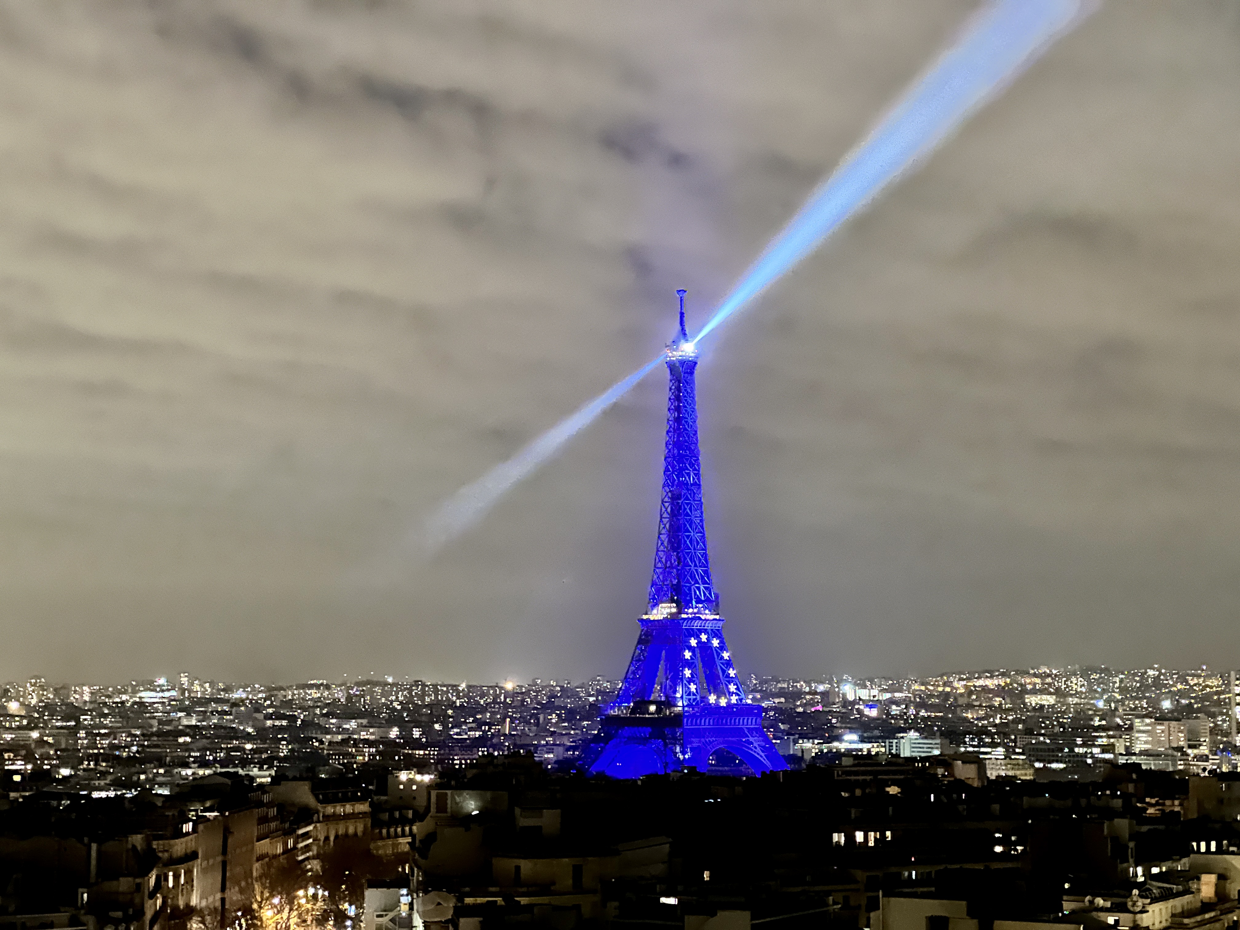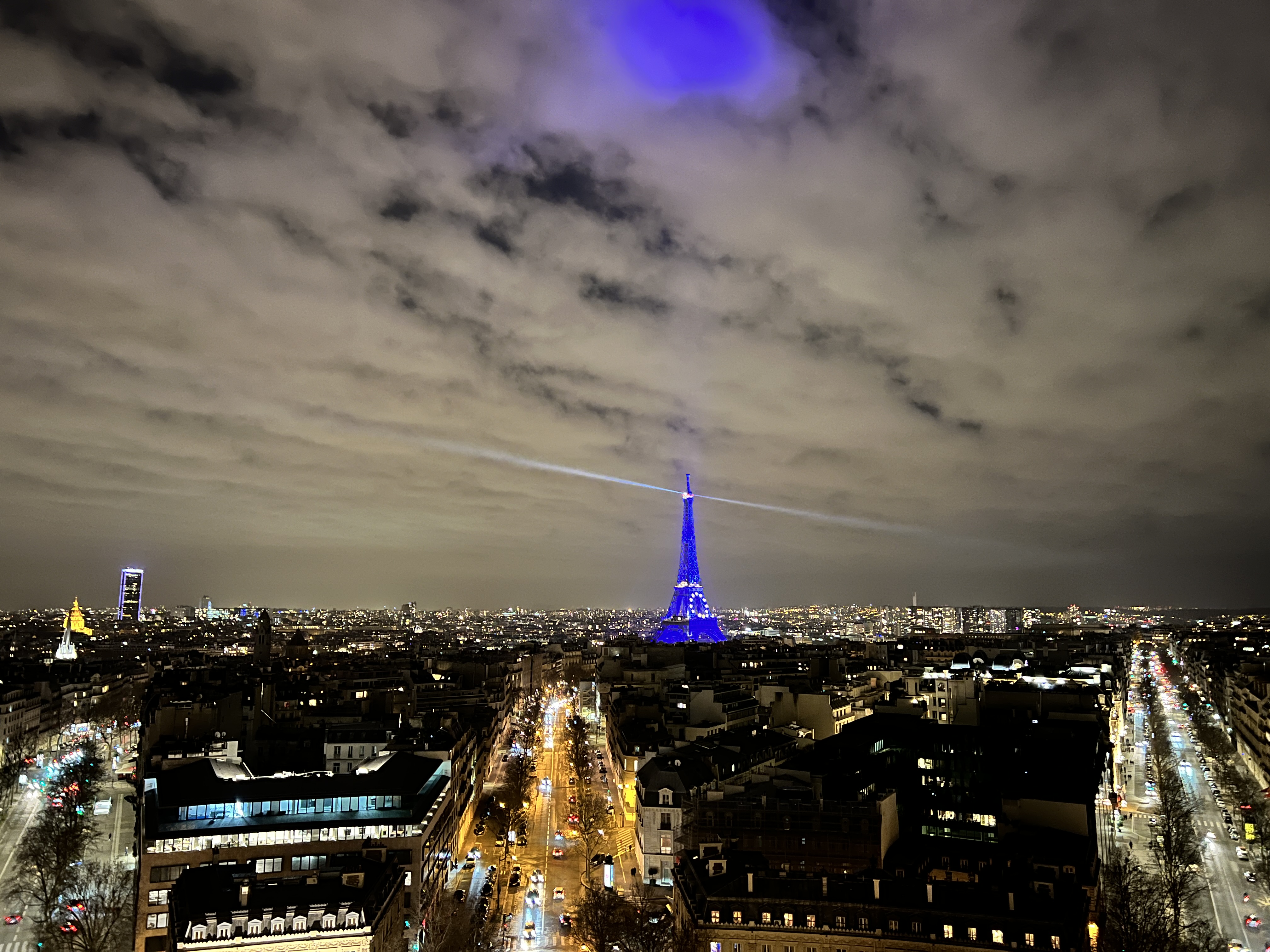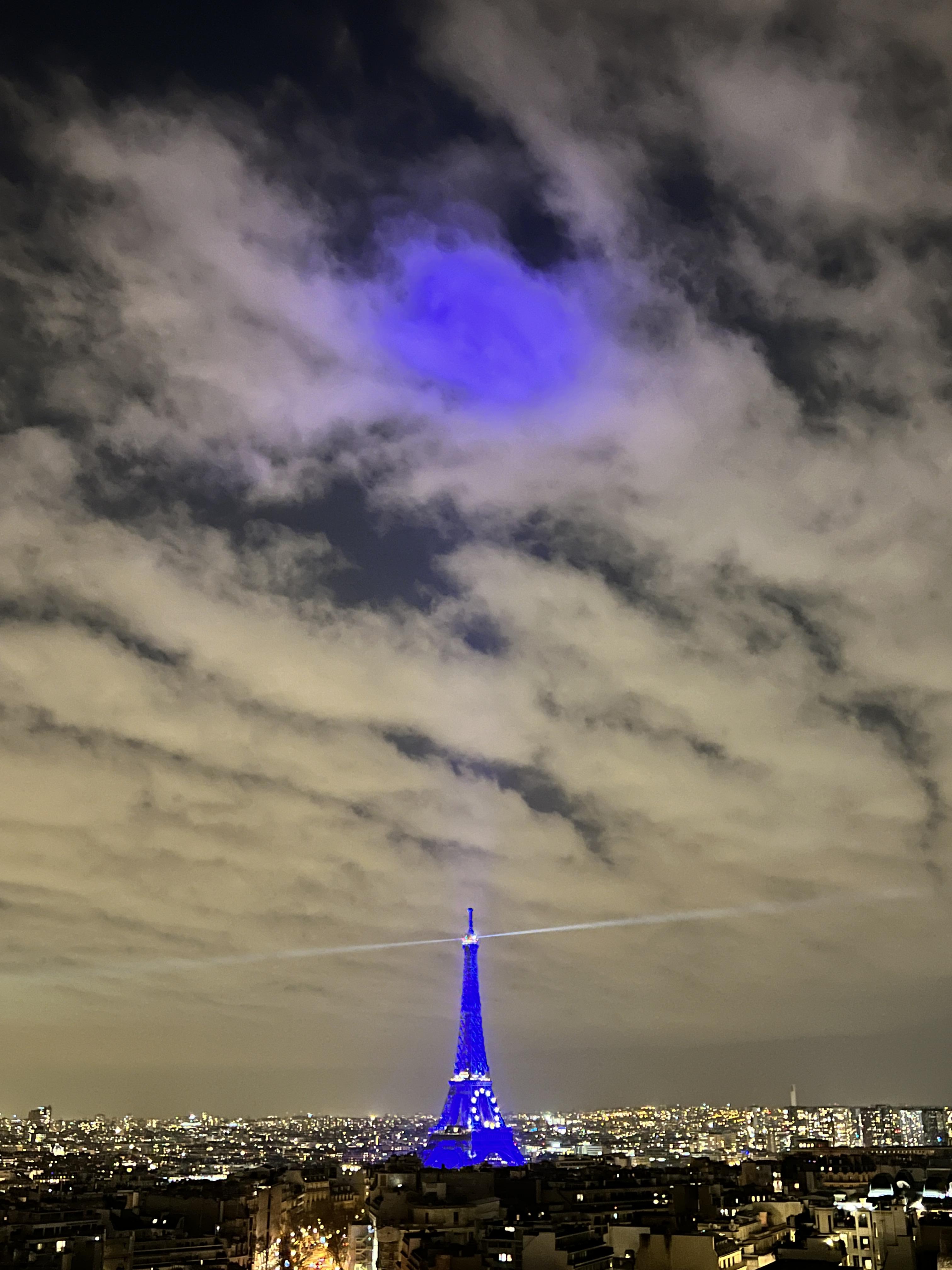 그리고 레이저가 돌아가는 푸른 빛 에펠탑은 개선문 위에서 보는 파리 야경의 정점입니다.