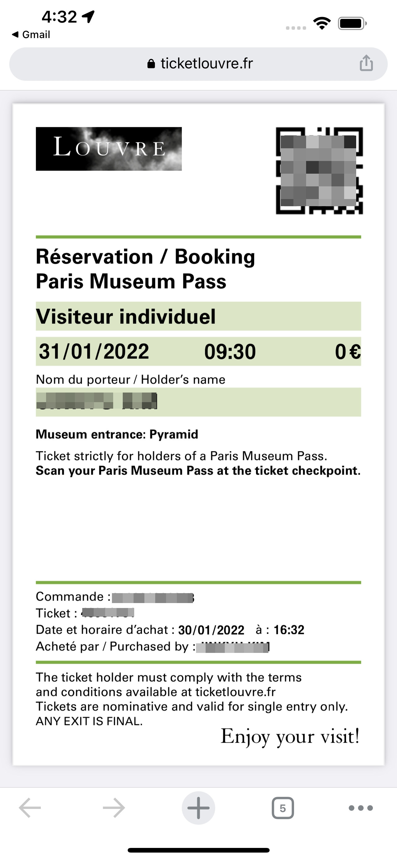 위 사진에서 알 수 있듯이 사실 전날 루브르 박물관 사전예약이 필요 없었습니다.