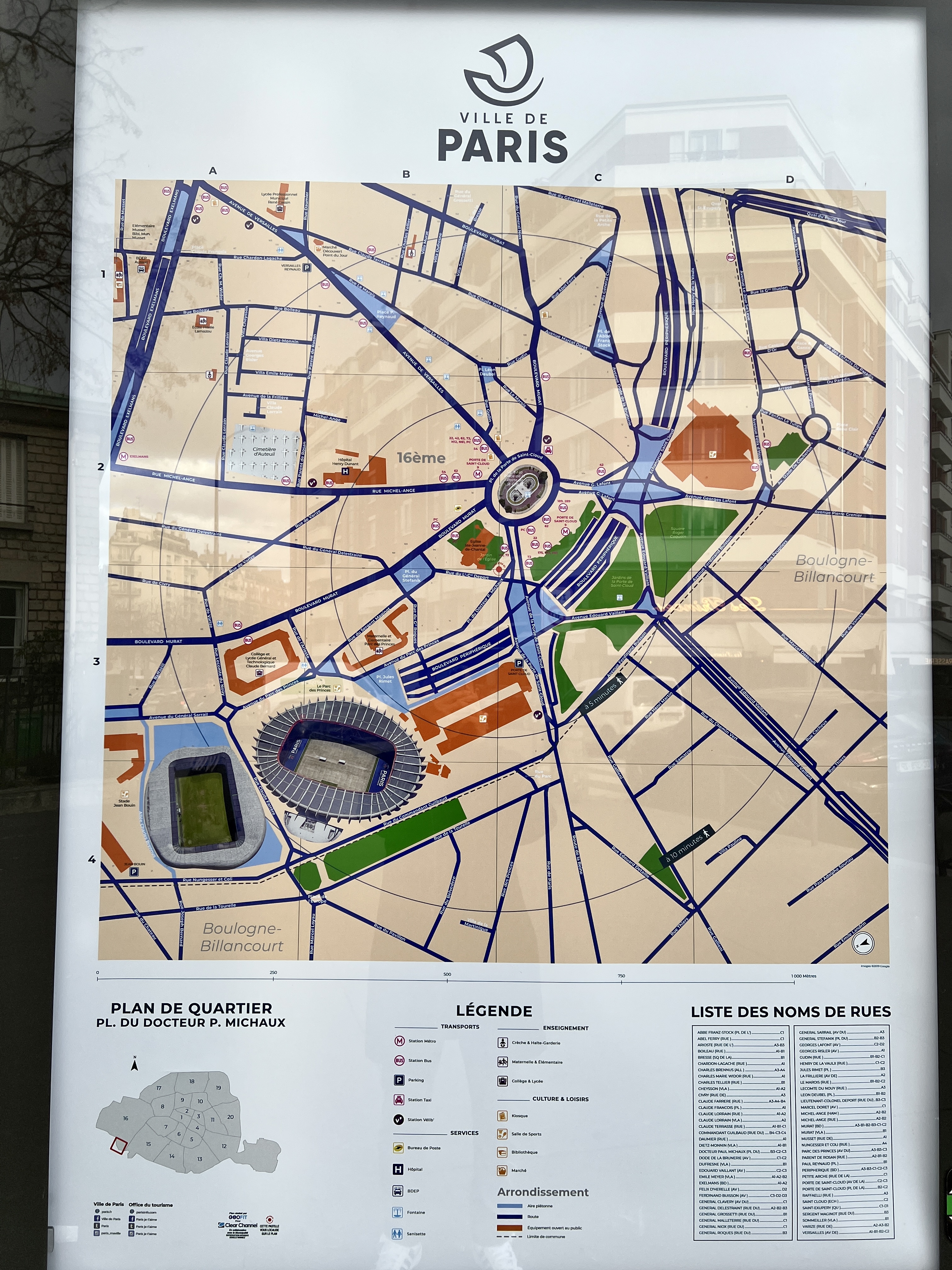 시내에서 9호선을 타고 지하철 9호선 Porte de Saint-Cloud 역에 내리면 멀리 경기장이 보입니다.