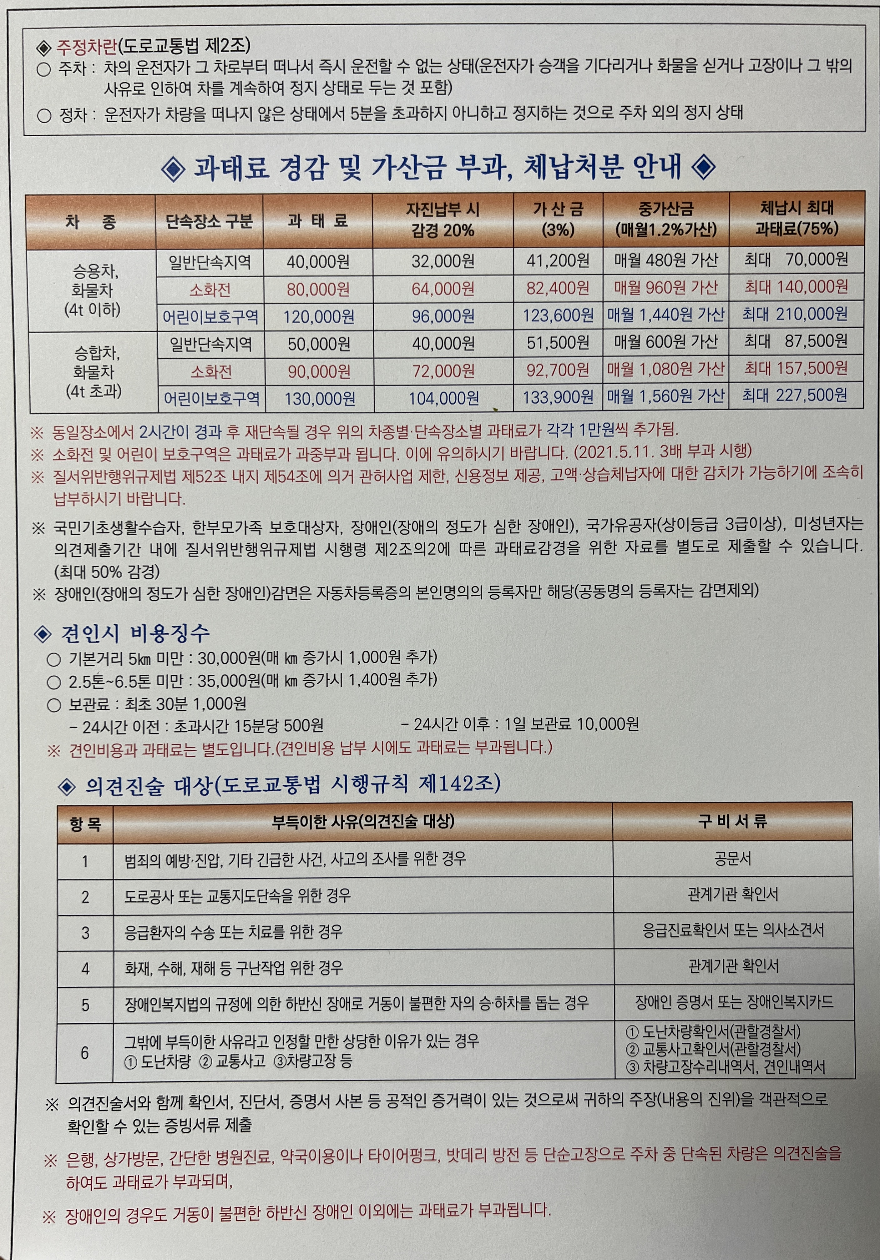 주청차 과태료를 늦게 납부할 경우 가산금3%가 붙고 매월 1.2%가 가산되며