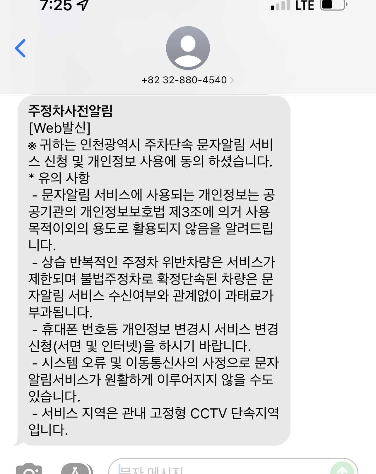 앞으로는 인천광역시 주정차단속 문자알림 서비스를 통해 조금 더 조심하고,