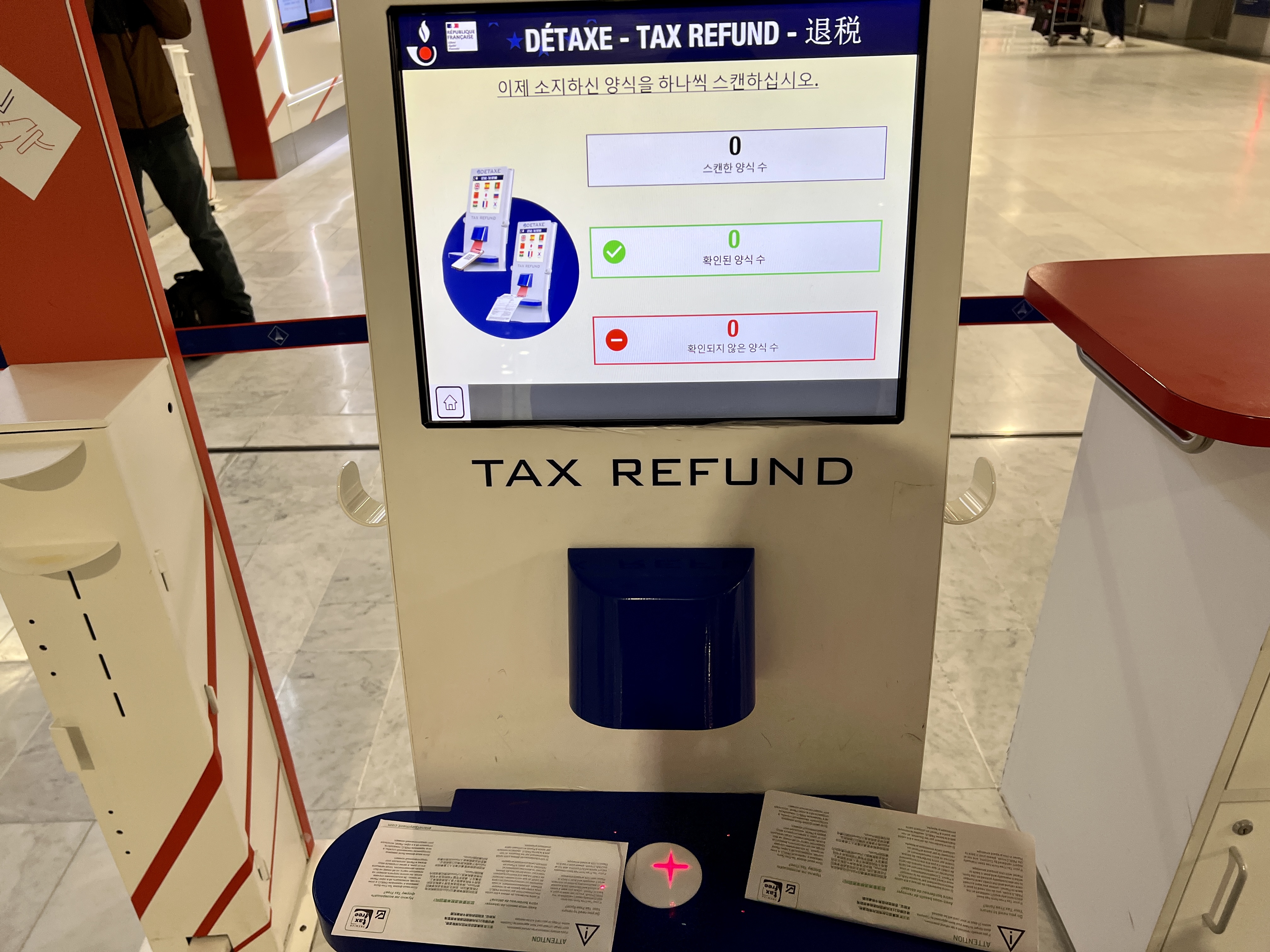 이제는 French custom 사무실이 닫혀져 있어도 Tax refund 기계를 통해 처리할 수 있습니다.