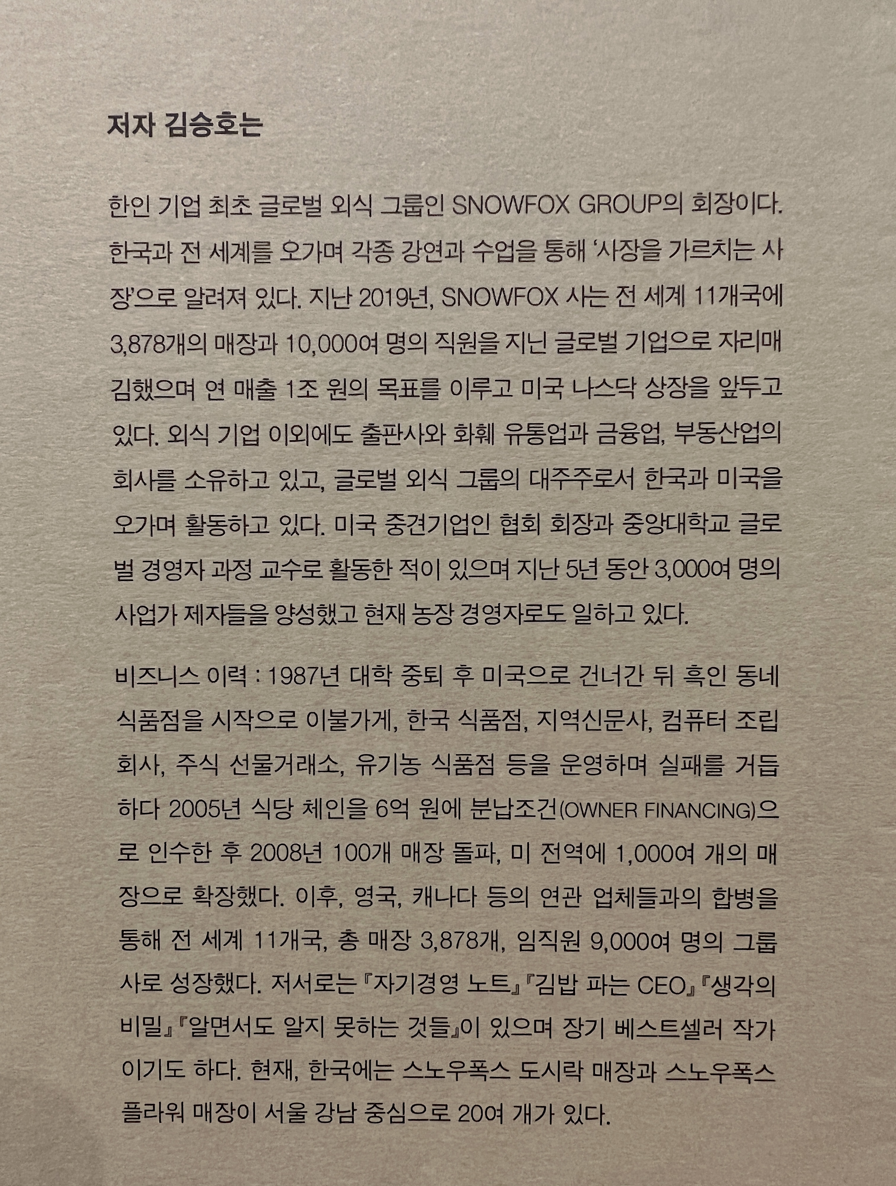 돈의속성 200쇄기념 개정증보판을 쓴 김승호 회장님에 대해서도 더 자세히 알게 되었습니다.