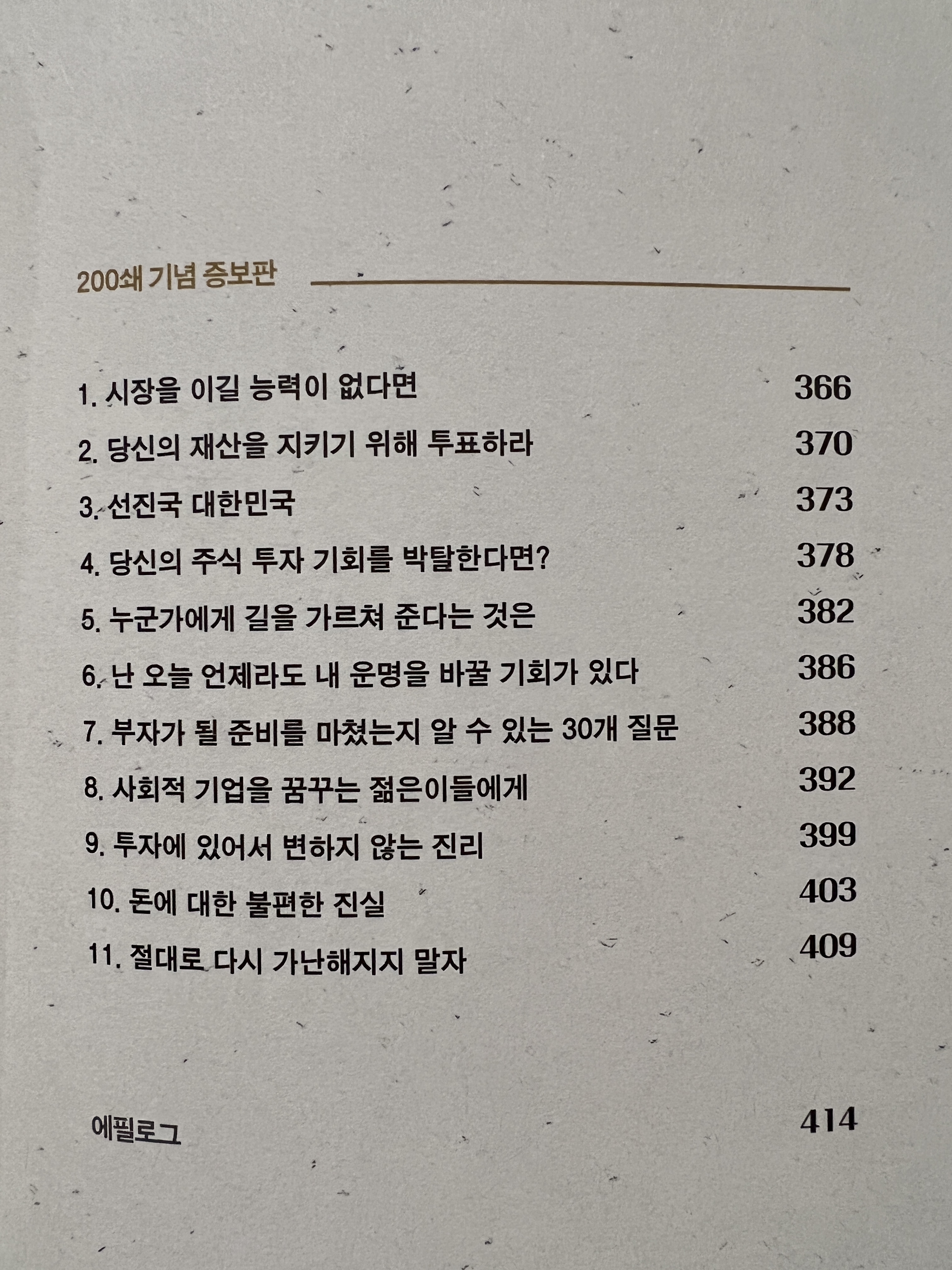 프롤로그와 에필로그 사이에 기존의 소제목 주제들이 내용을 이루고 있어 400페이지나 되지만,