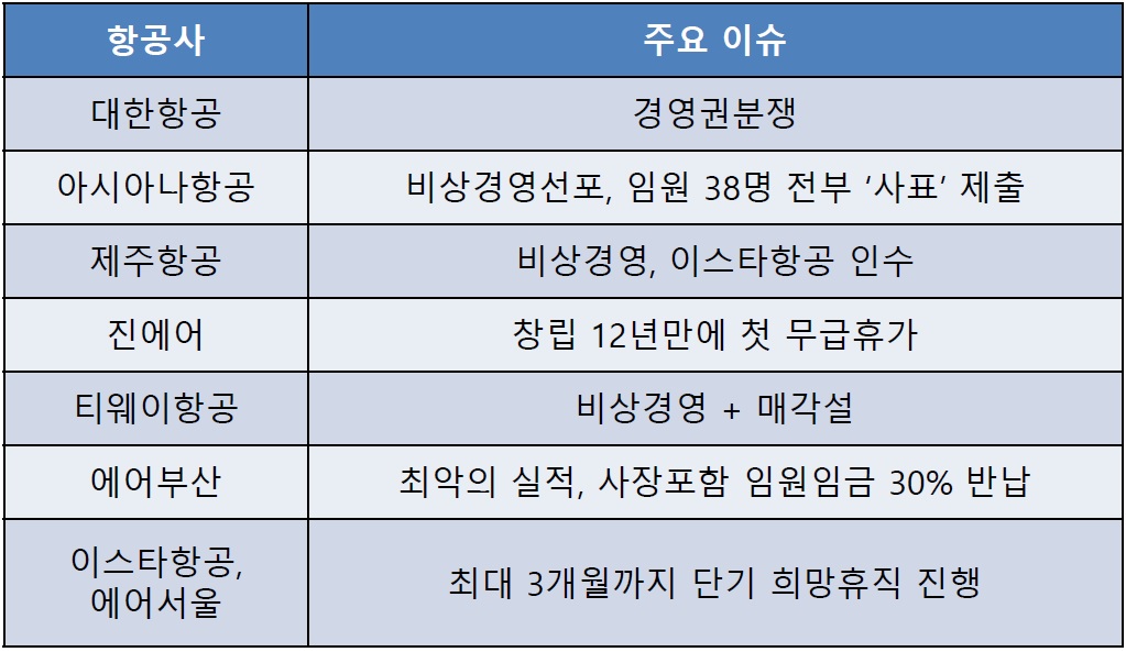 여기에 각자 항공사마다 산재해 있는 현안들이 많아 Rough 하게 하나씩 둘러보고자 한다.