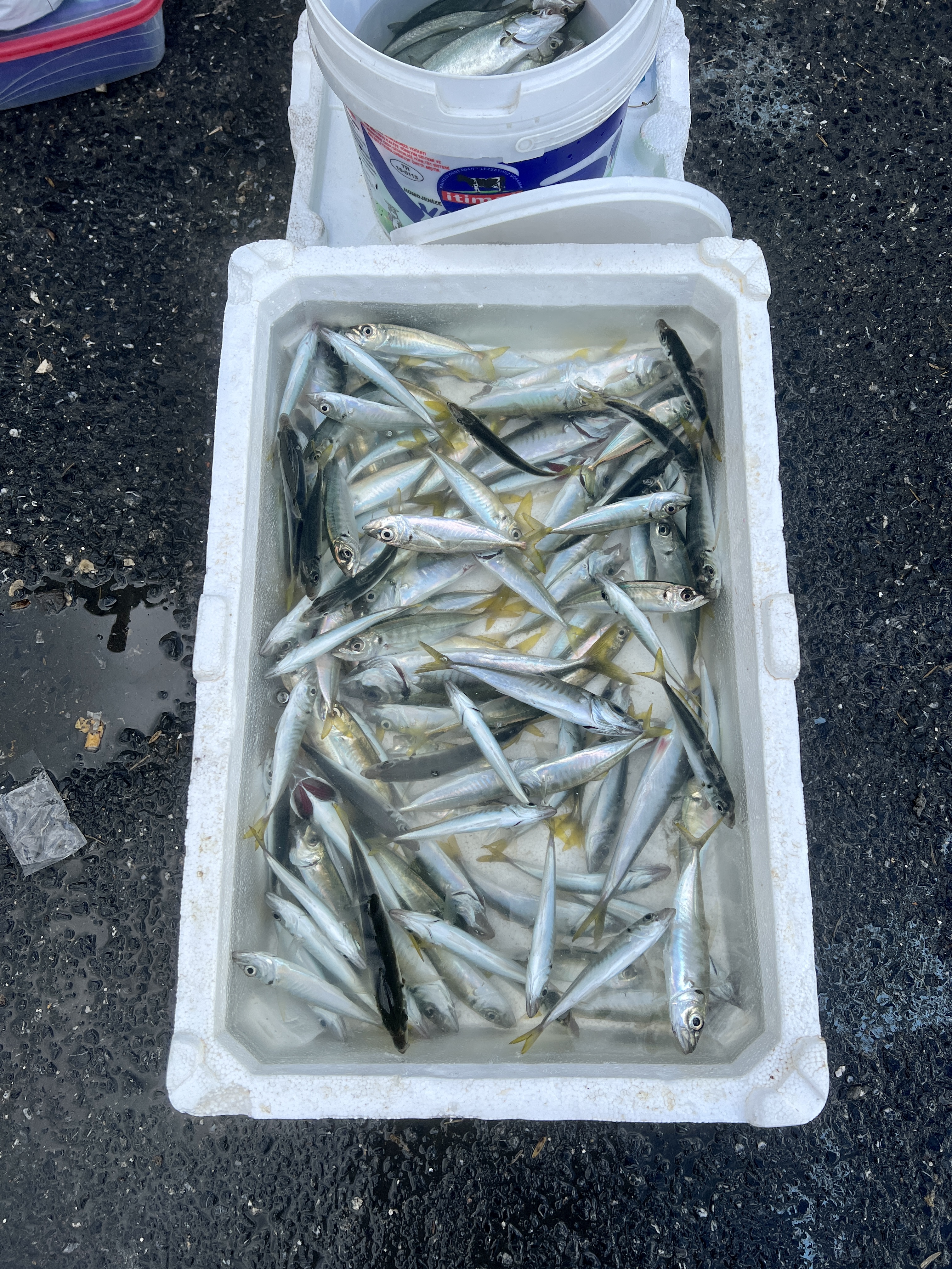 다리 아래에는 낚시로 잡은 해산물을 파는 어시장과 해산물 레스토랑이 있습니다.