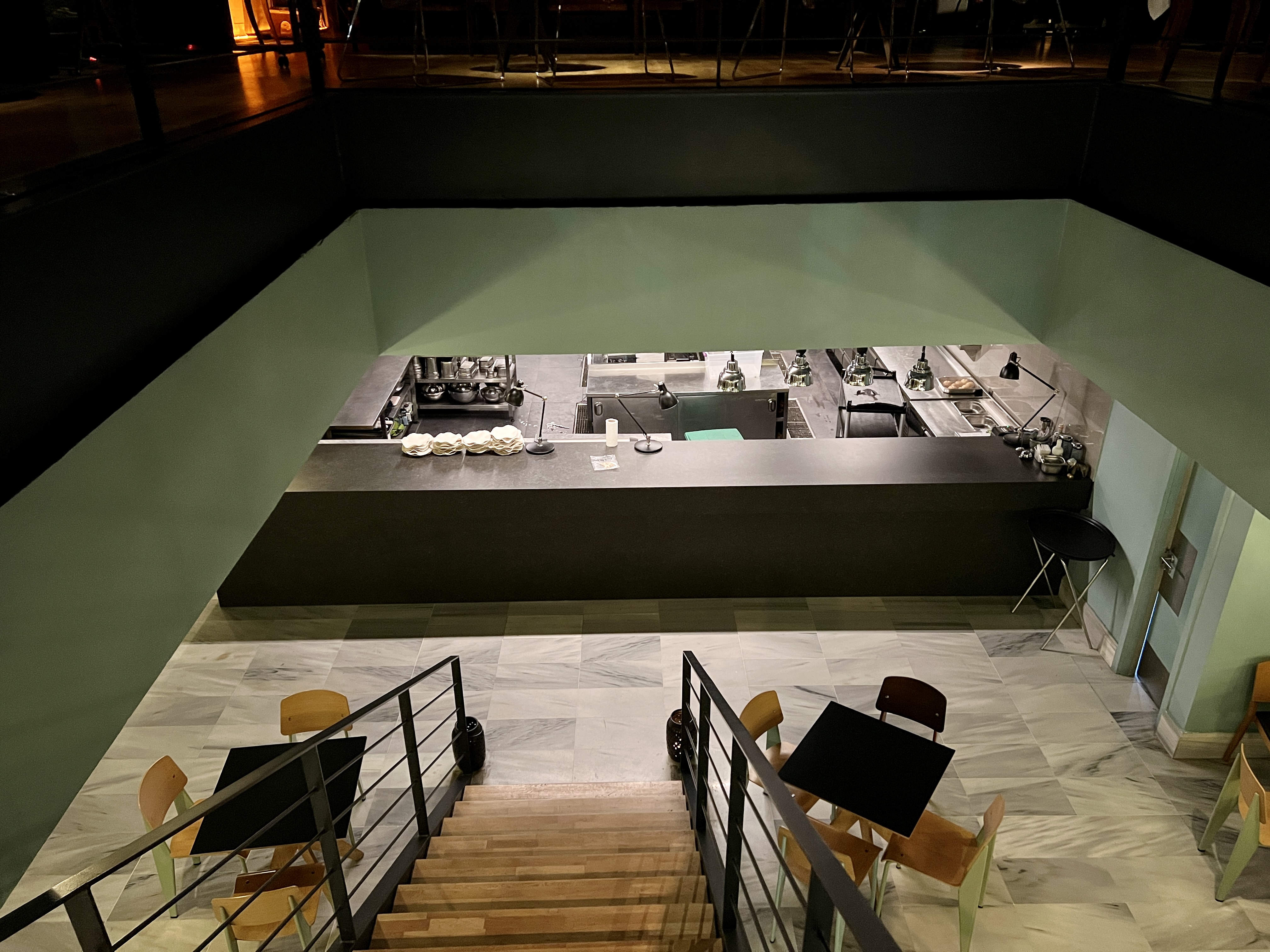 오픈키친 방식으로 식당은 계단을 통해 위로 올라가면 매우 멋진 뷰와 함께