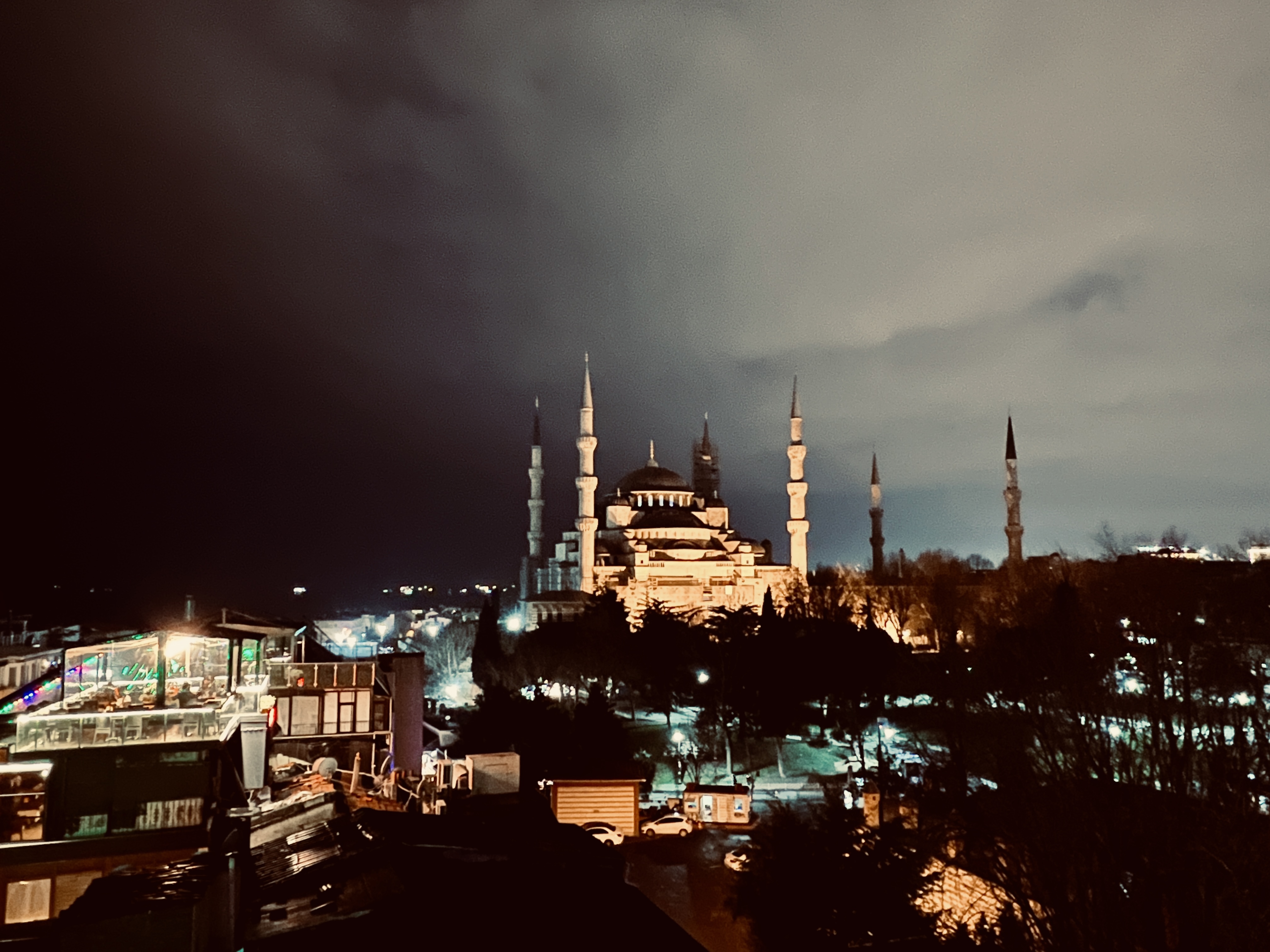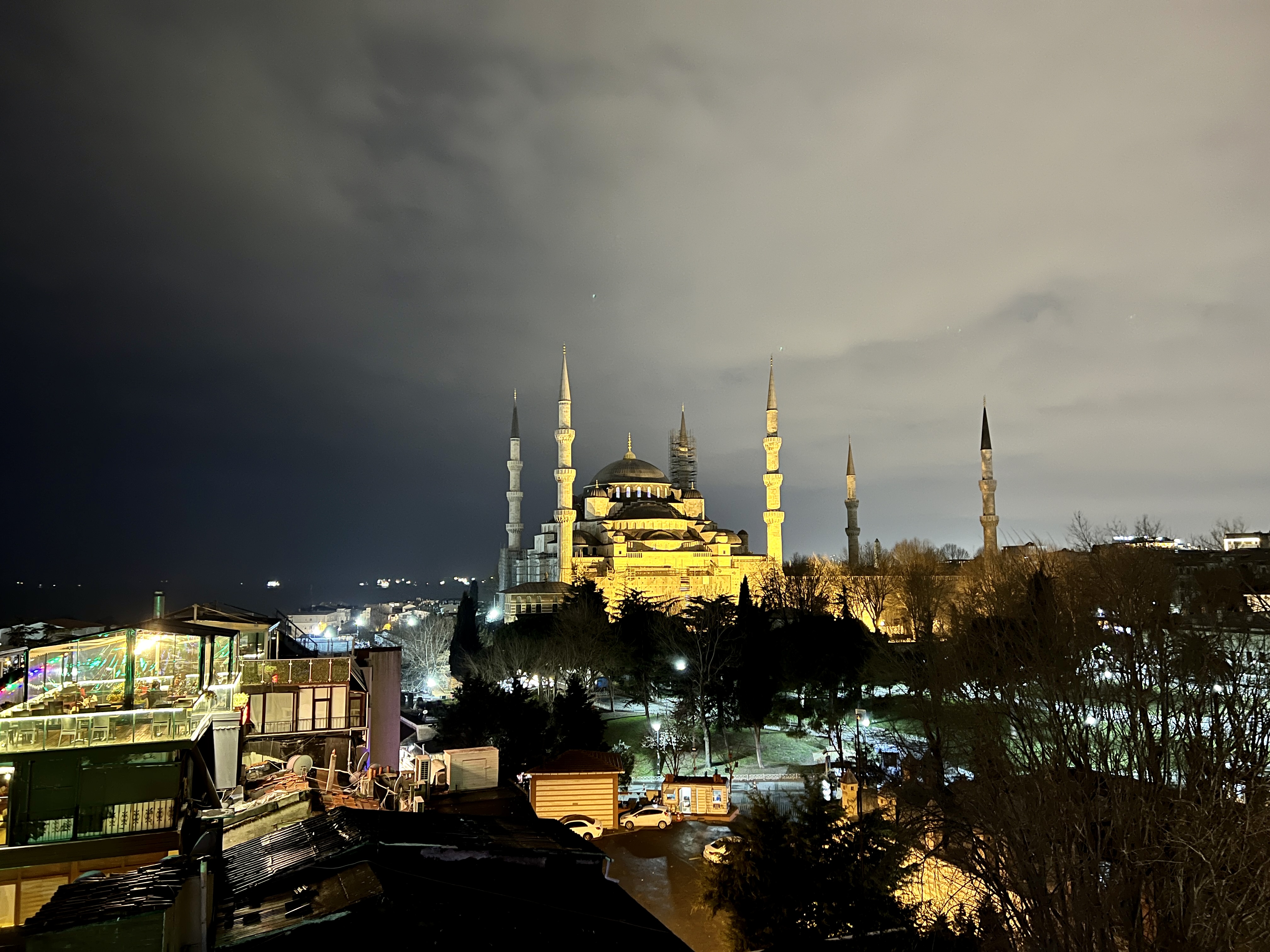 블루모스크와 아야소피아 성당에 불이 켜지면 너무 아름다운 야경을 보여주는