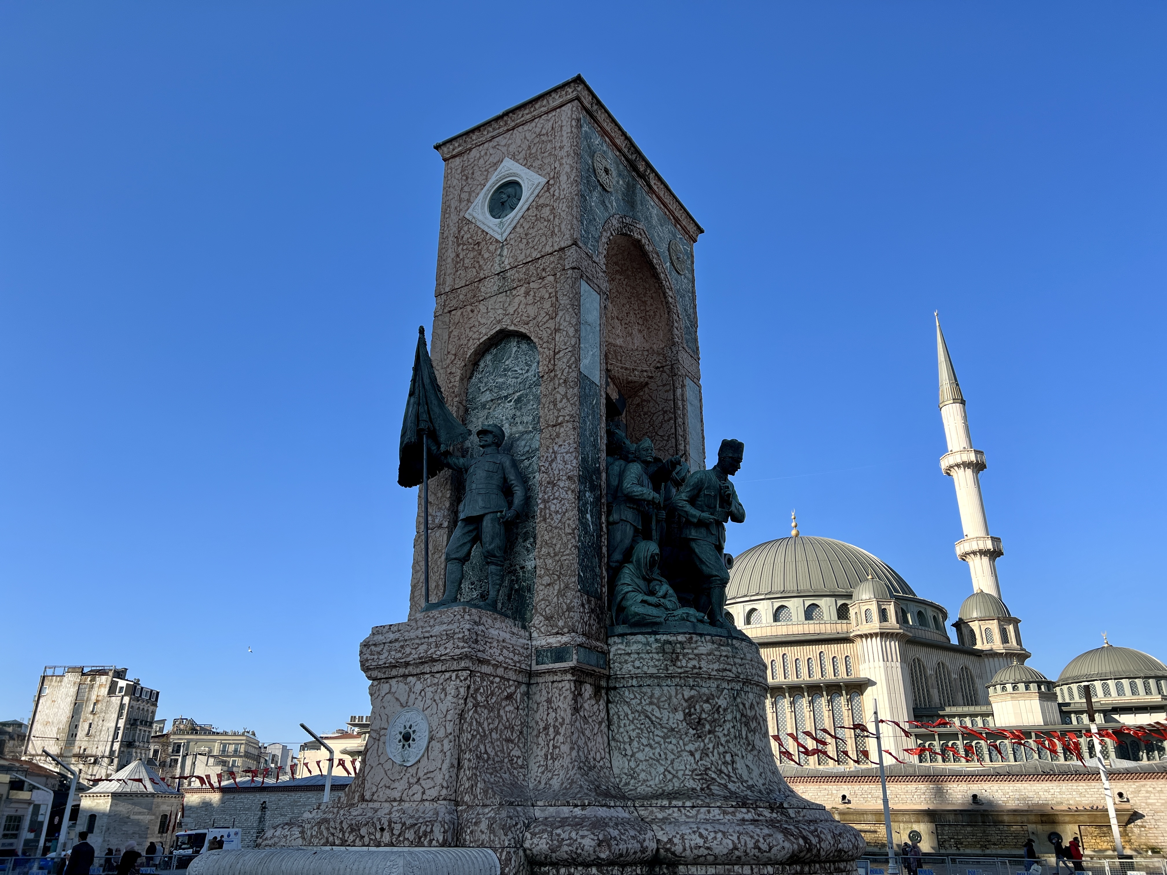 이스탄불의 정치 문화적 신념들이 표출되는 곳이기도 합니다. 광장 중앙에 있는 11m 높이의 공화국 기념비는