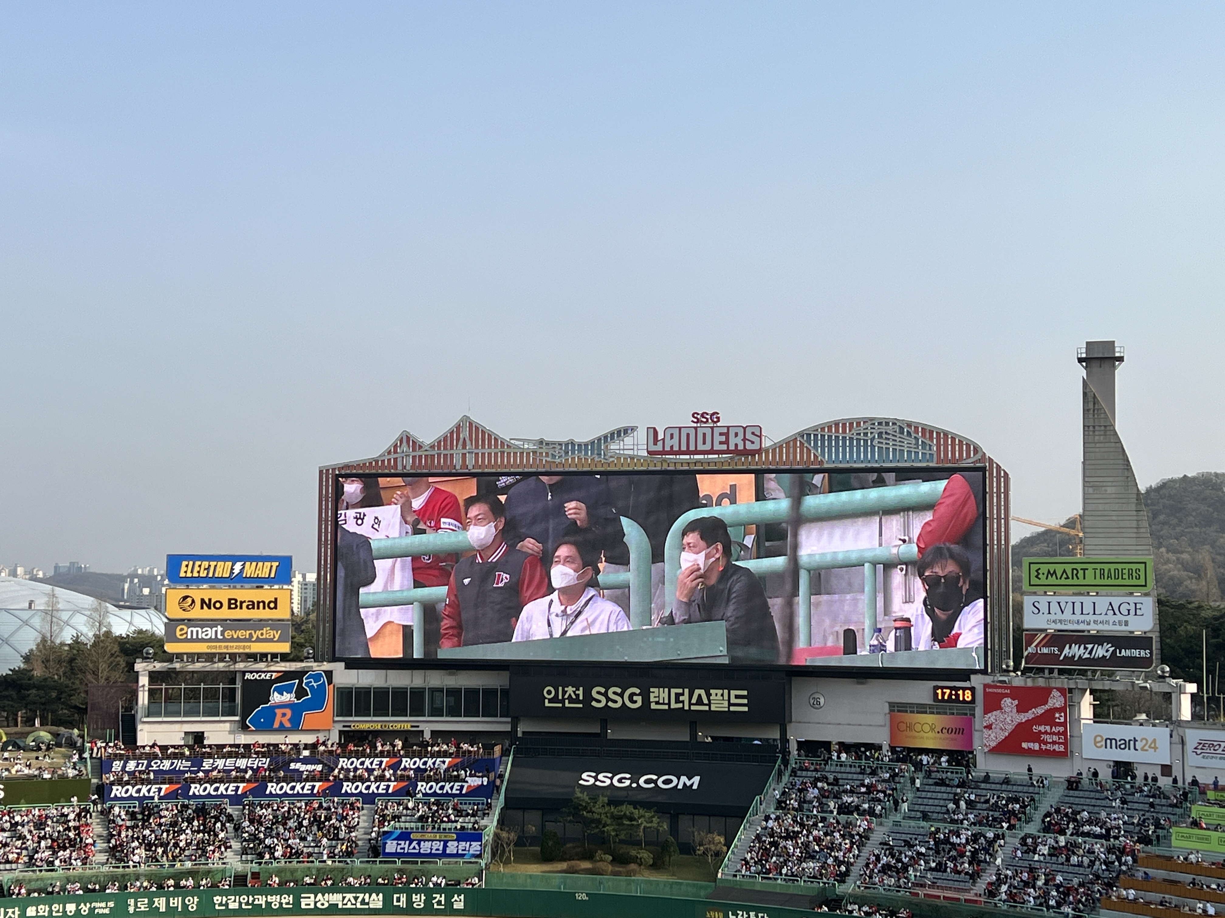 이날 경기에는 구단주 일명 '용진이형'으로 통하는 정용진부회장과 허구연 KBO총재도 참석하여