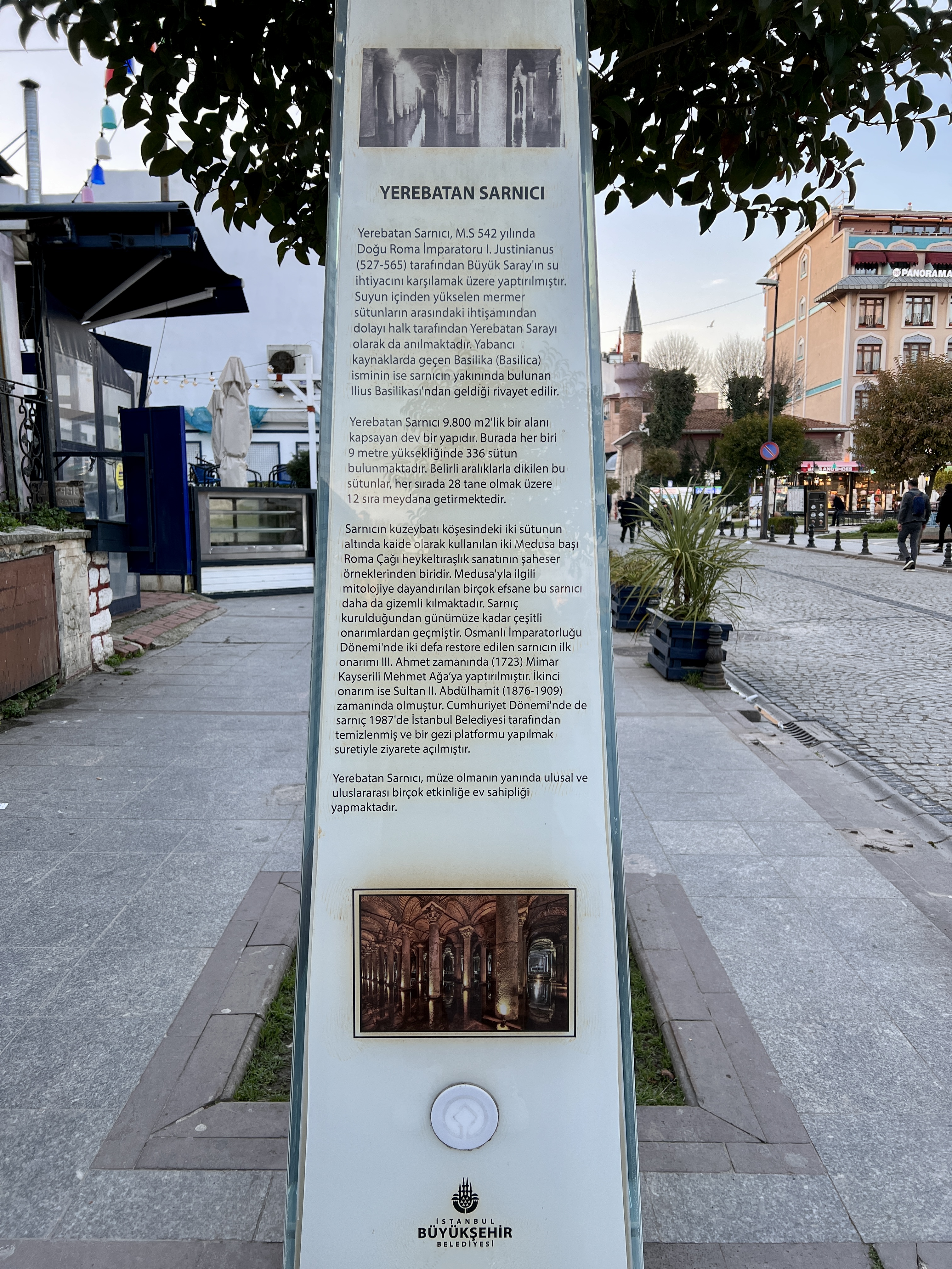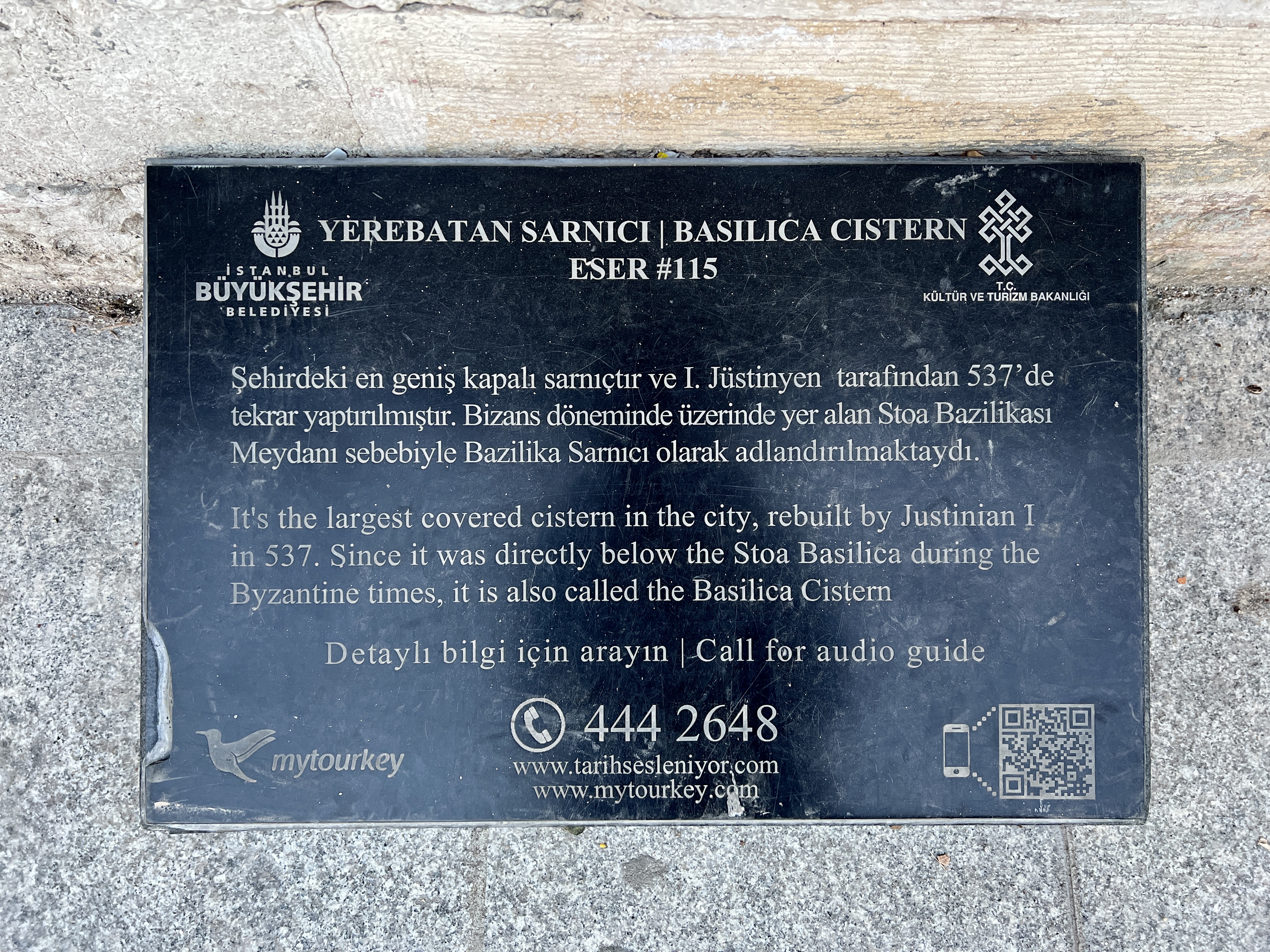6세기 경 유스티니아누스 황제 때 완공된 지하의 물 저장소 역할을 하는 곳입니다.
