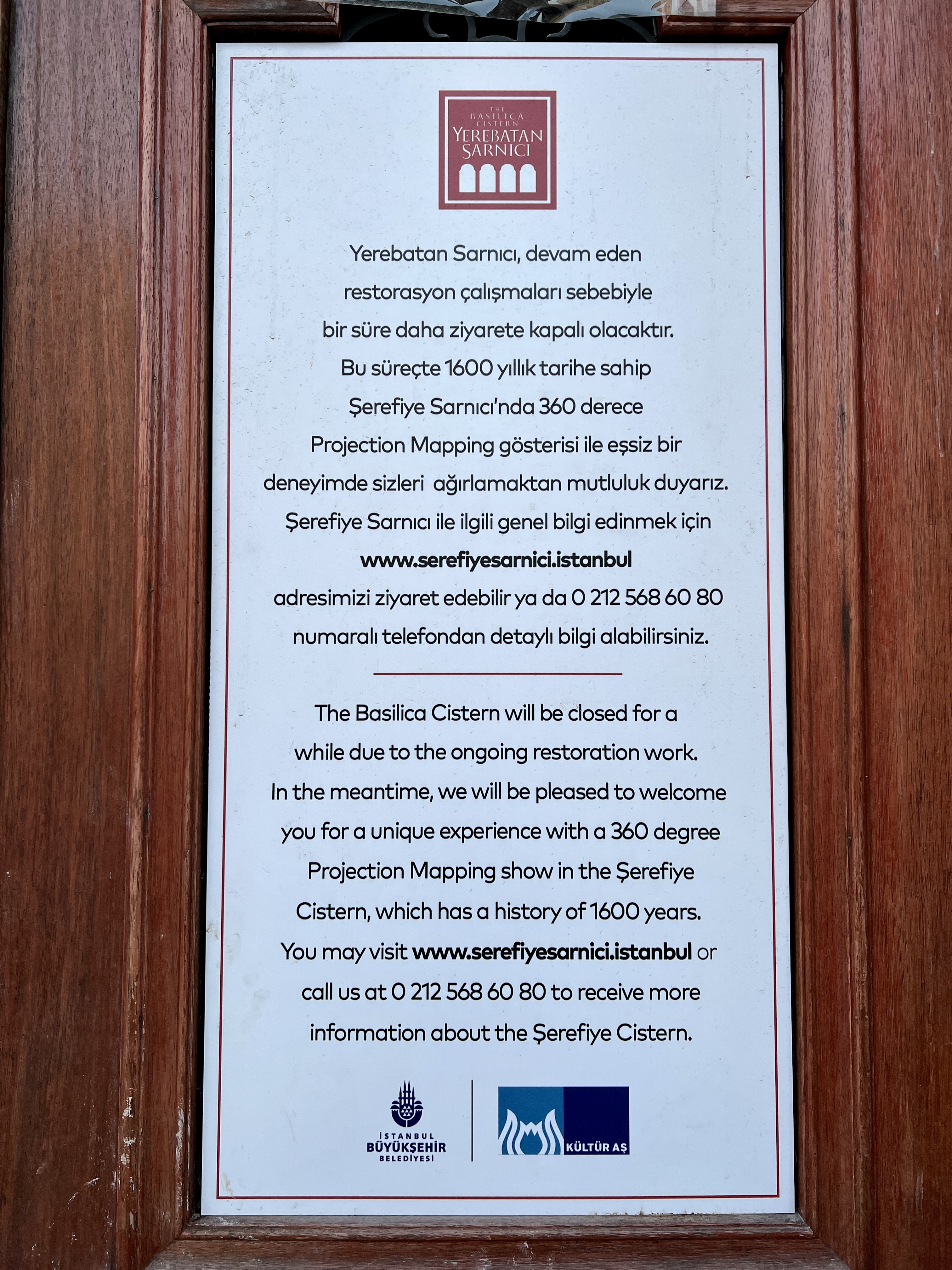 또 한번 다시 보고 싶었으나 지금 예레바탄 지하 저수조는 복원 공사중으로 잠시 클로징 되어있습니다.
