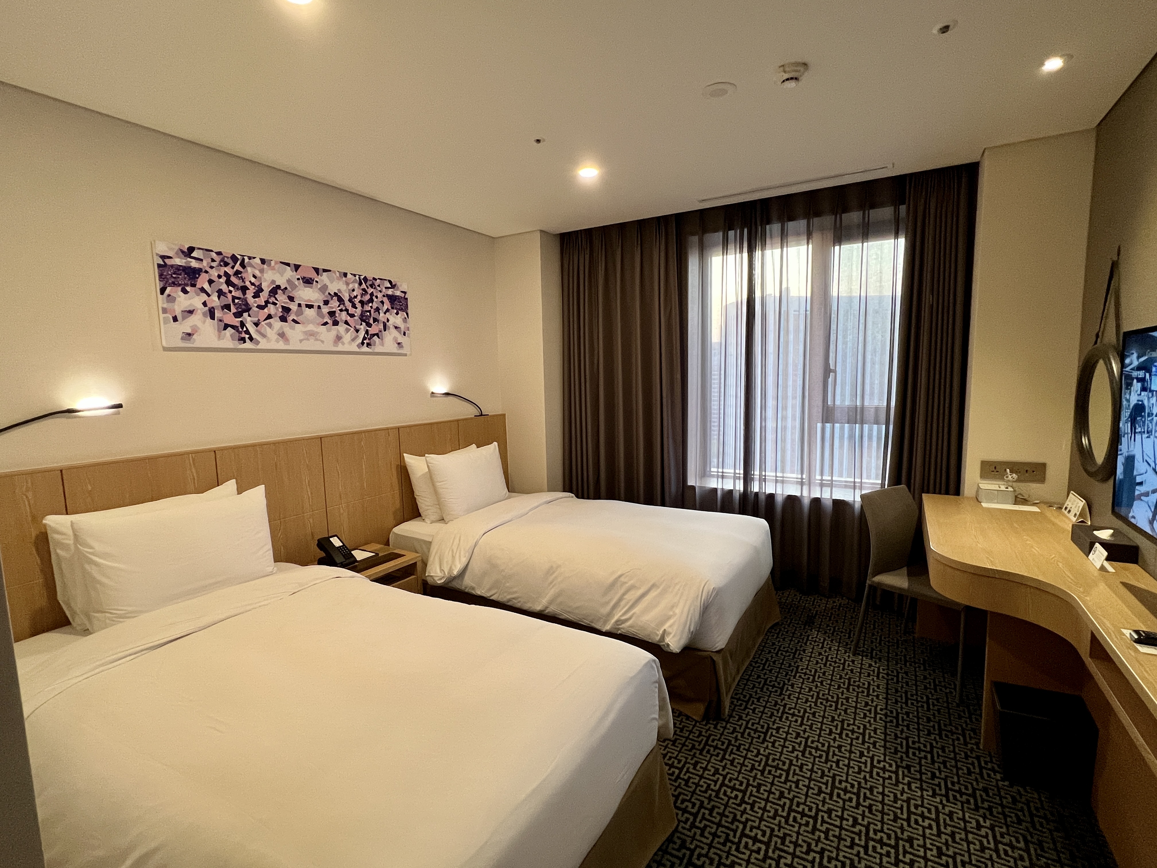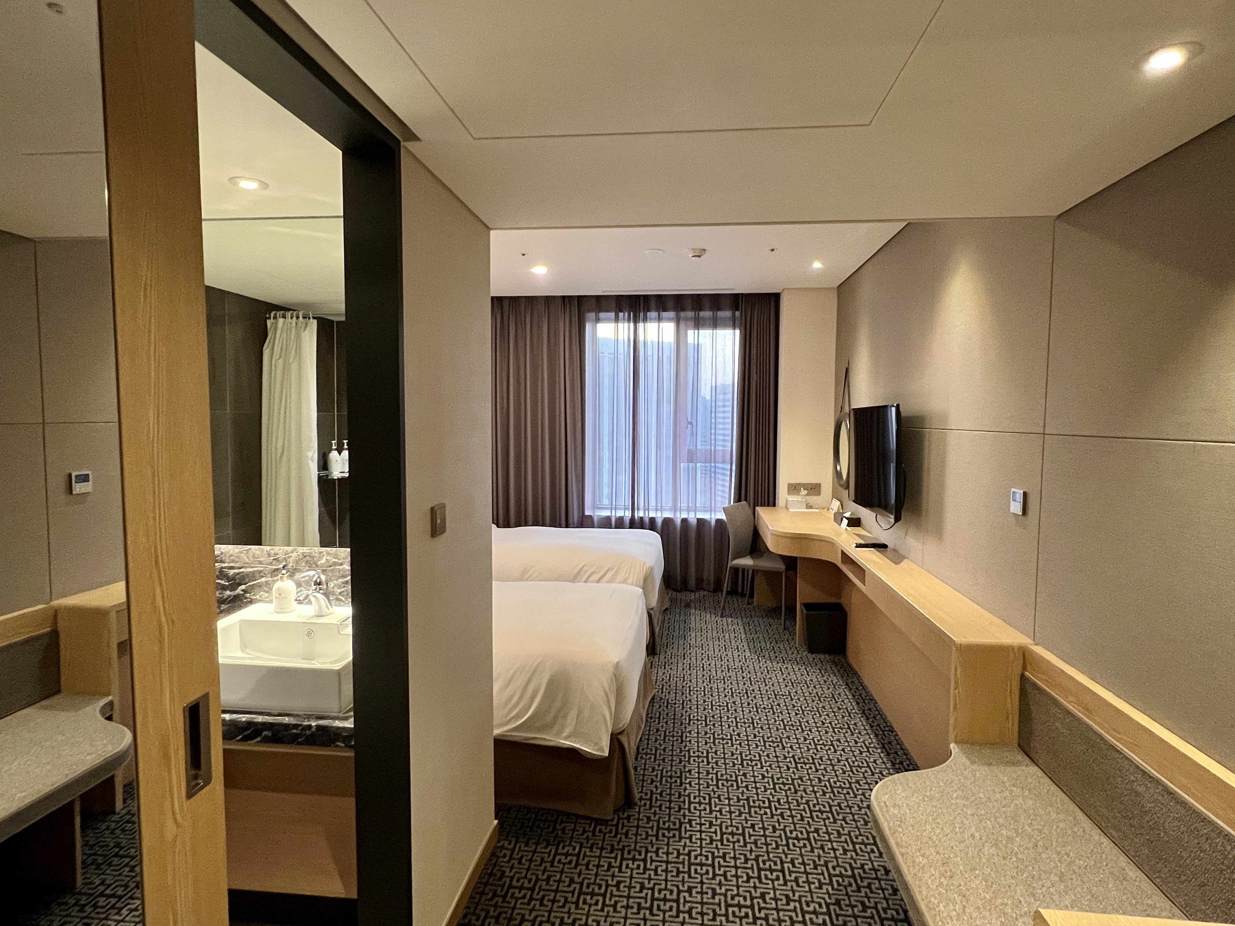 저는 19층의 1910호 스탠다드 트윈룸 객실에 투숙하여 1박을 편하게 지냈습니다.