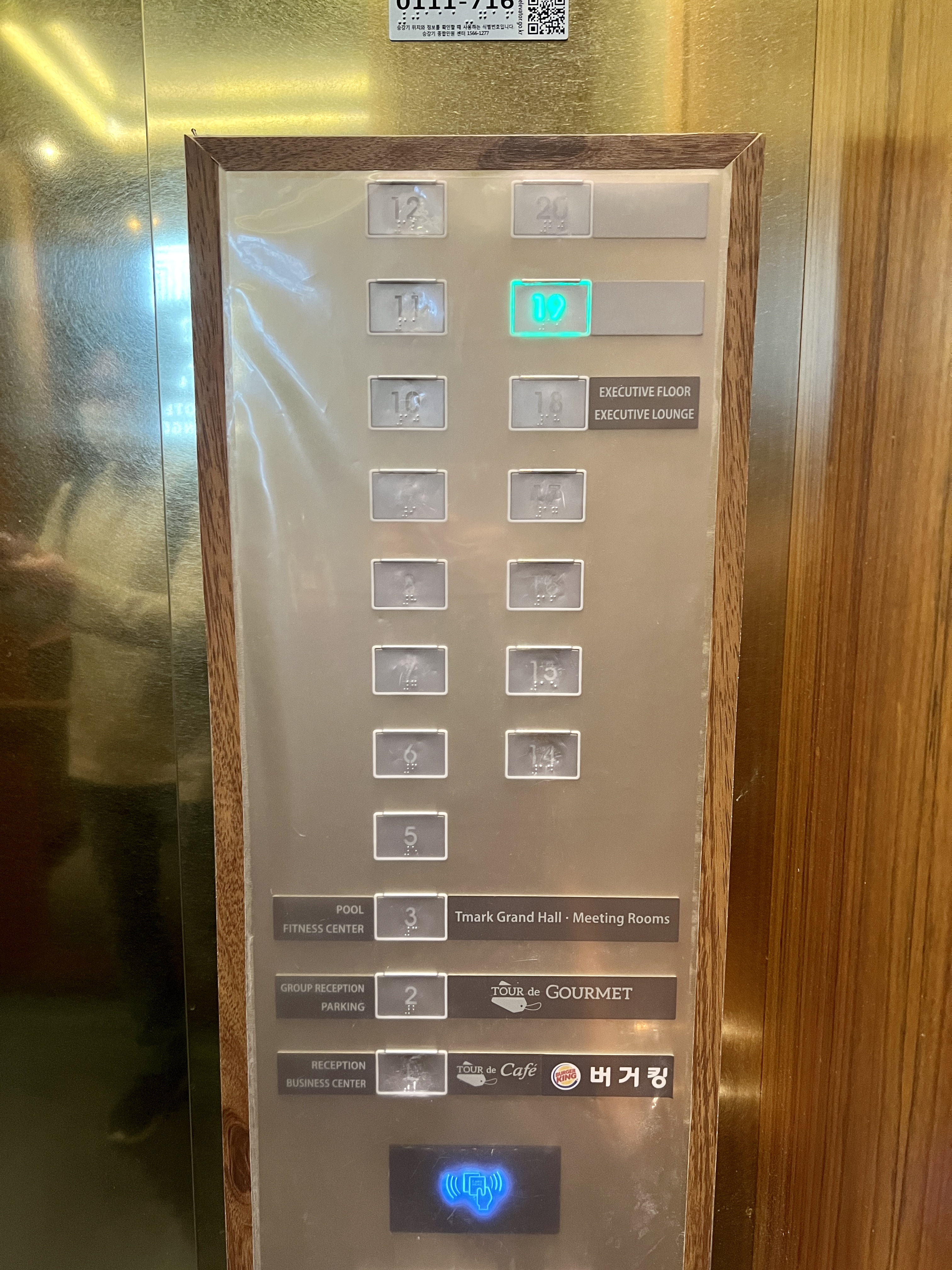객실은 5층부터 20층 까지 있는데, 18층에는 이그제큐티브 플로어 라운지가 있습니다.