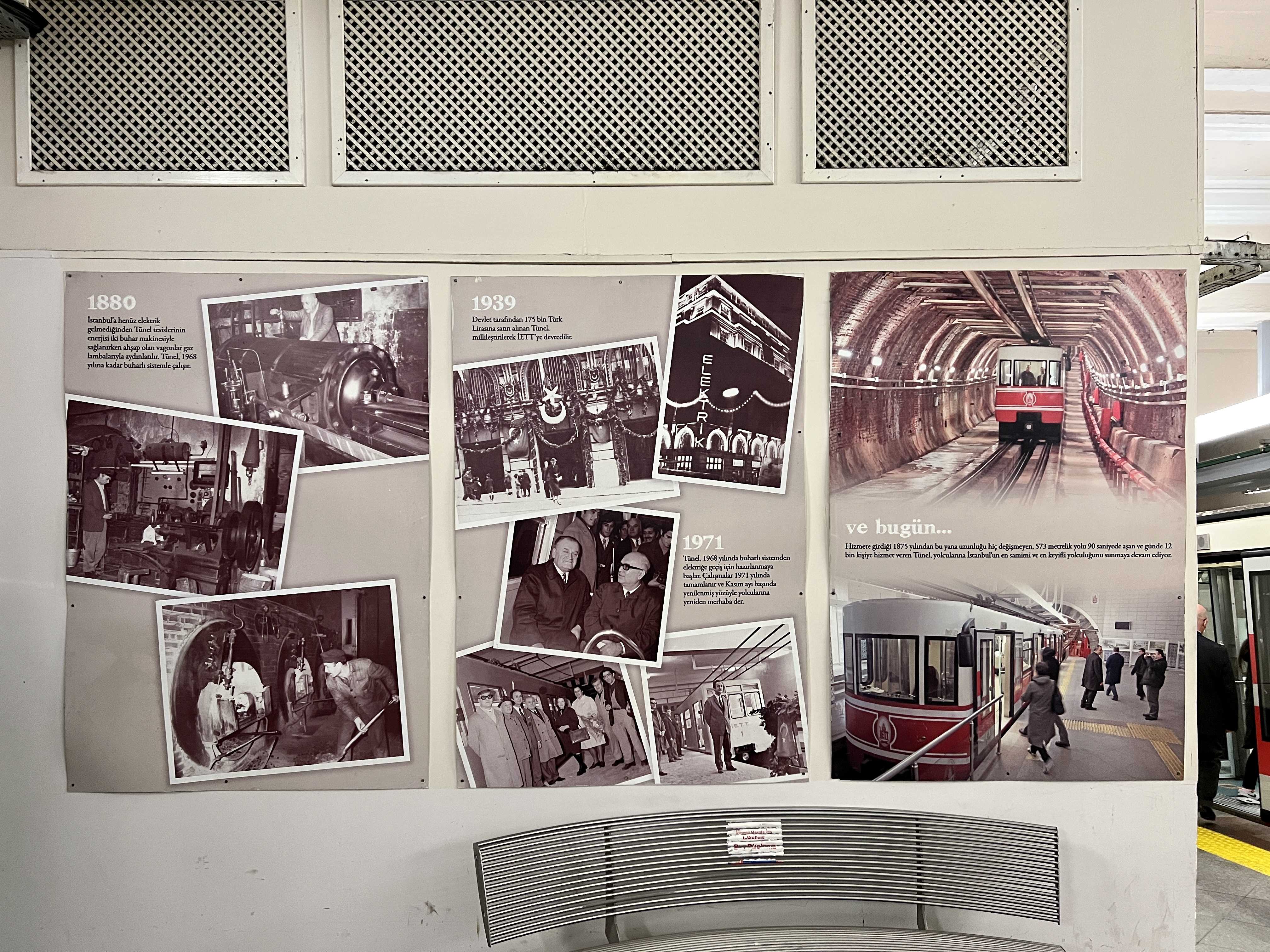 전기의 힘으로 움직이고 있습니다. 출발역과 종착역 모두 튀넬의 역사를 담은 사진들을
