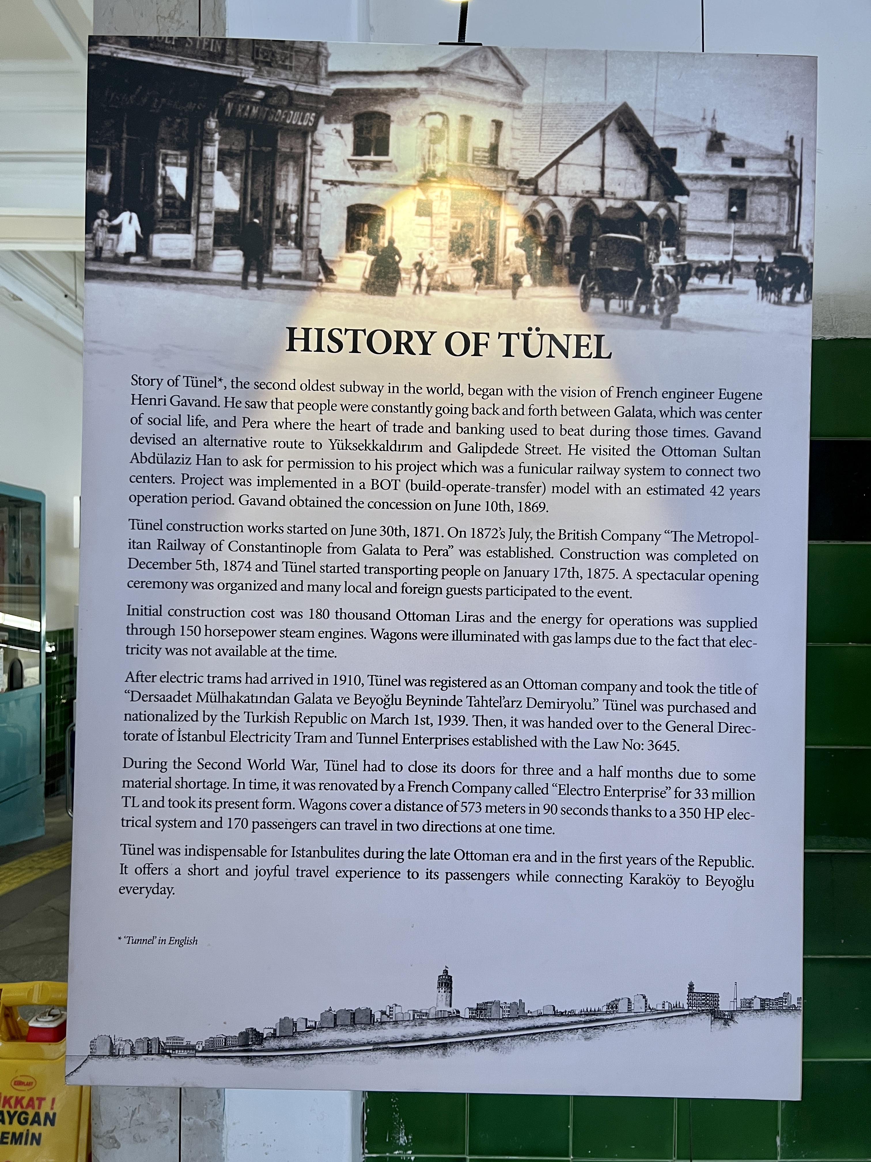 1875년 갈라타 다리의 북쪽 지역과 이스티클랄 거리 남쪽 지역을 잇는 노선으로 개통되었습니다.