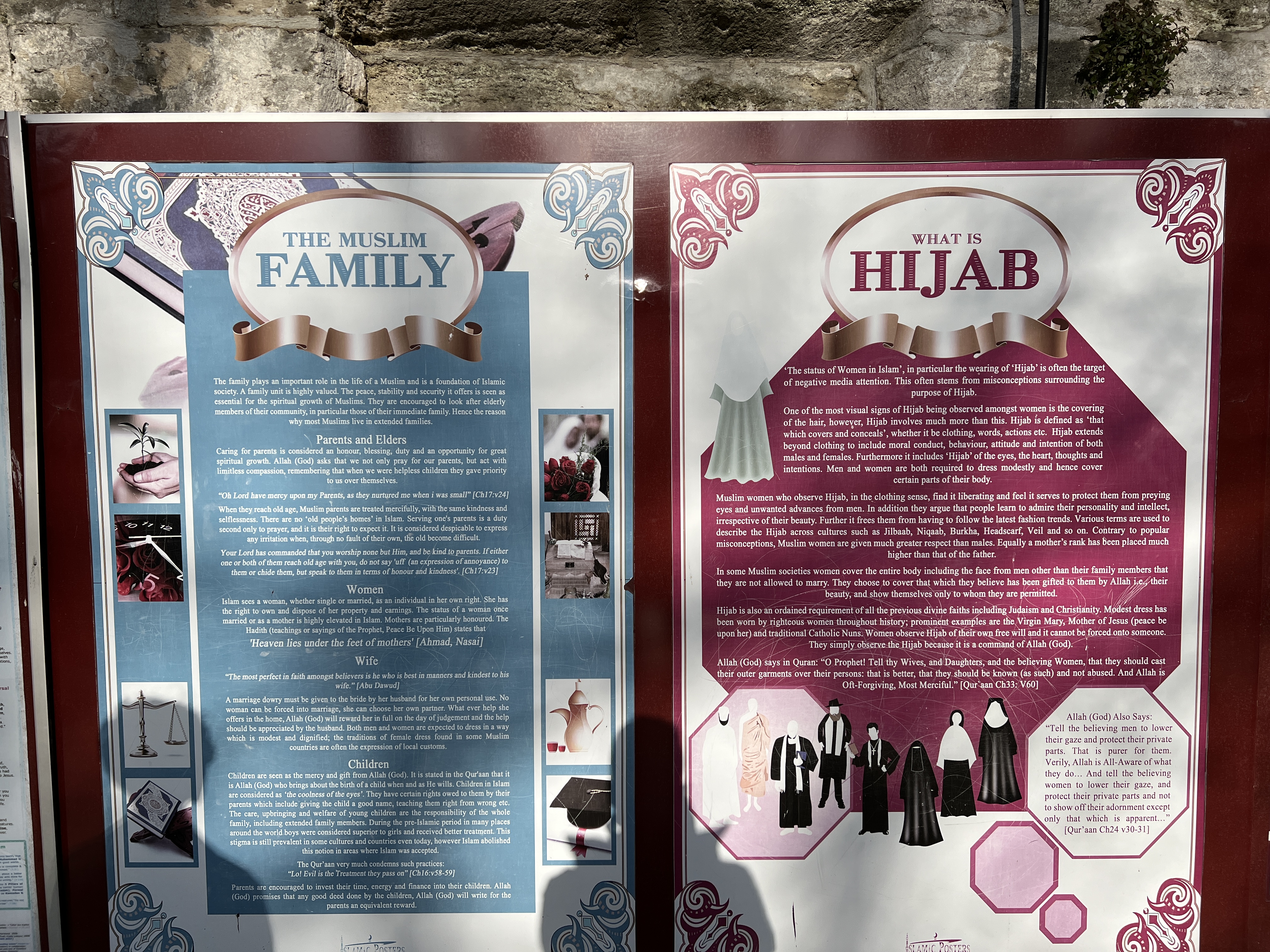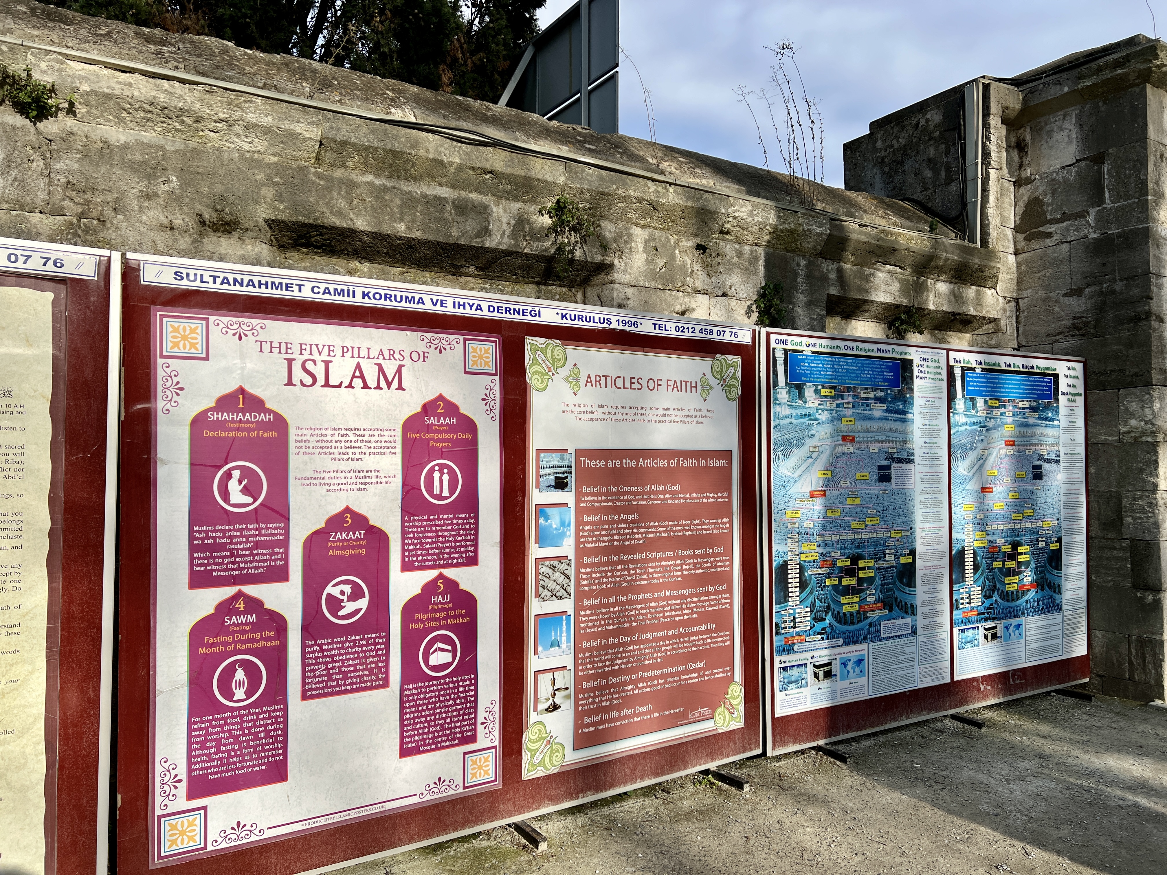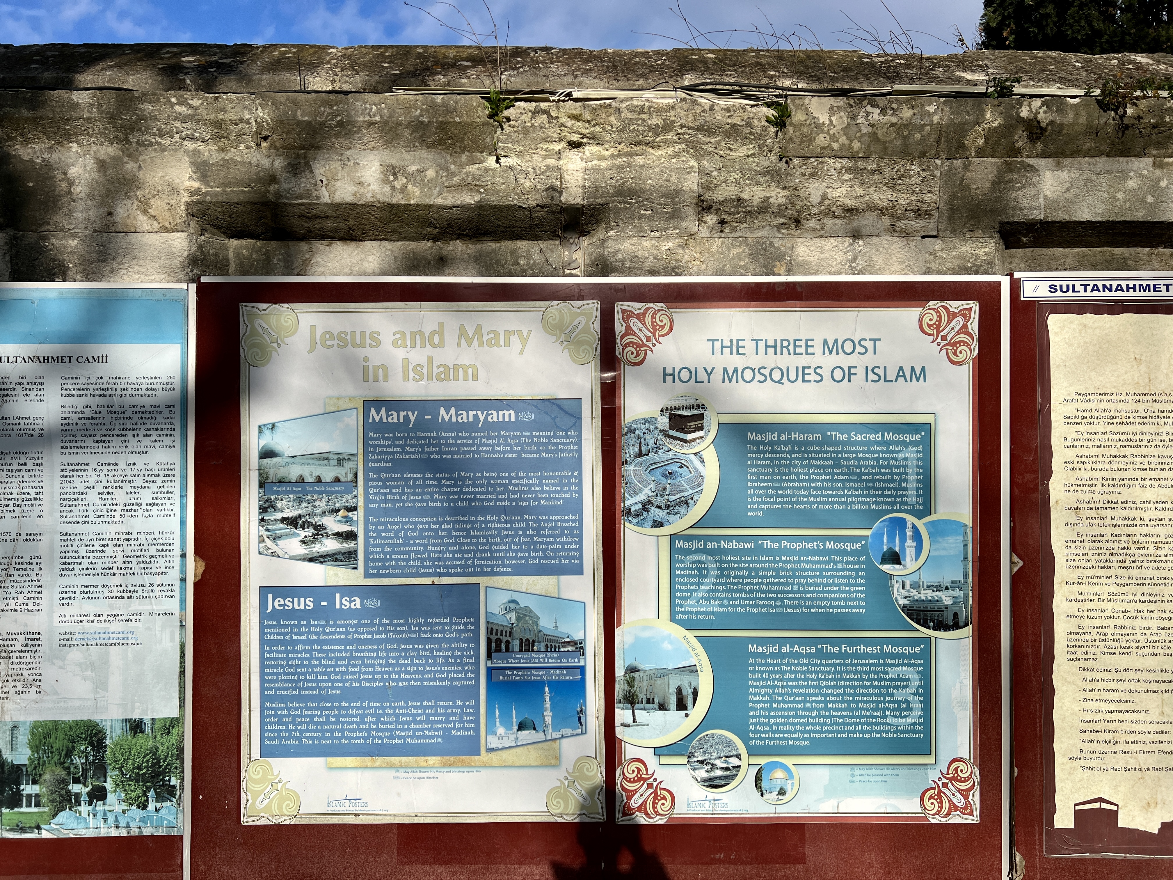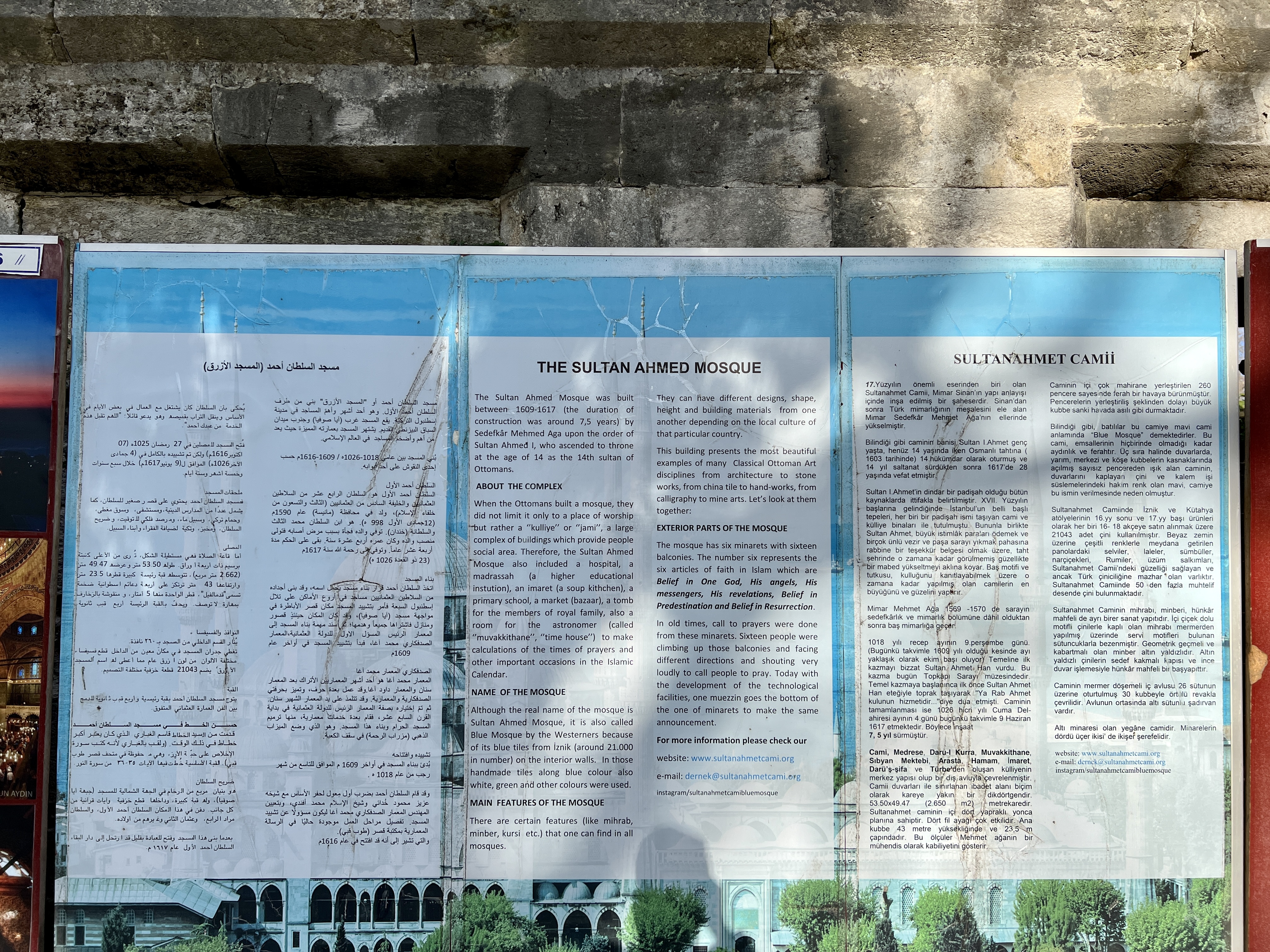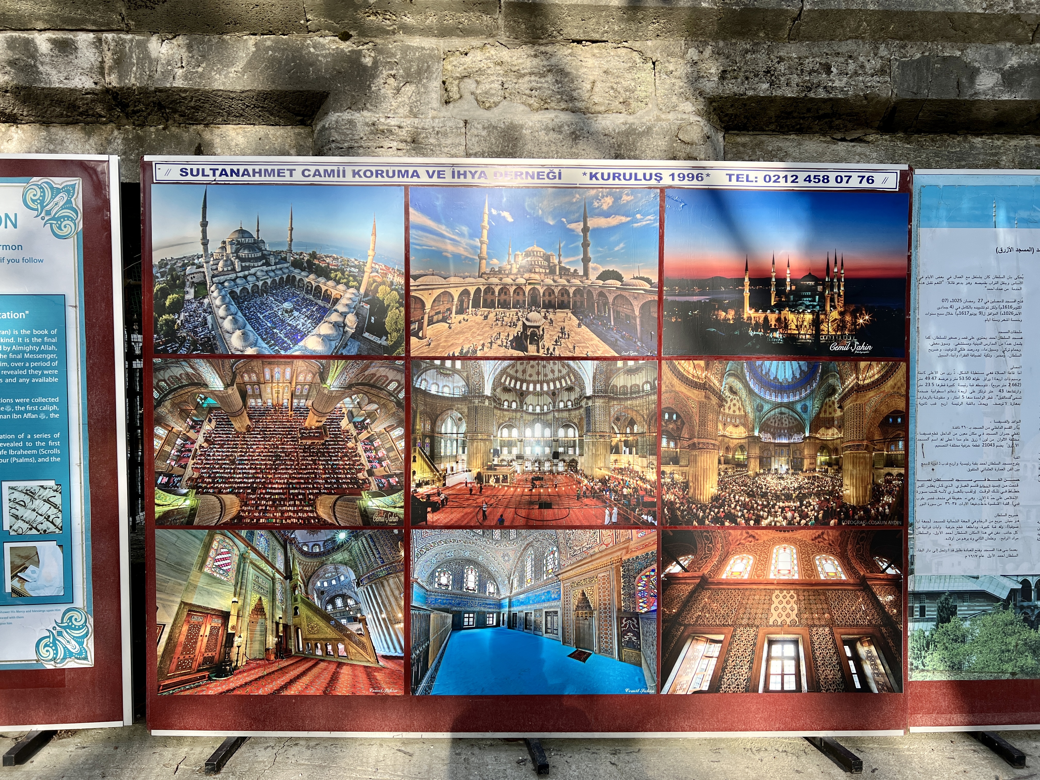 블루모스크를 나오면 벽면을 따라 이슬람과 모스크에 대한 정보가 여러가지 언어로 써 있습니다.