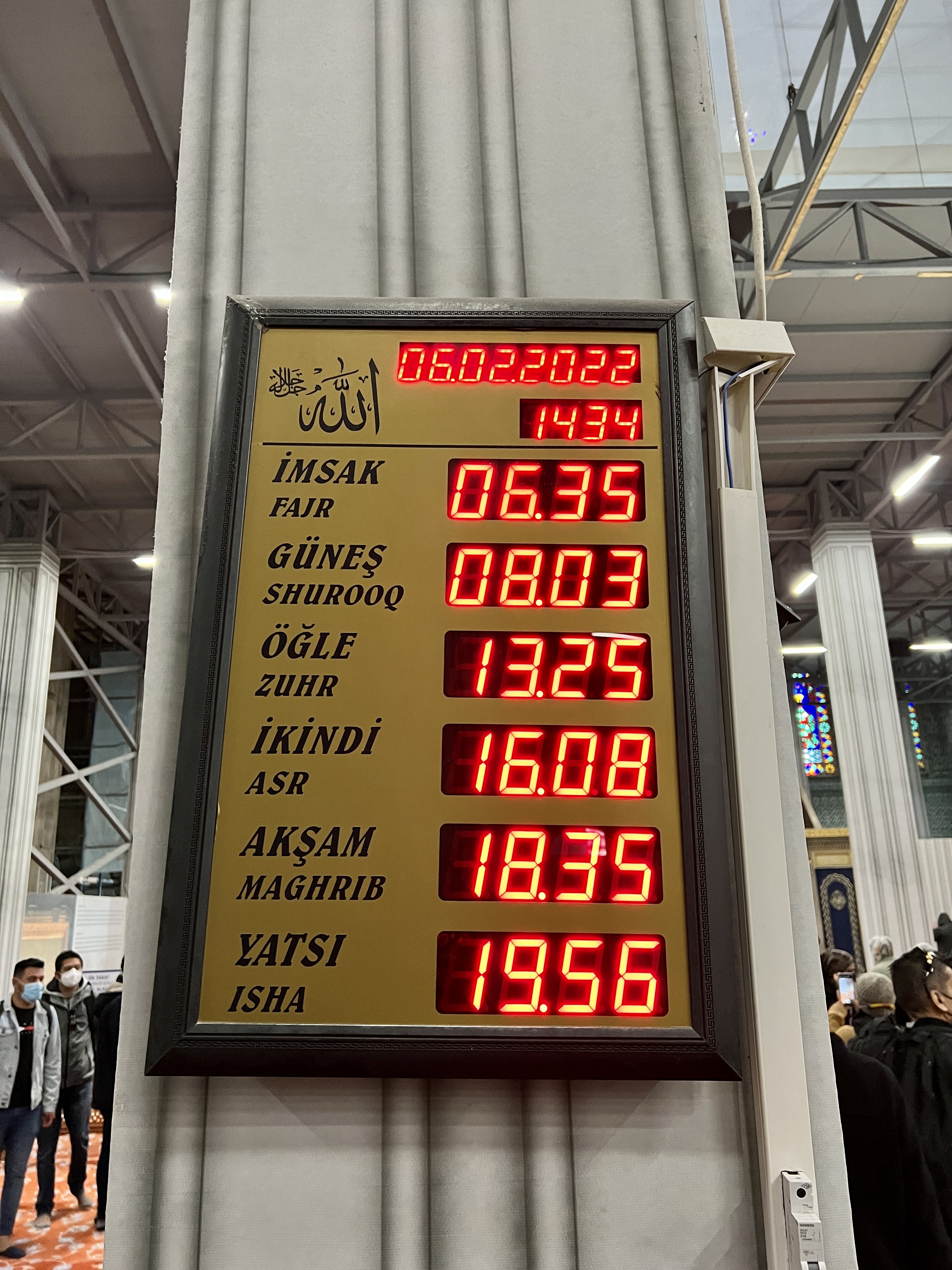 기도시간은 내부 전광판에 하루 5번 써 있었는데, 현지인이 아니라 정보는 미리 찾아봐야 할 듯합니다.