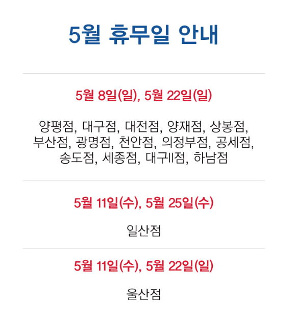 2) 5월 11일(수), 5월 25일(수)휴무 코스트코 점포