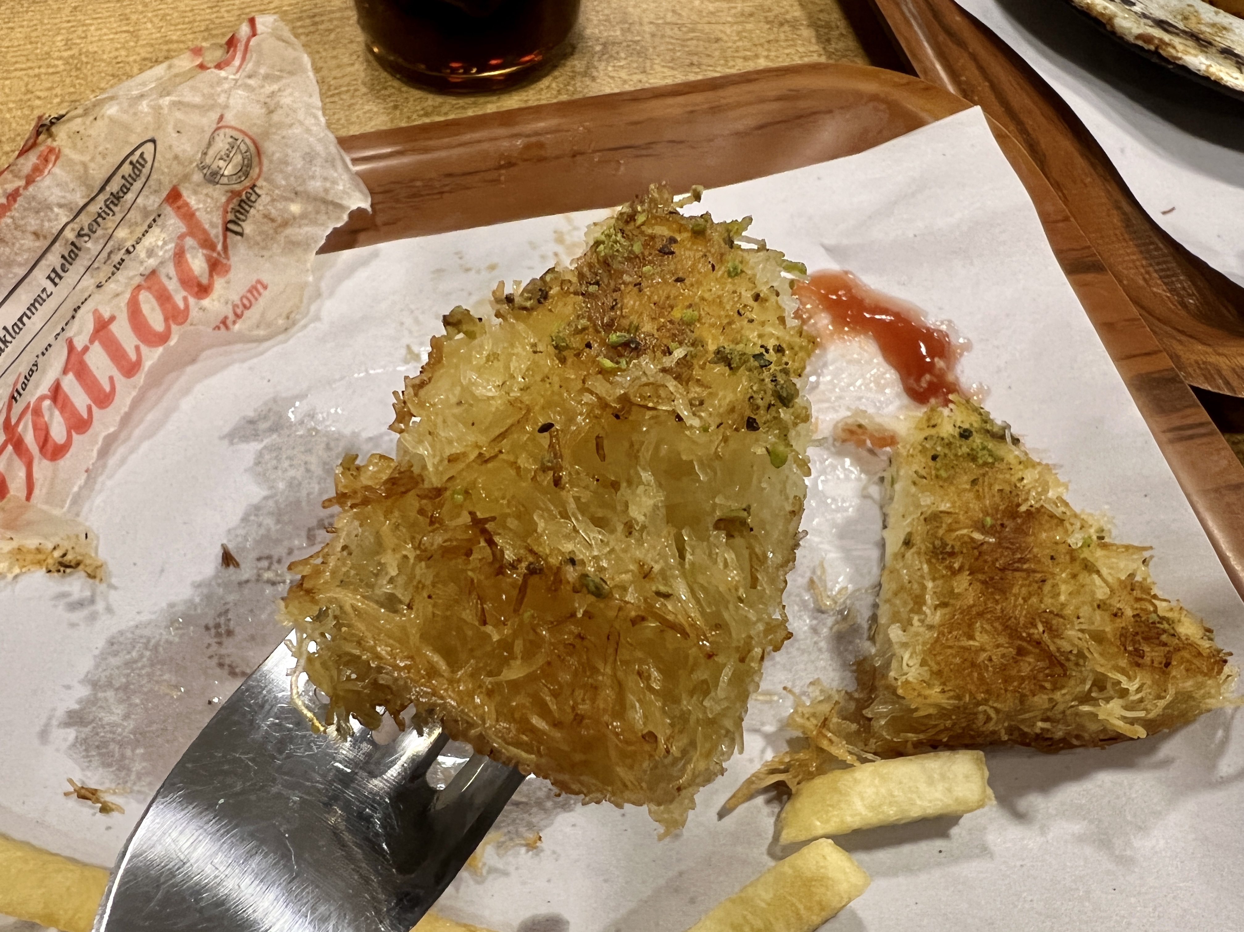 배타고 와서 약간 출출했는지, 우리나라의 빈대떡 처럼 생긴 음식도 사이드로 주문하였는데, 맛이 있긴 했으나 역시 터키 음식답게 많이 단 느낌이 났습니다.