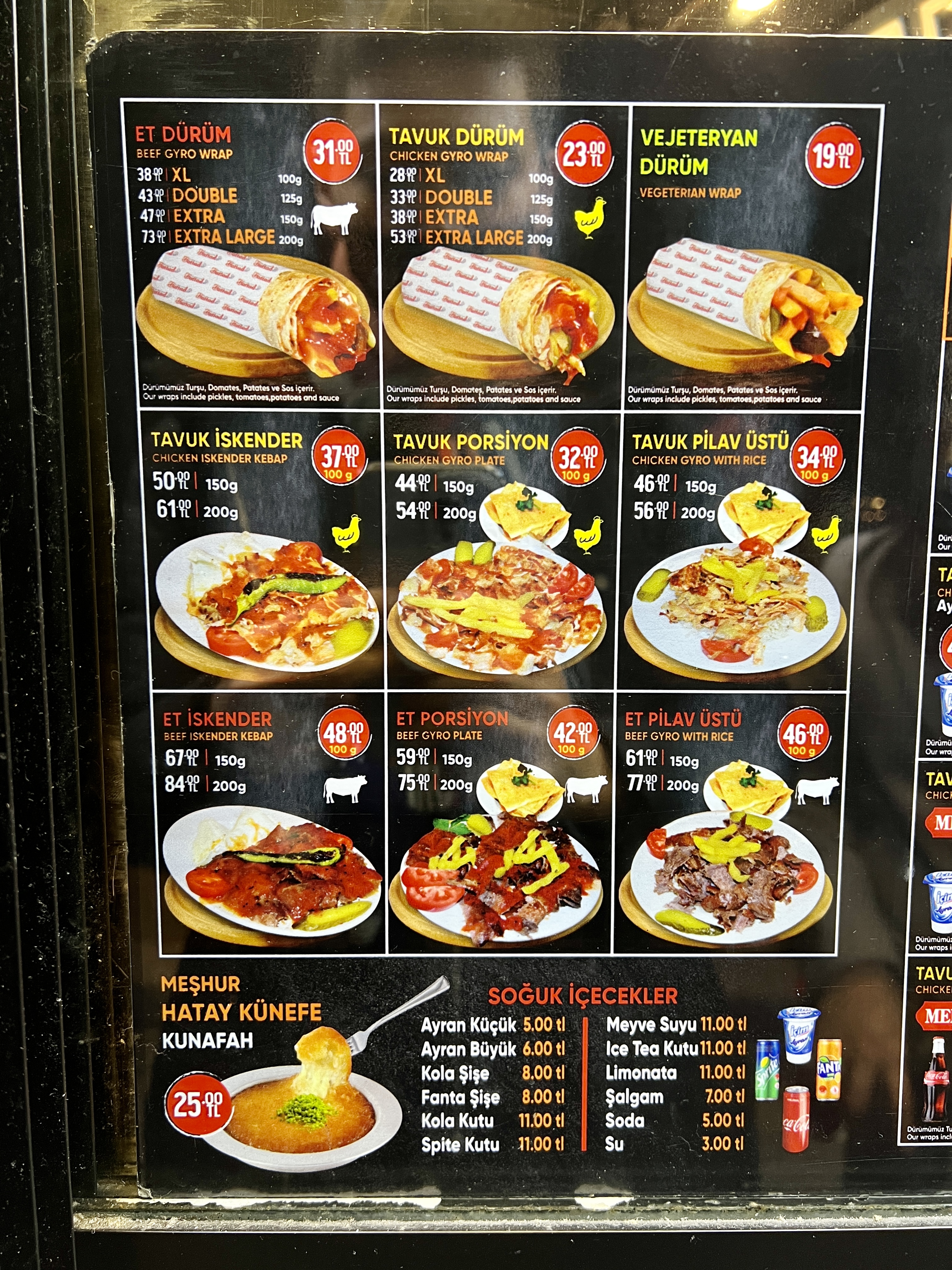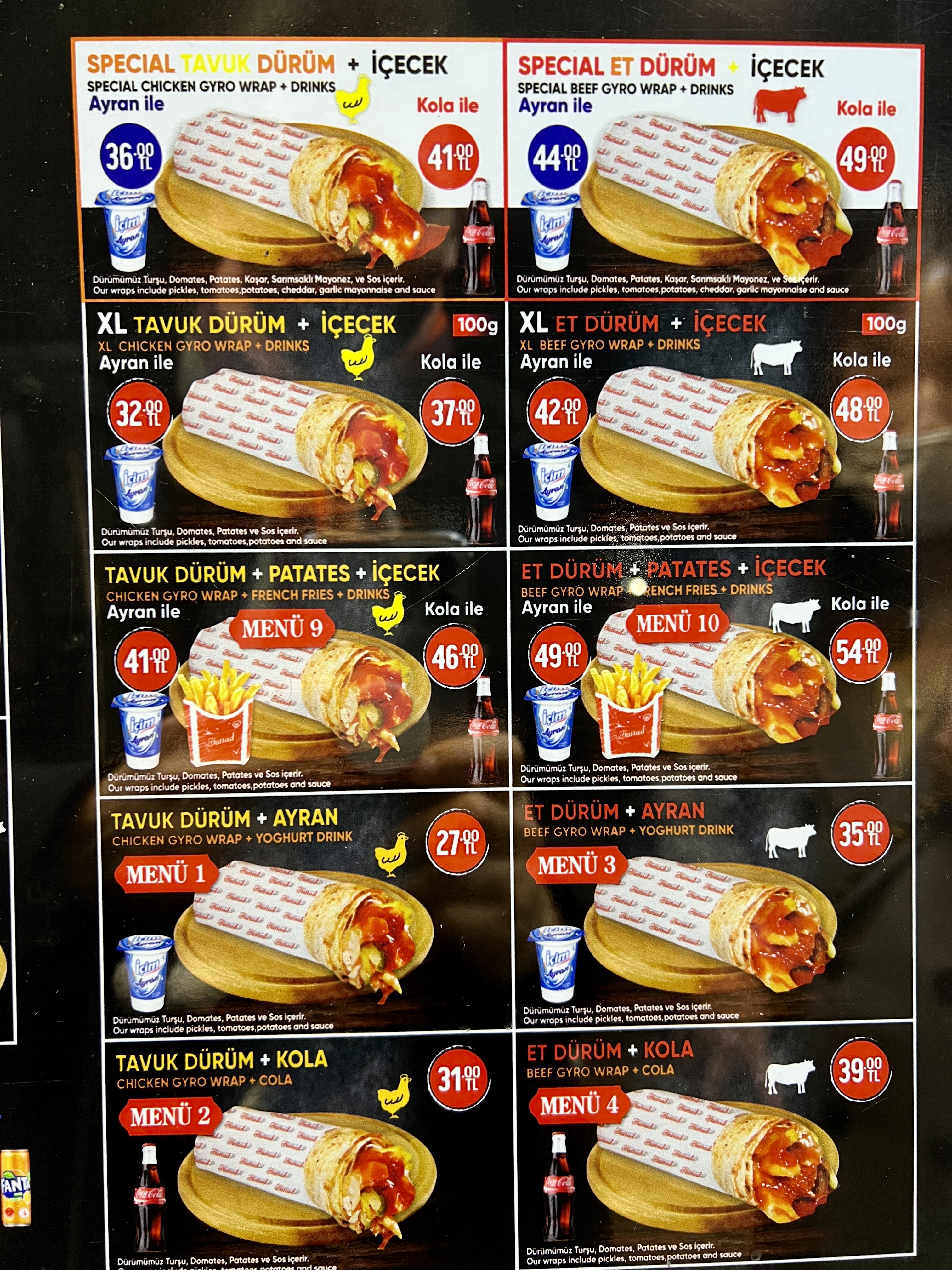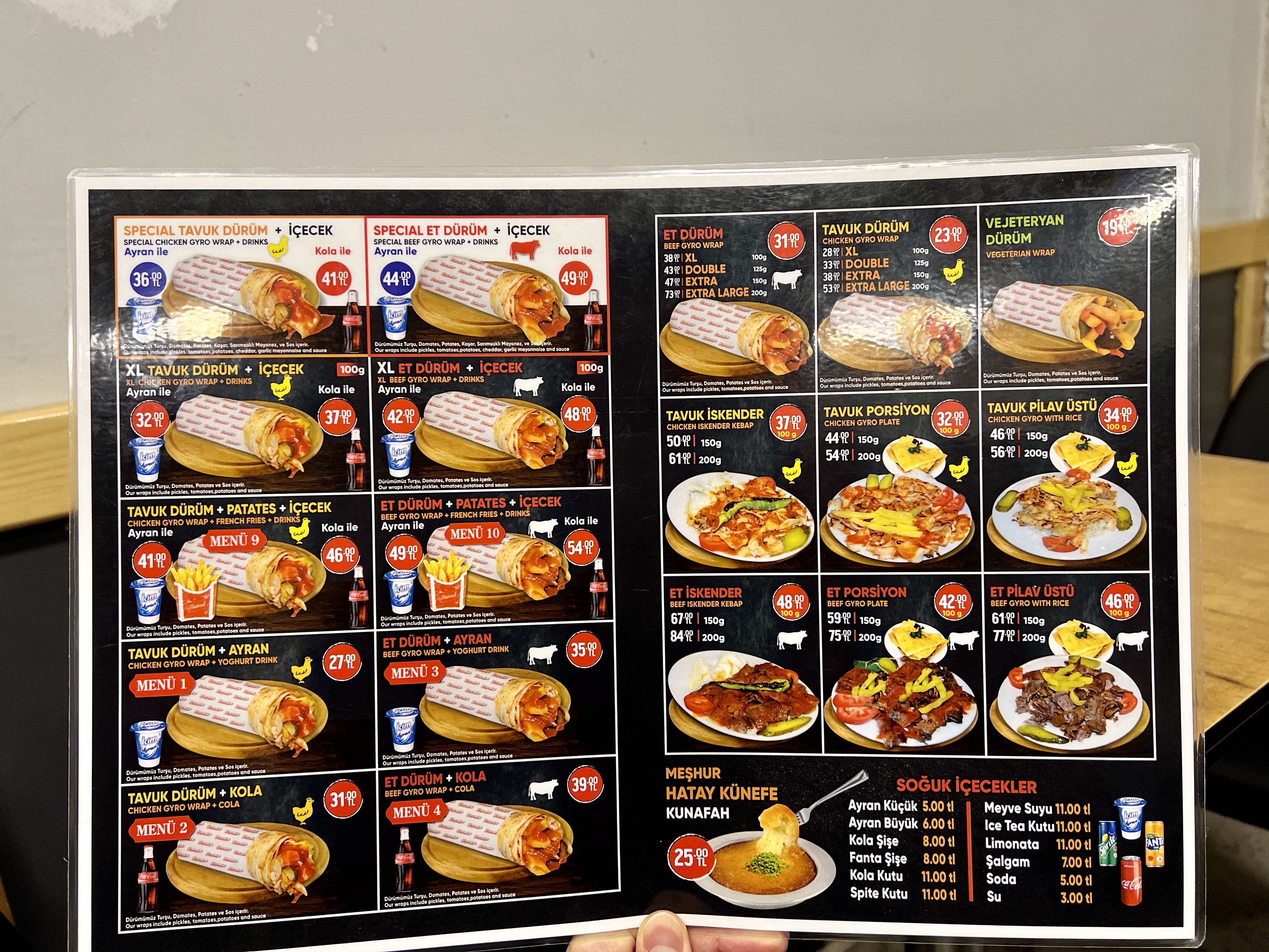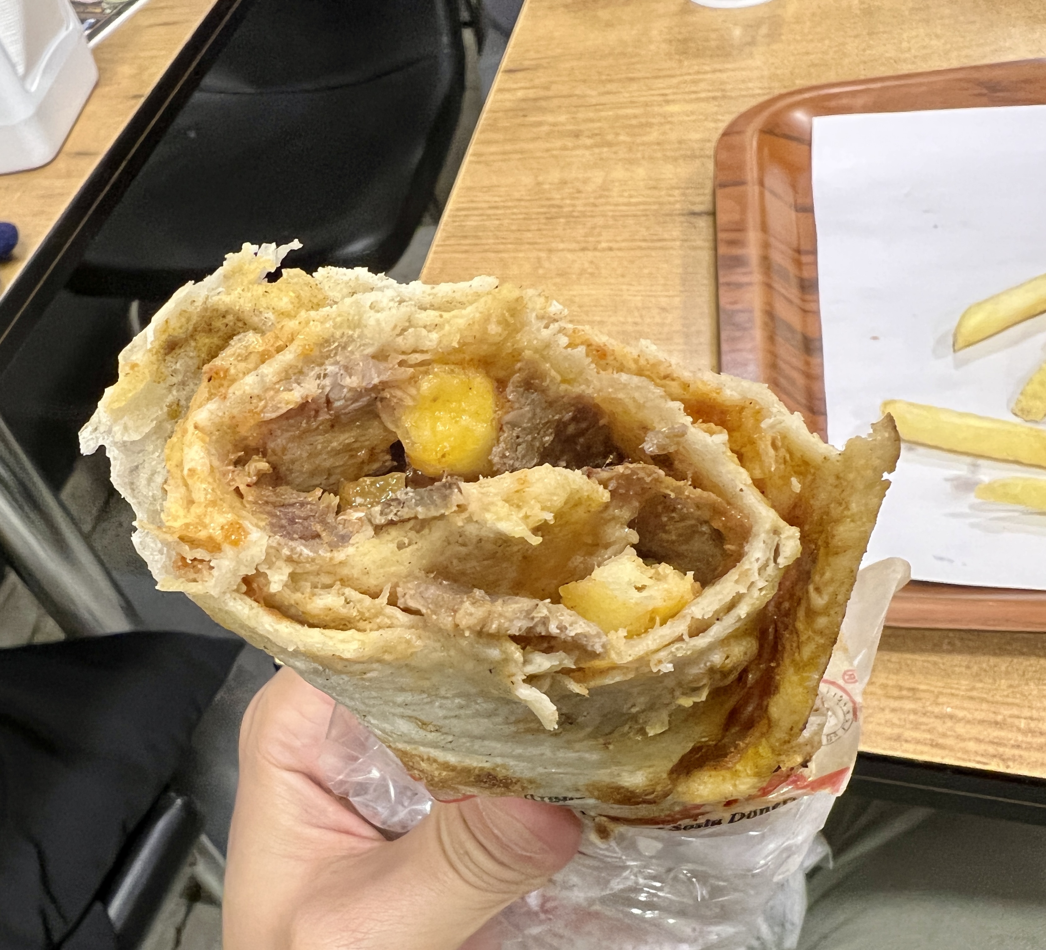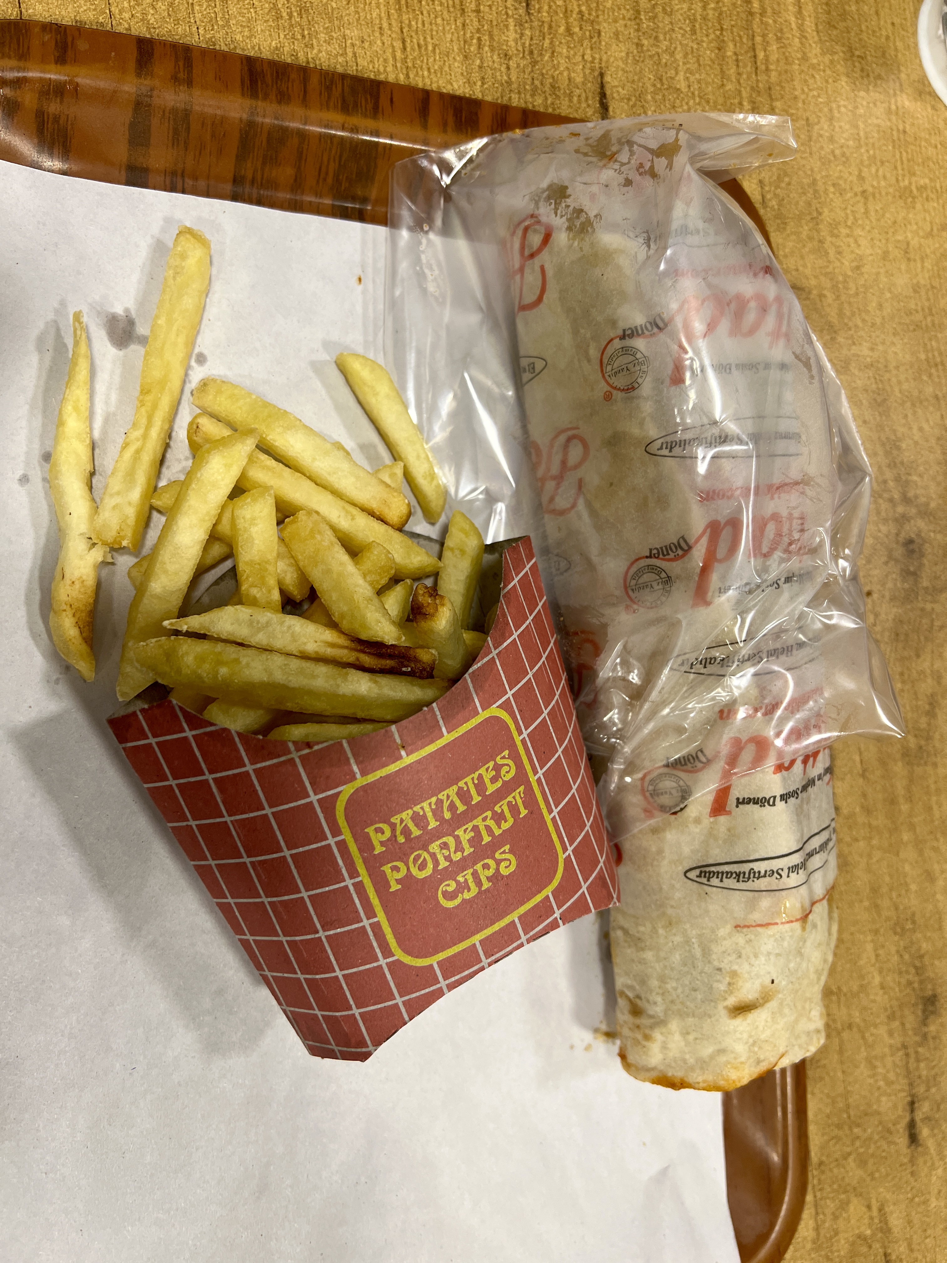 닭과 소로 만든 종류별 케밥이 있었는데, 햄버거 가게 처럼 프렌치프라이와 콜라까지 세트로 주문 할 수 있어서 시그니처 메뉴이자 기본 케밥 세트를 주문해서 먹었습니다.