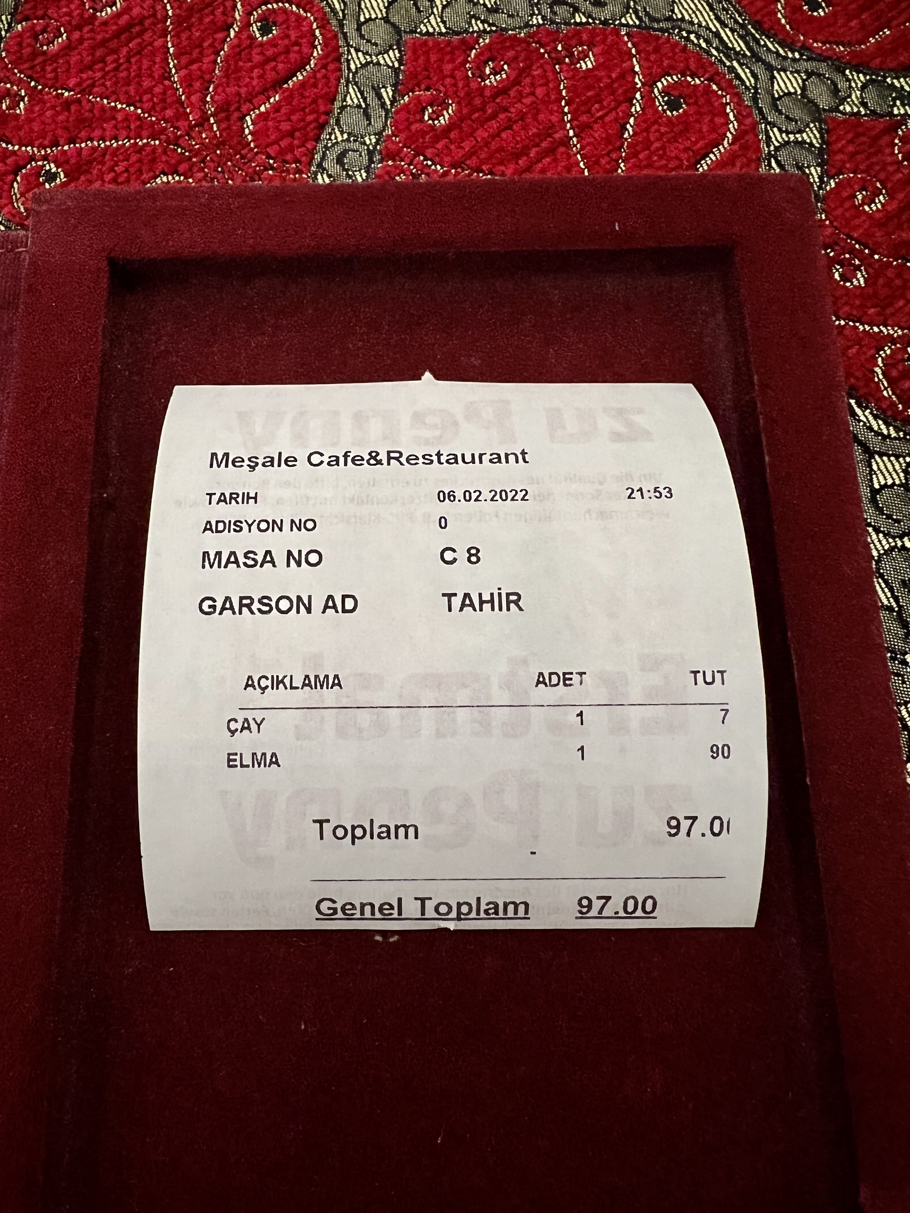 물담배 하나에 90리라! 약 8천원 이니 아주 싼건 아니지만 생각보다 흥미로운 경험입니다.